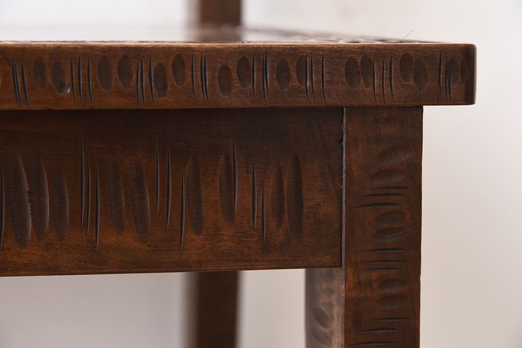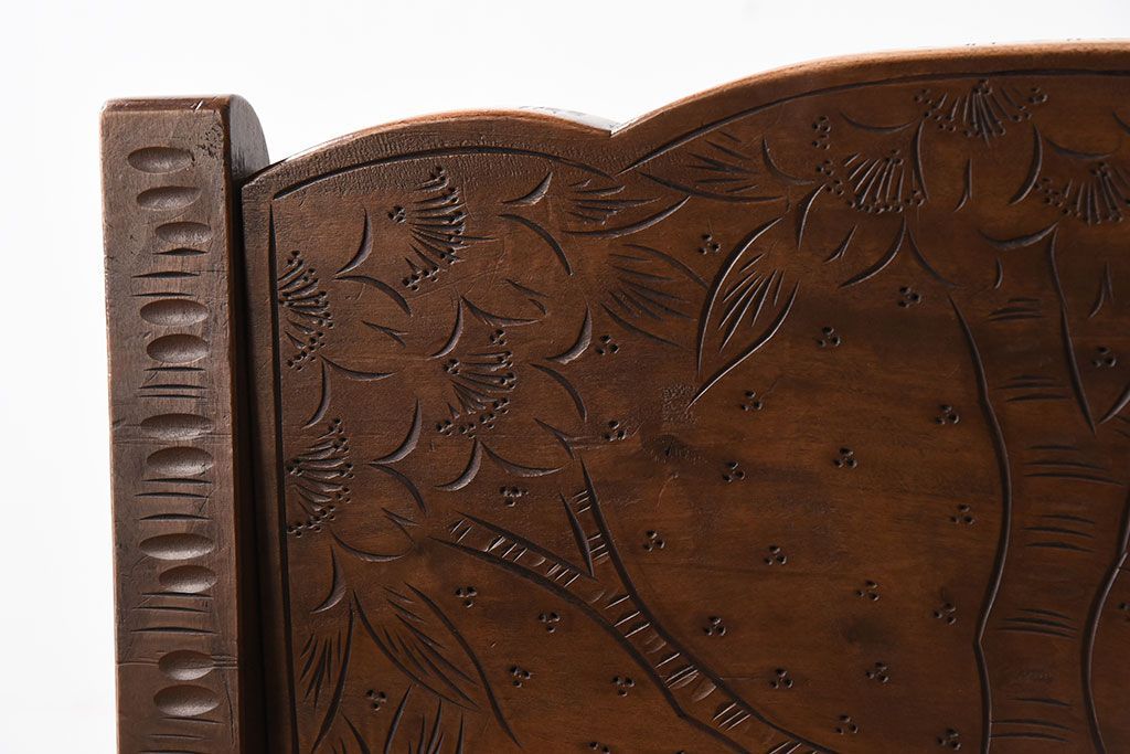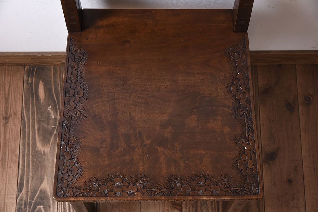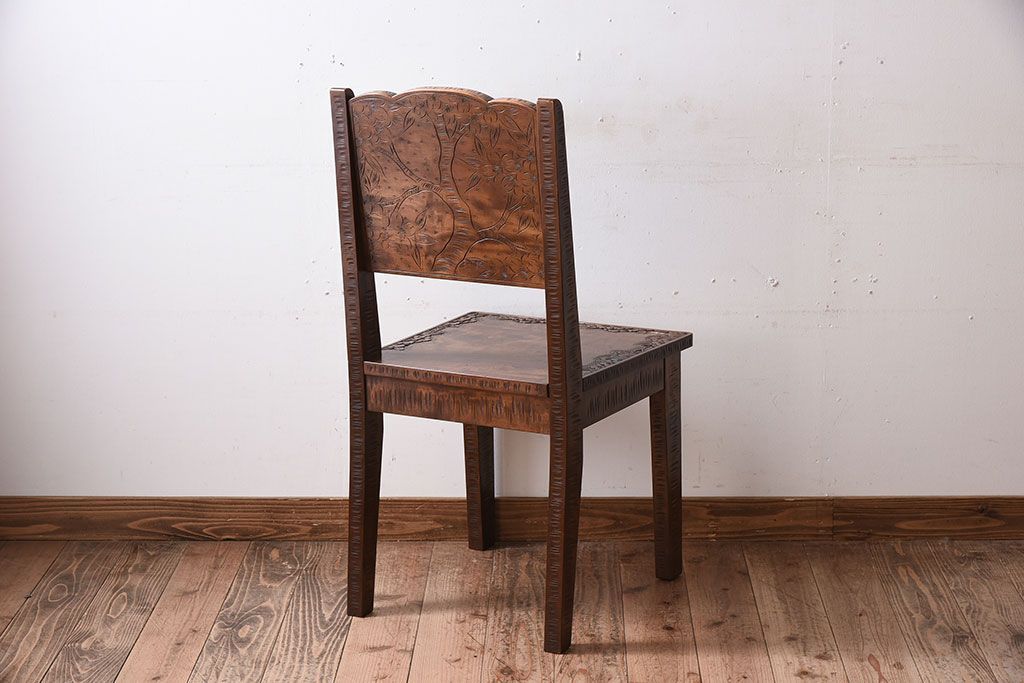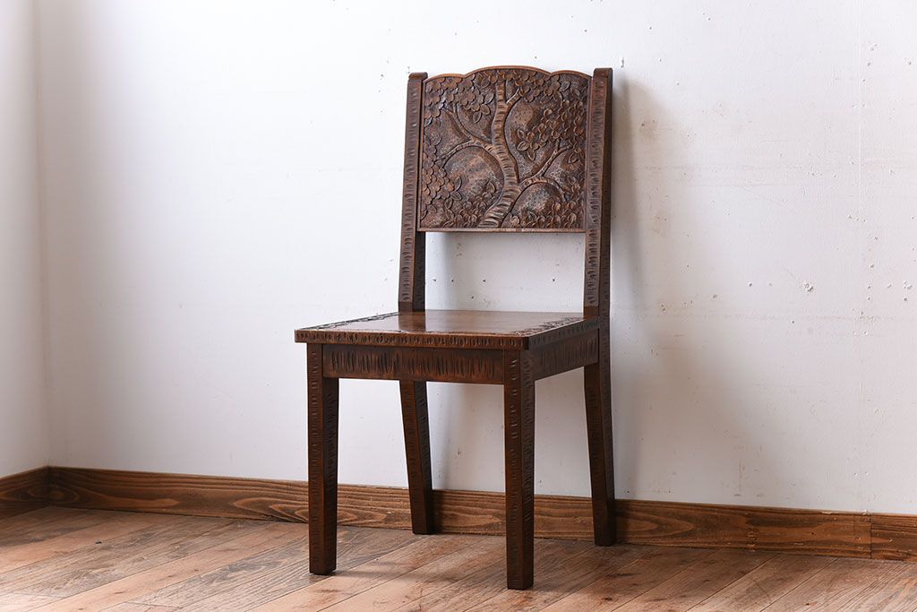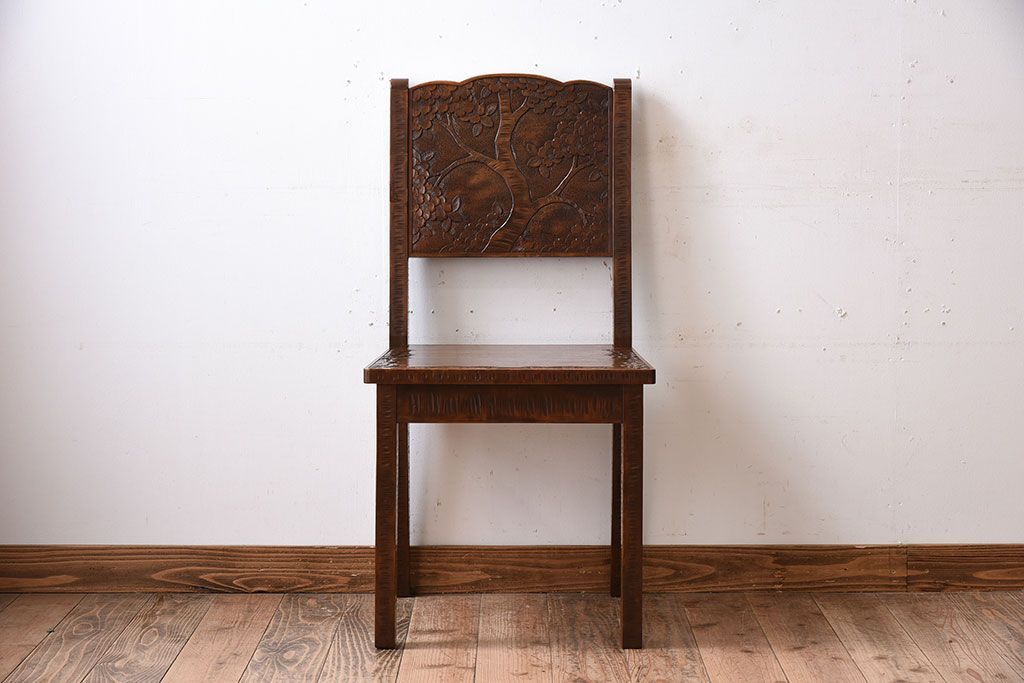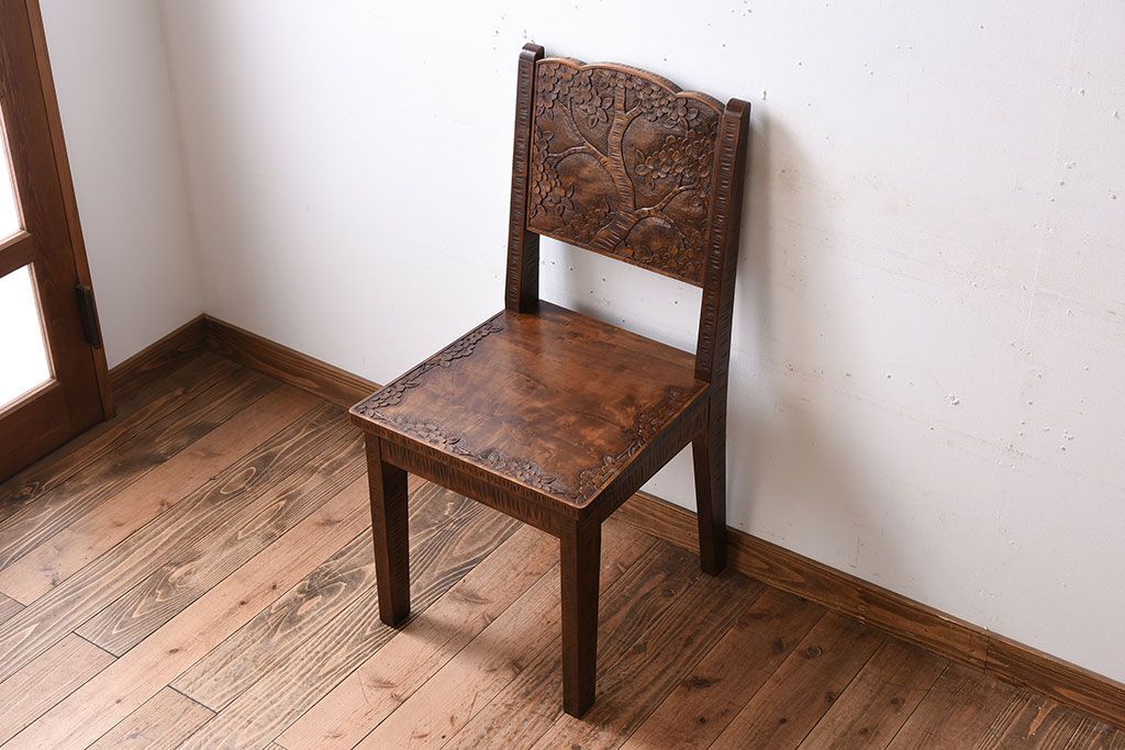 中古美品 伝統工芸 軽井沢彫りの上質なダイニングチェア(椅子)(定価約16万円)(1)