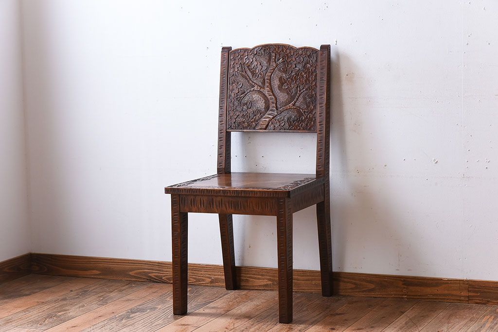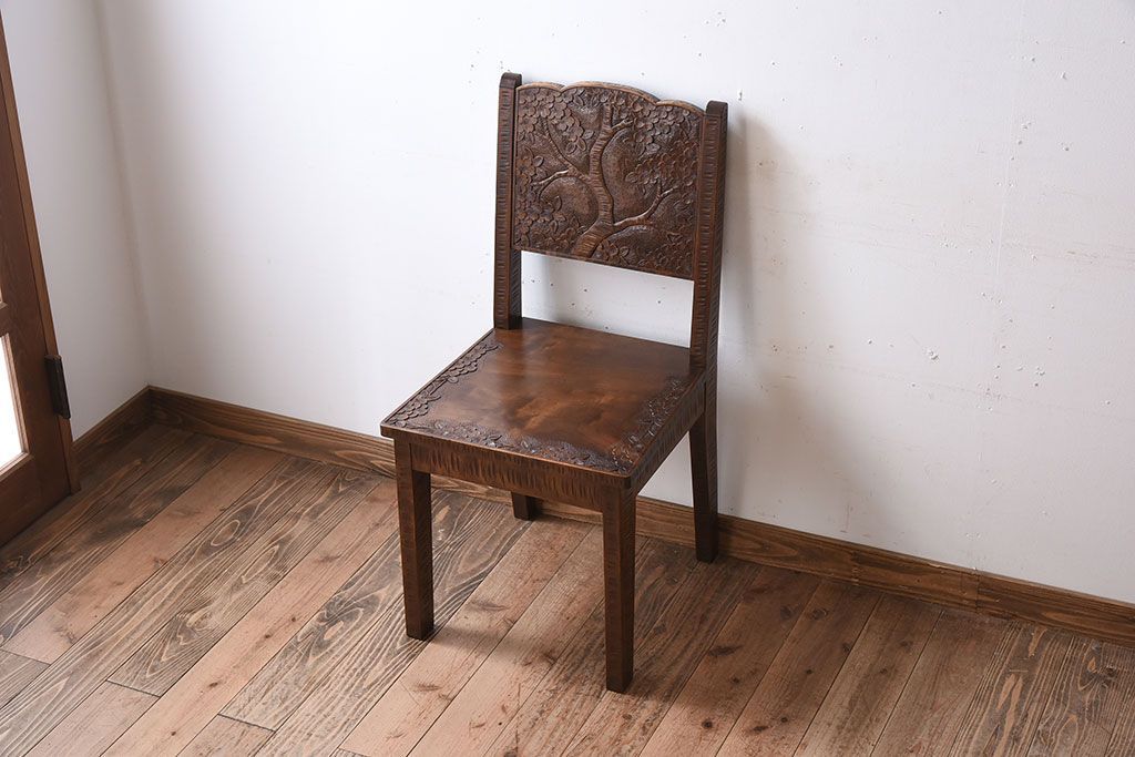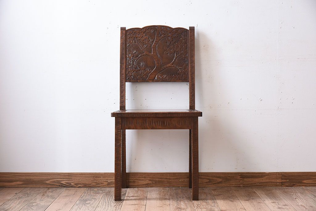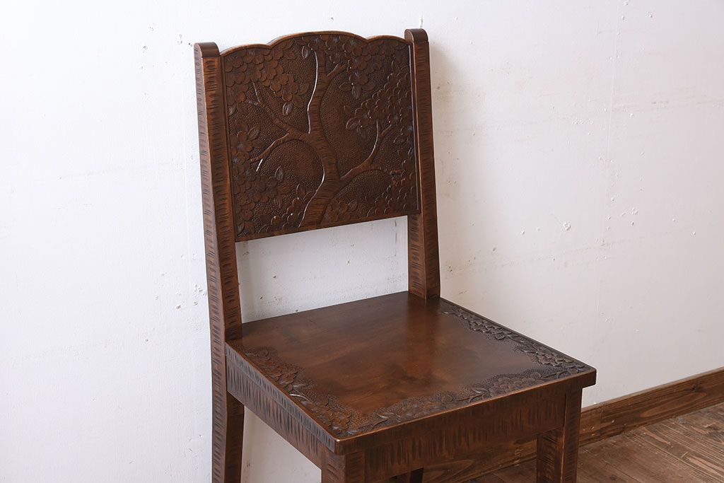 中古美品 伝統工芸 軽井沢彫りの上質なダイニングチェア(椅子)(定価約16