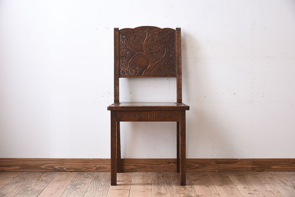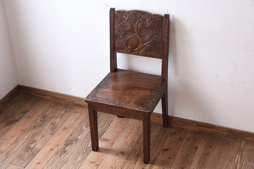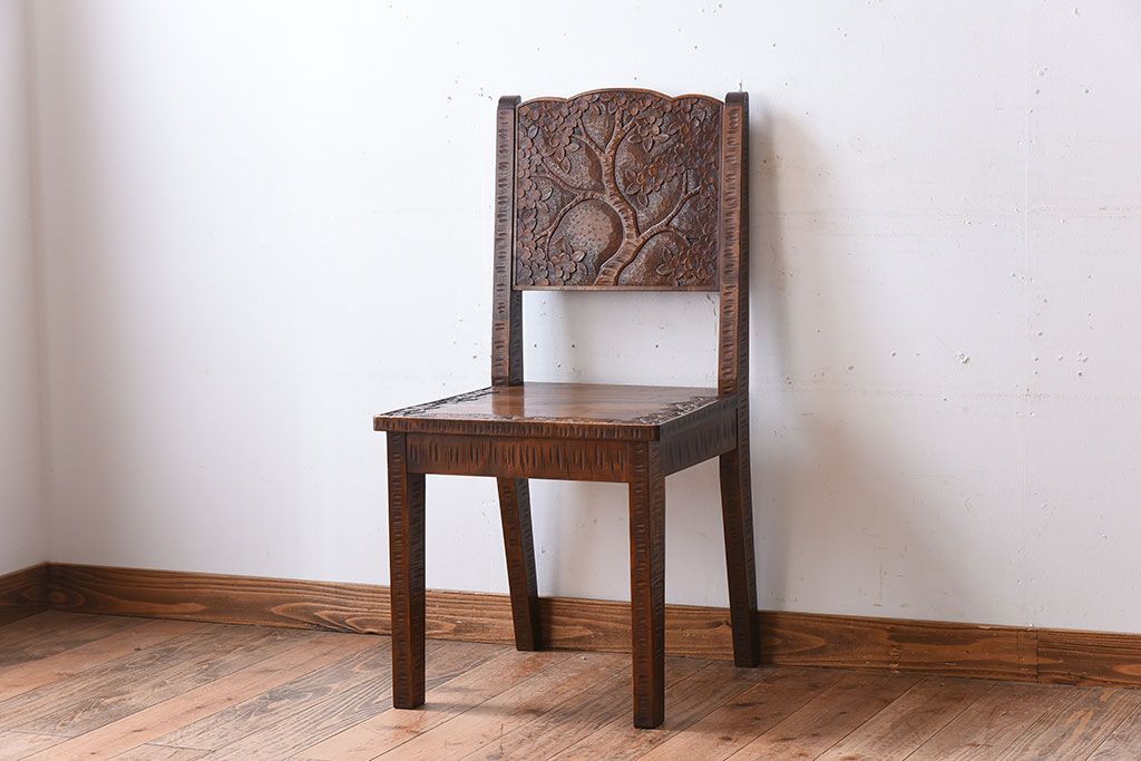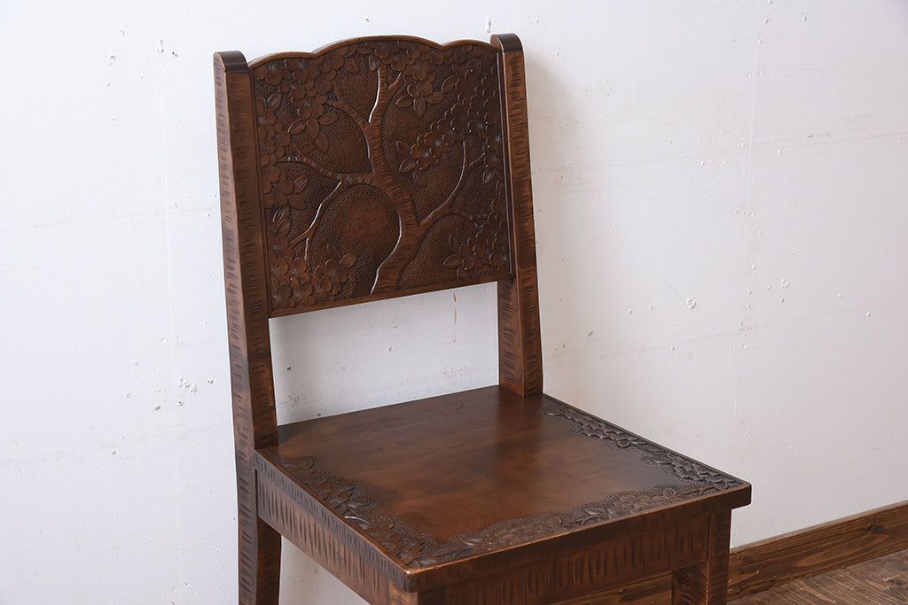 中古美品 伝統工芸 軽井沢彫りの上質なダイニングチェア(椅子)(定価約16