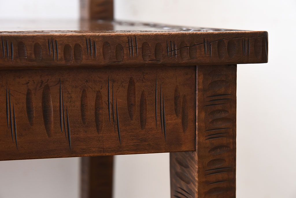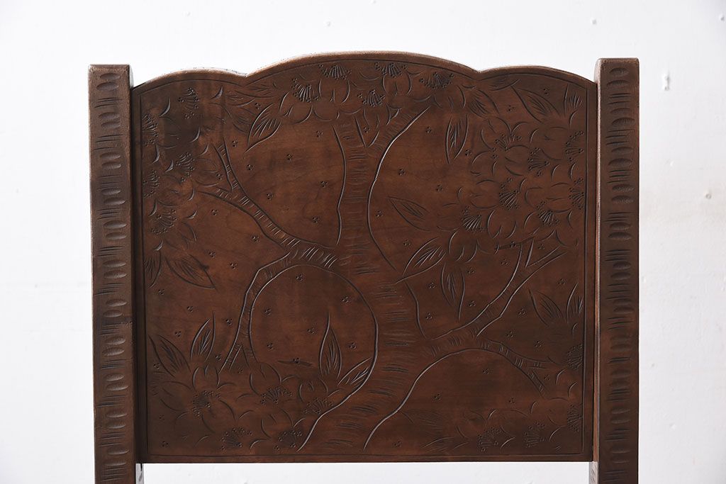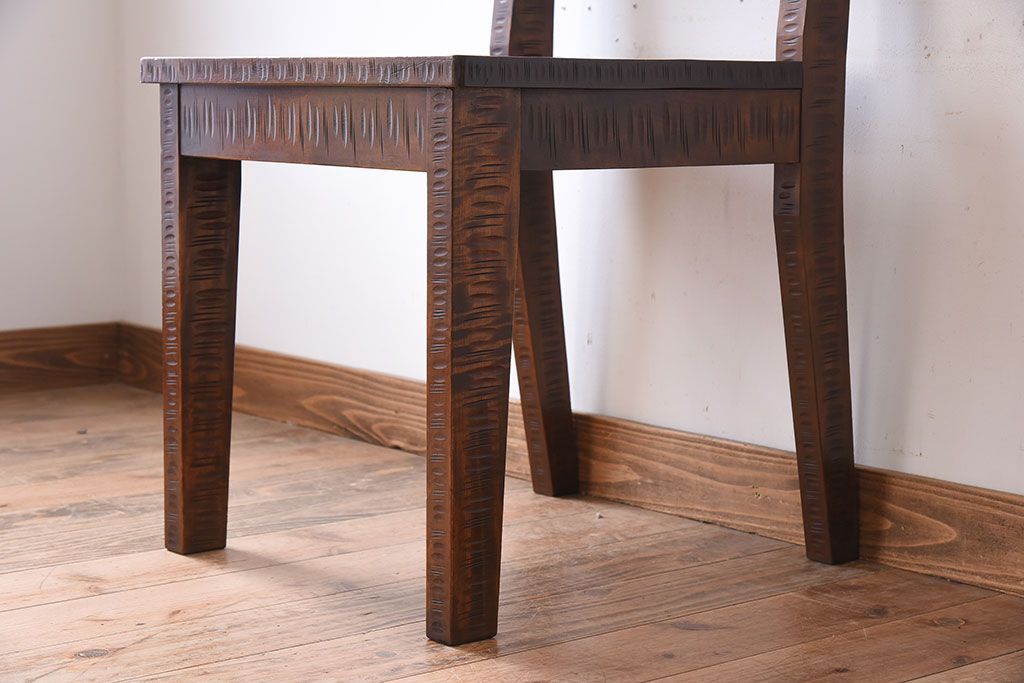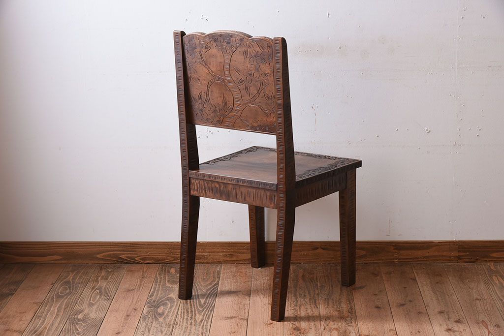 中古美品 伝統工芸 軽井沢彫りの上質なダイニングチェア(椅子)(定価約16万円)(3)