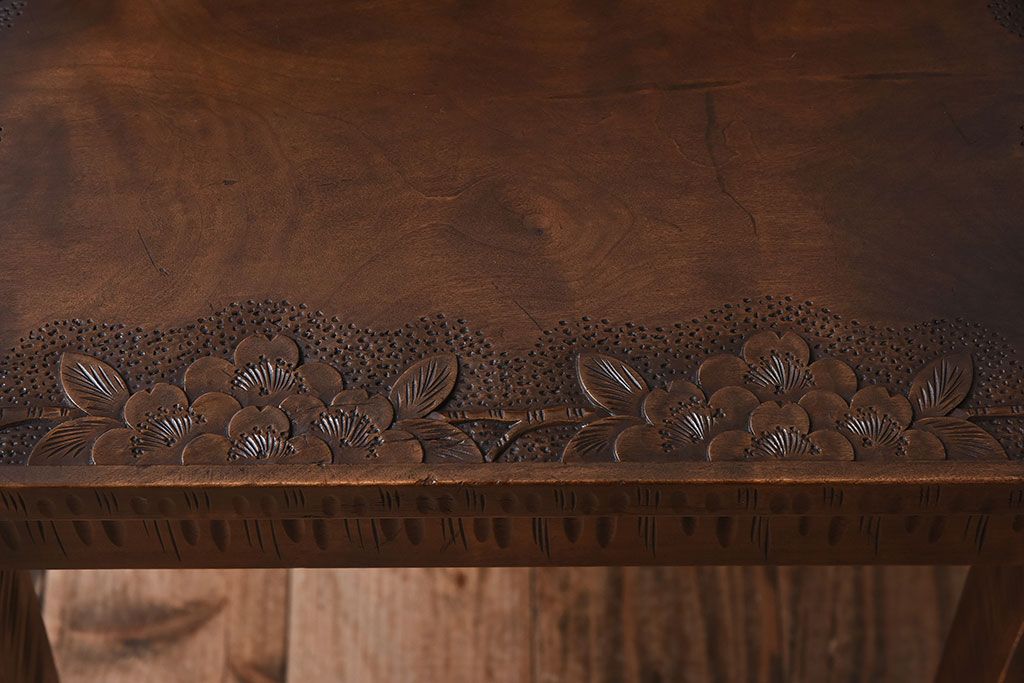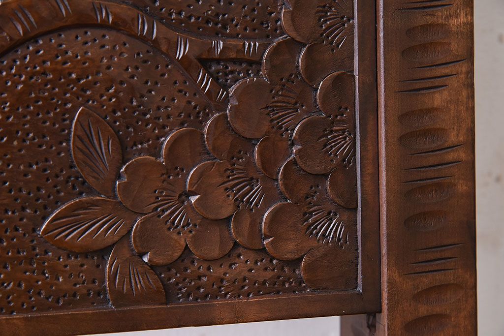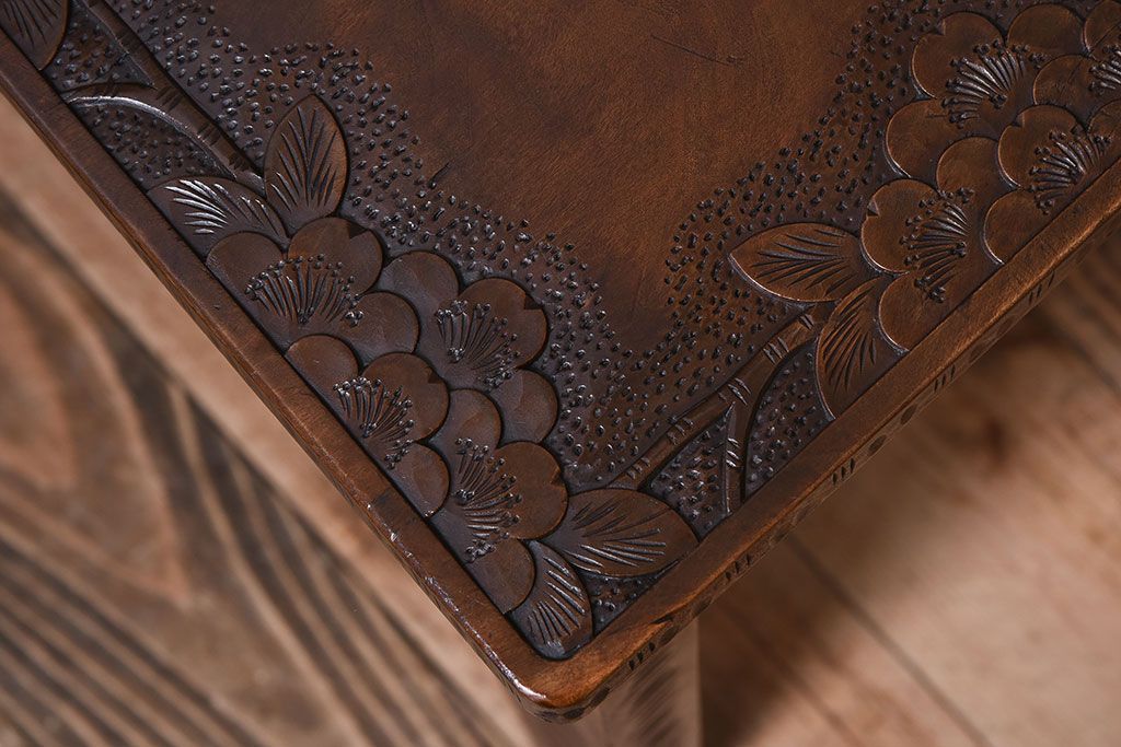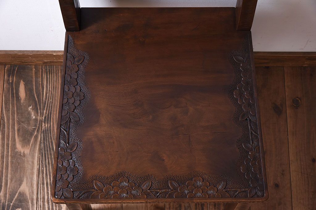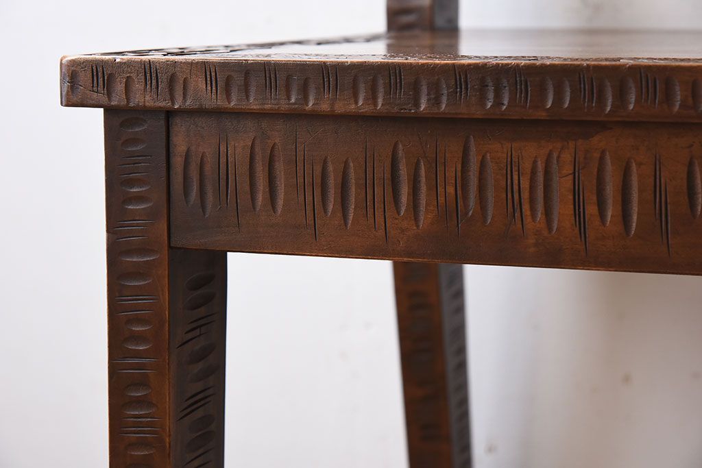 中古美品 伝統工芸 軽井沢彫りの上質なダイニングチェア(椅子)(定価約16万円)(3)