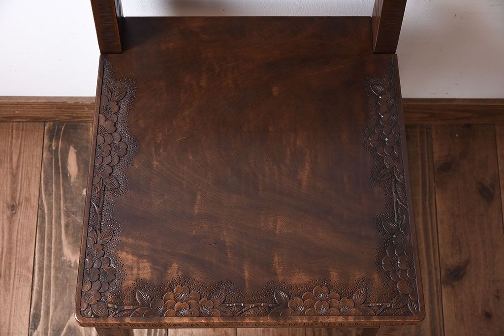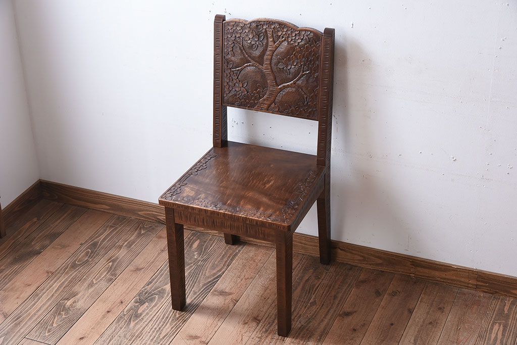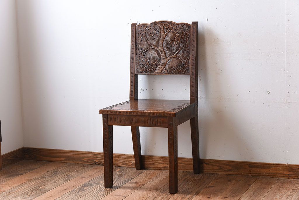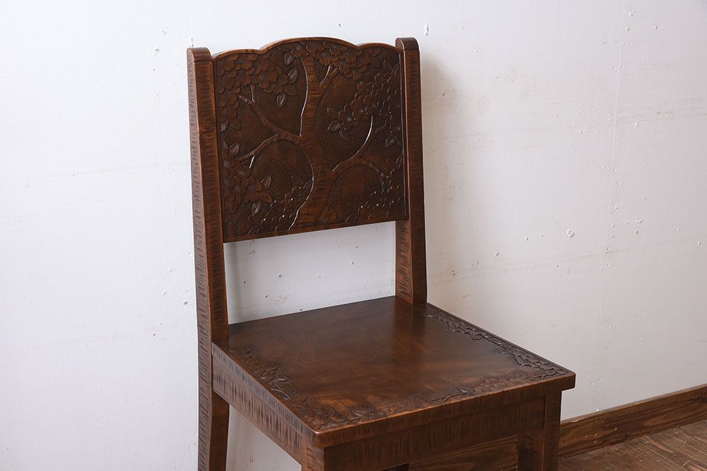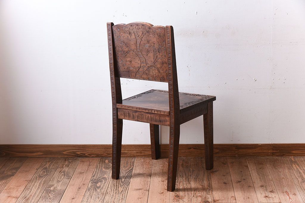 伝統工芸軽井沢彫 中古美品 ダイニングチェア(椅子)(定価約16万円)(3)