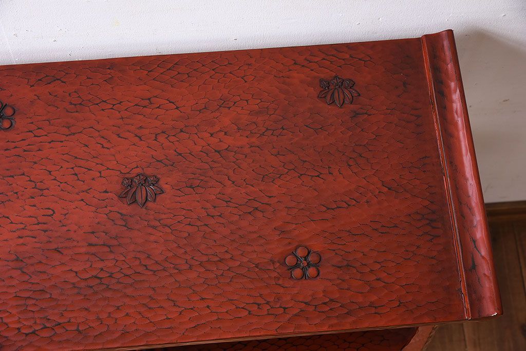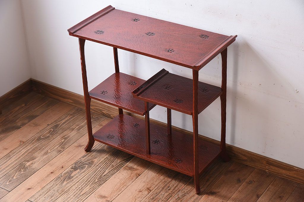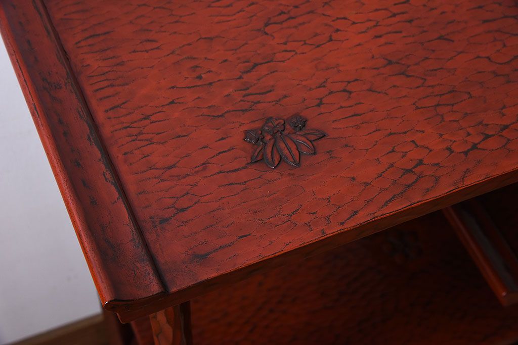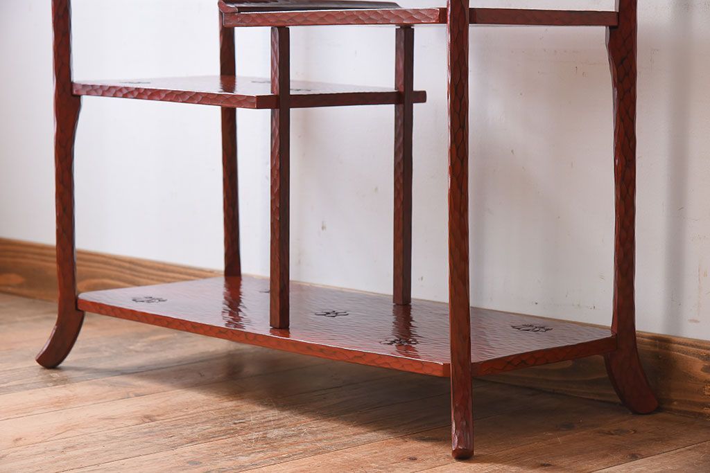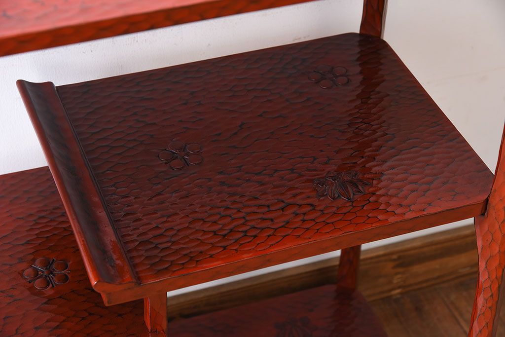 アンティーク家具 和製アンティーク 箱入り 鎌倉彫の上品な飾り棚(陳列棚)