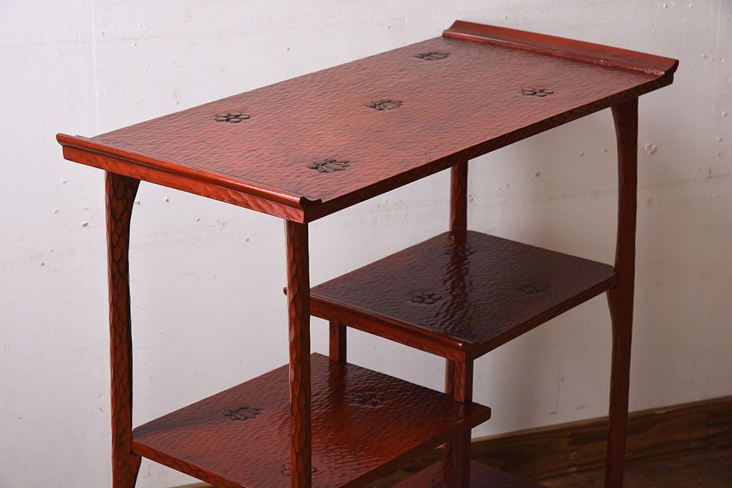 和製アンティーク 箱入り 鎌倉彫の上品な飾り棚(陳列棚)です。