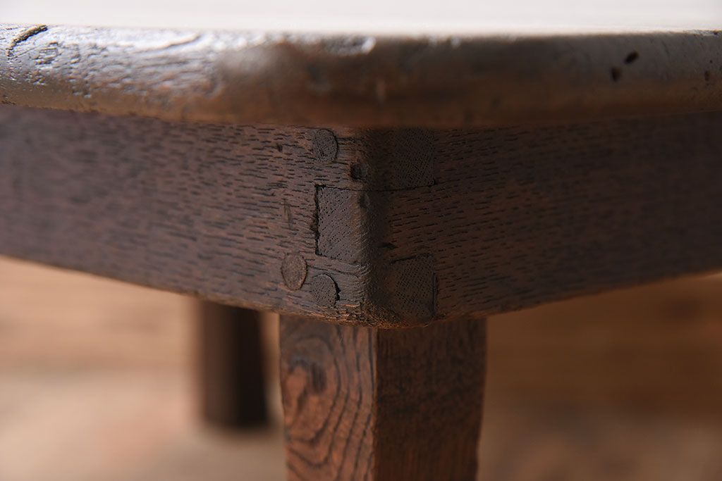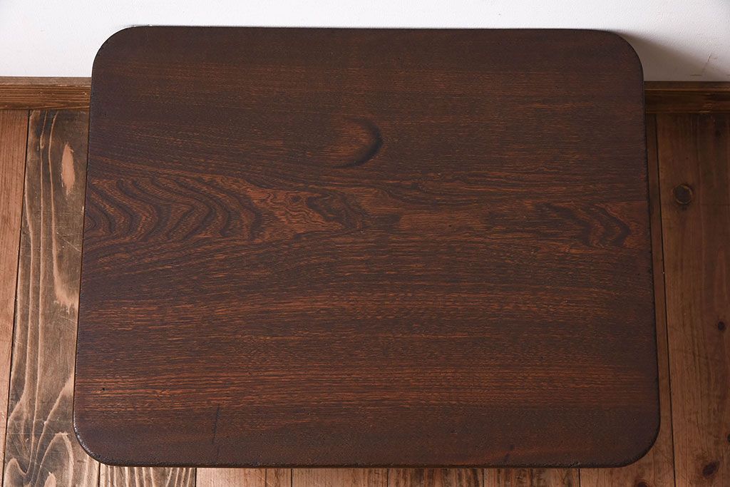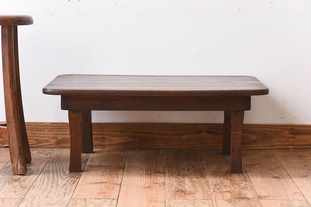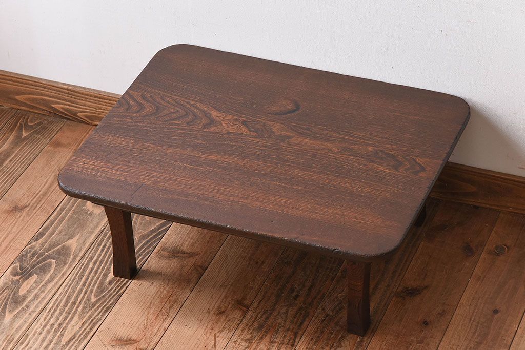 レトロ家具 小振りなサイズ!栓材一枚板 レトロなアンティークちゃぶ台(飾り台)(3)