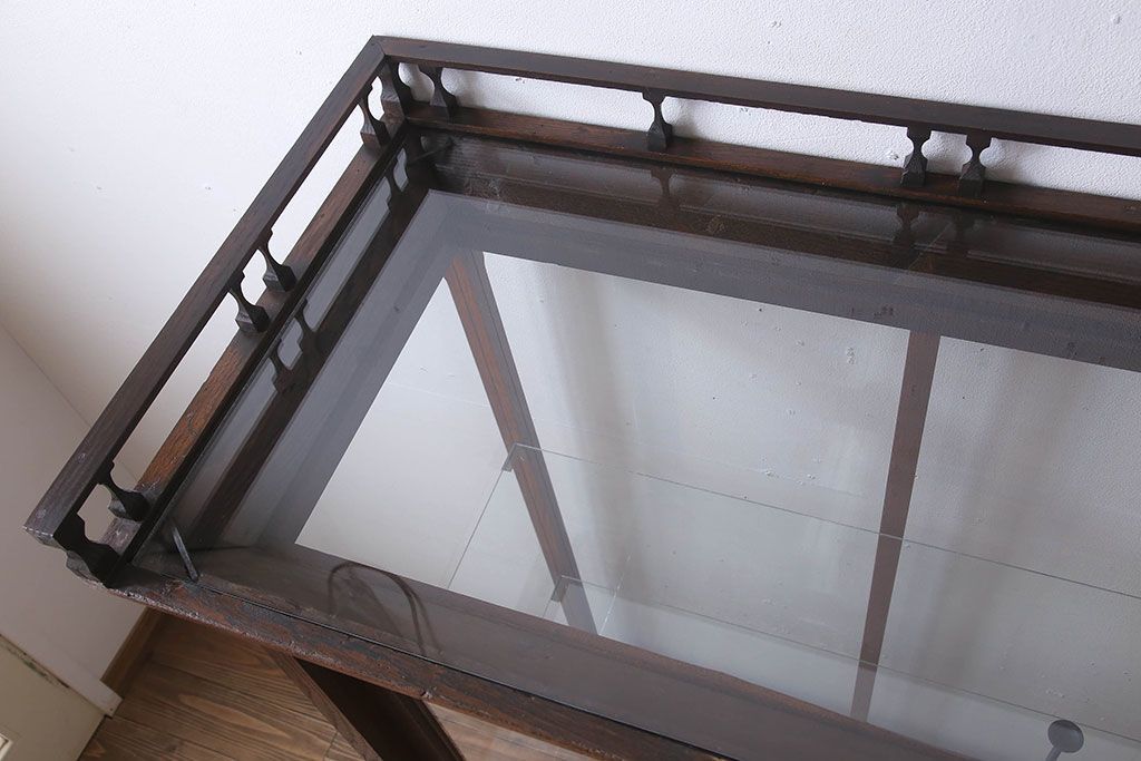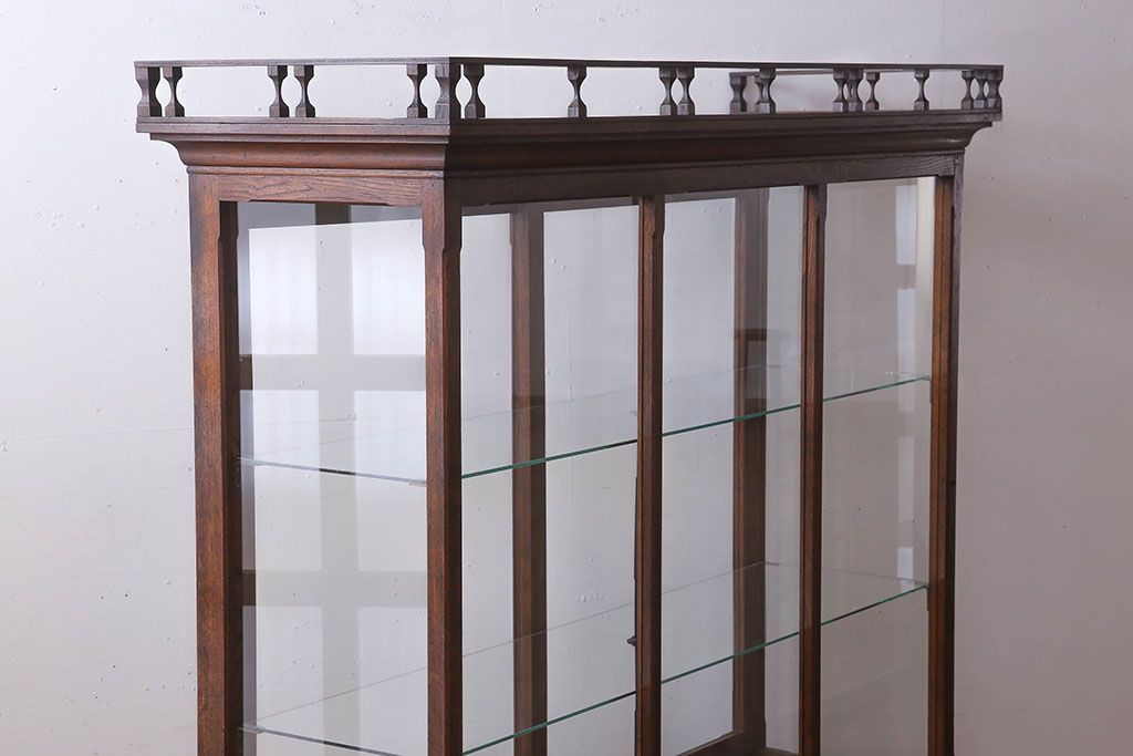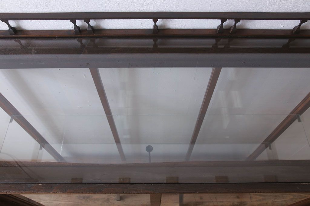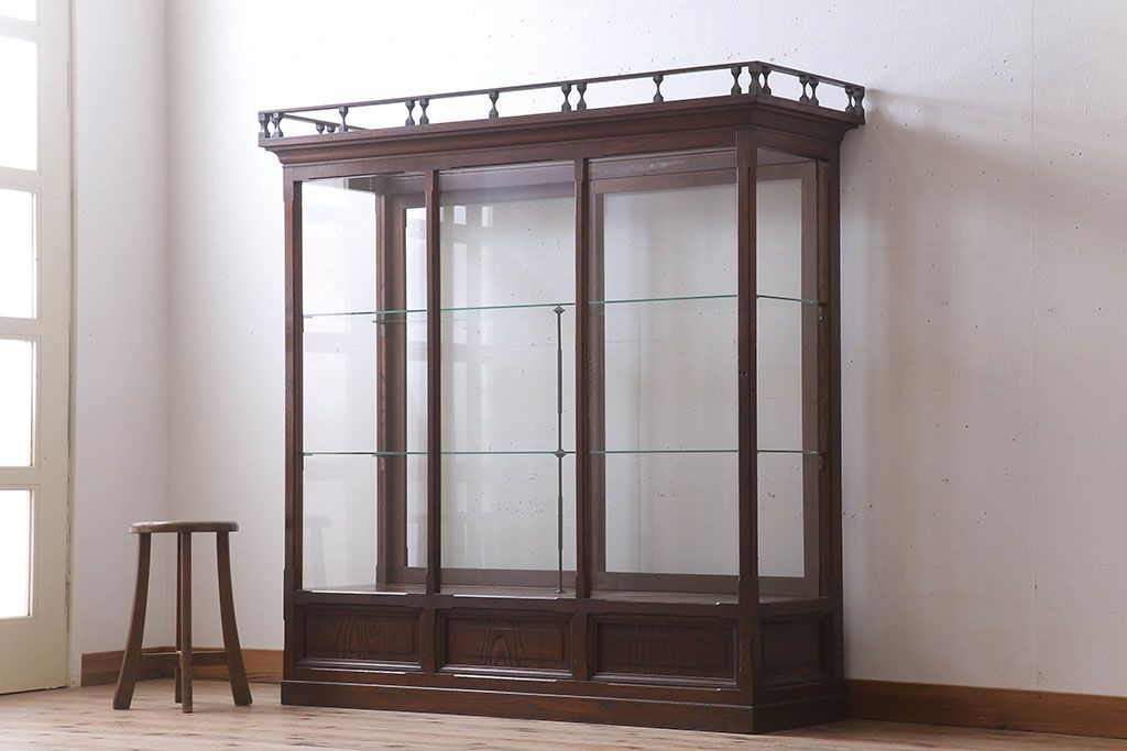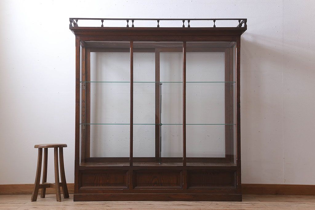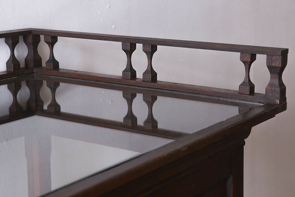 アンティーク家具 天飾り付き 大正ロマン 大ぶりサイズ!栗材製ガラスケース(ショーケース)