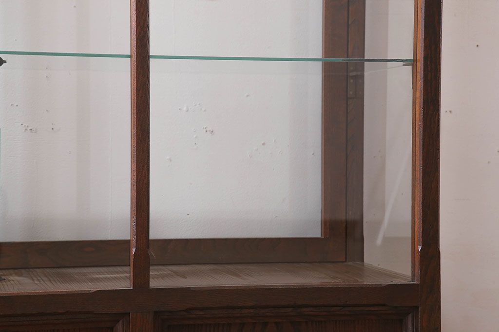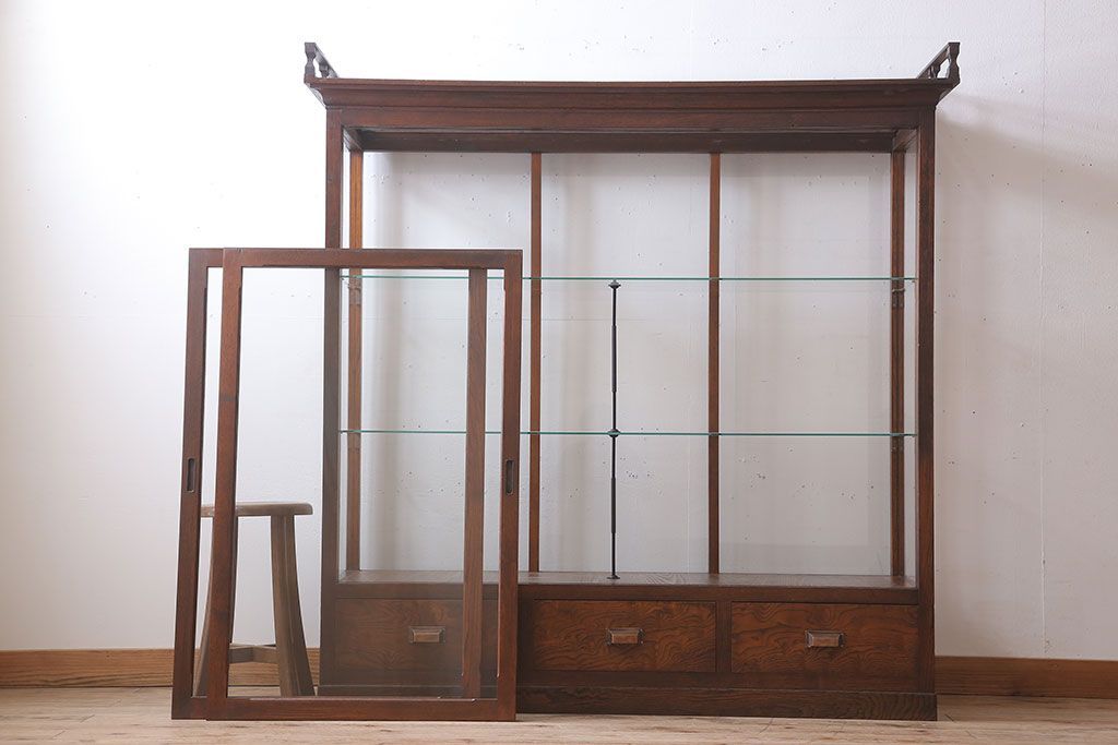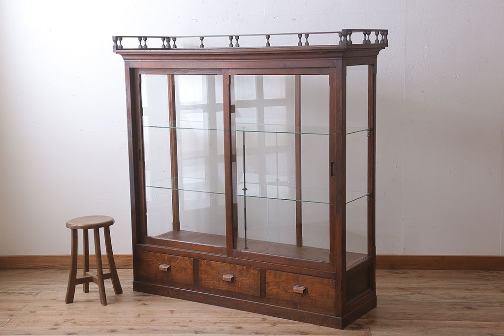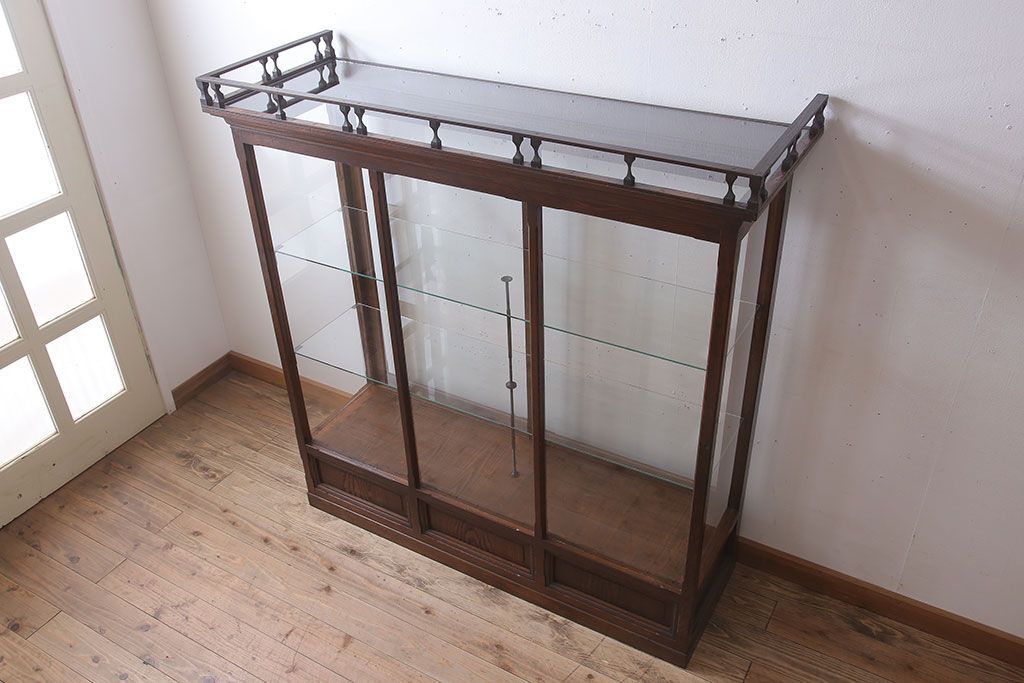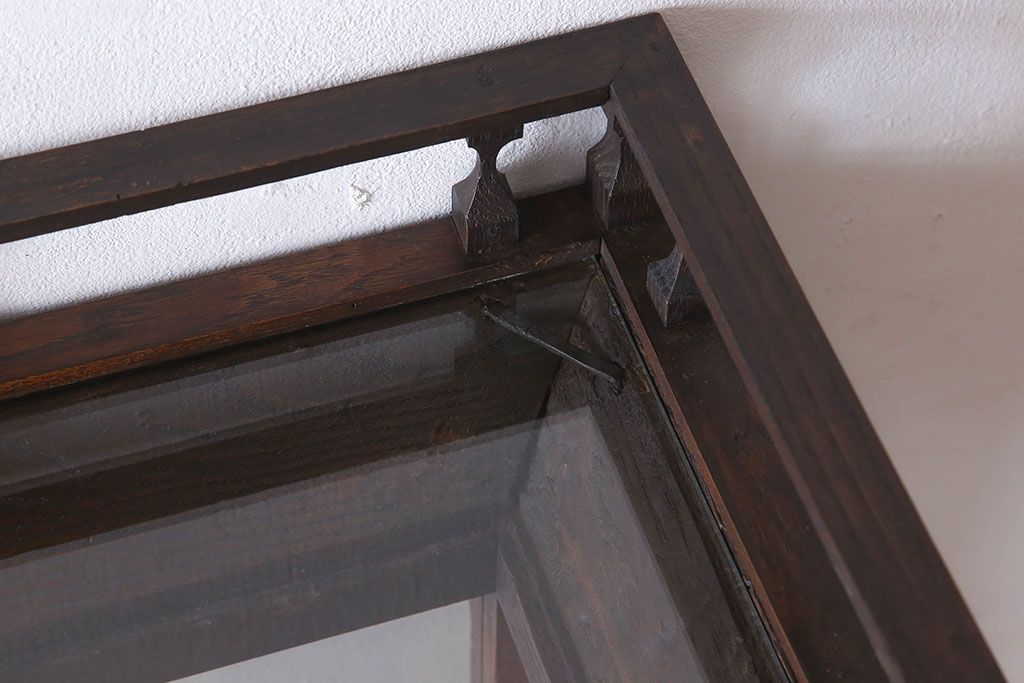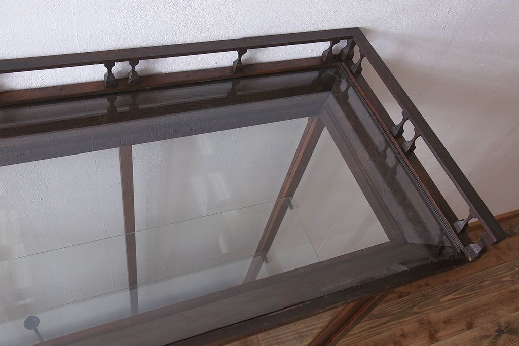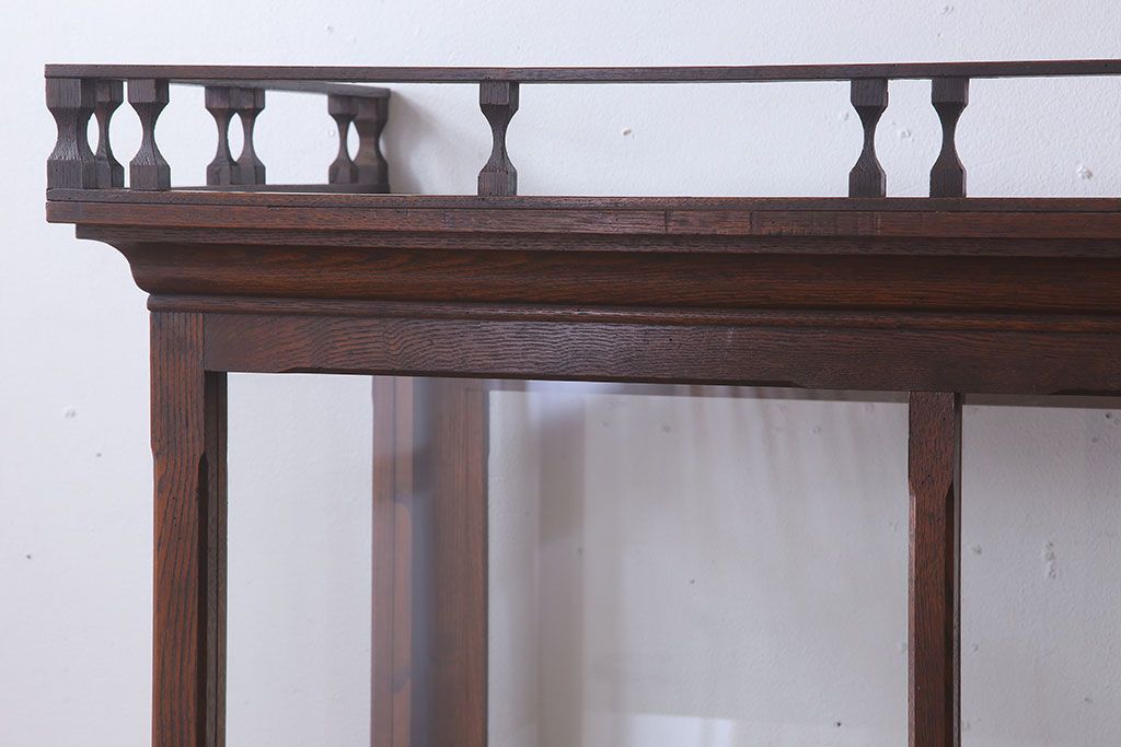 アンティーク家具 天飾り付き 大正ロマン 大ぶりサイズ!栗材製ガラスケース(ショーケース)
