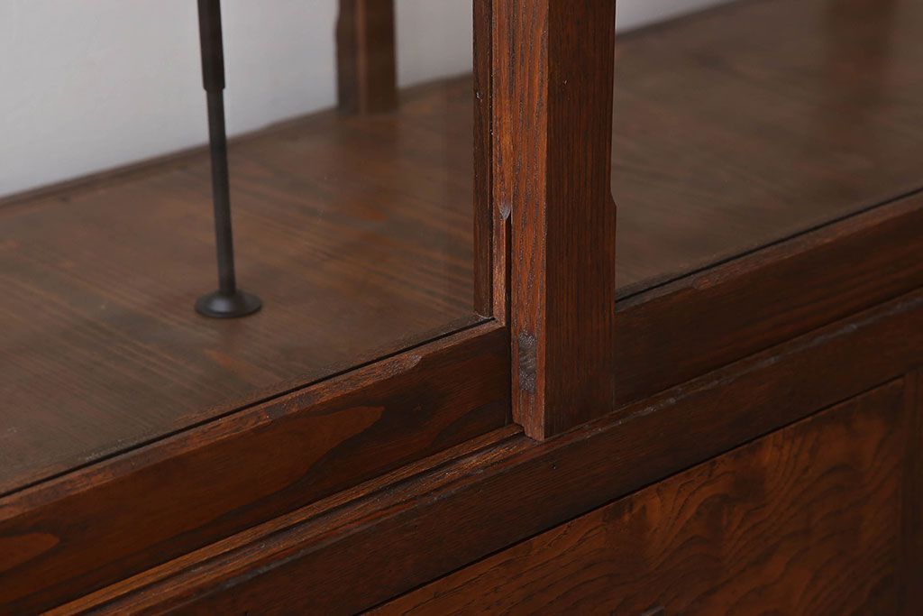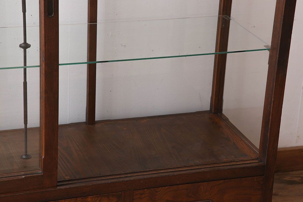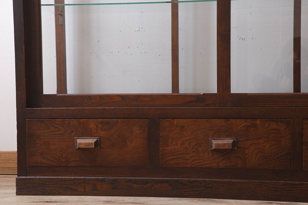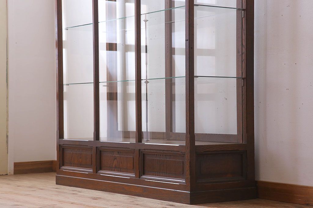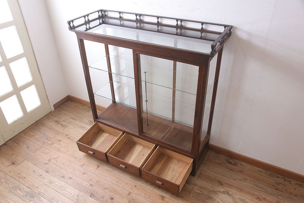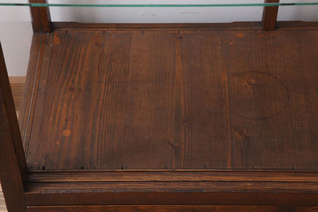 アンティーク家具 天飾り付き 大正ロマン 大ぶりサイズ!栗材製ガラスケース(ショーケース)