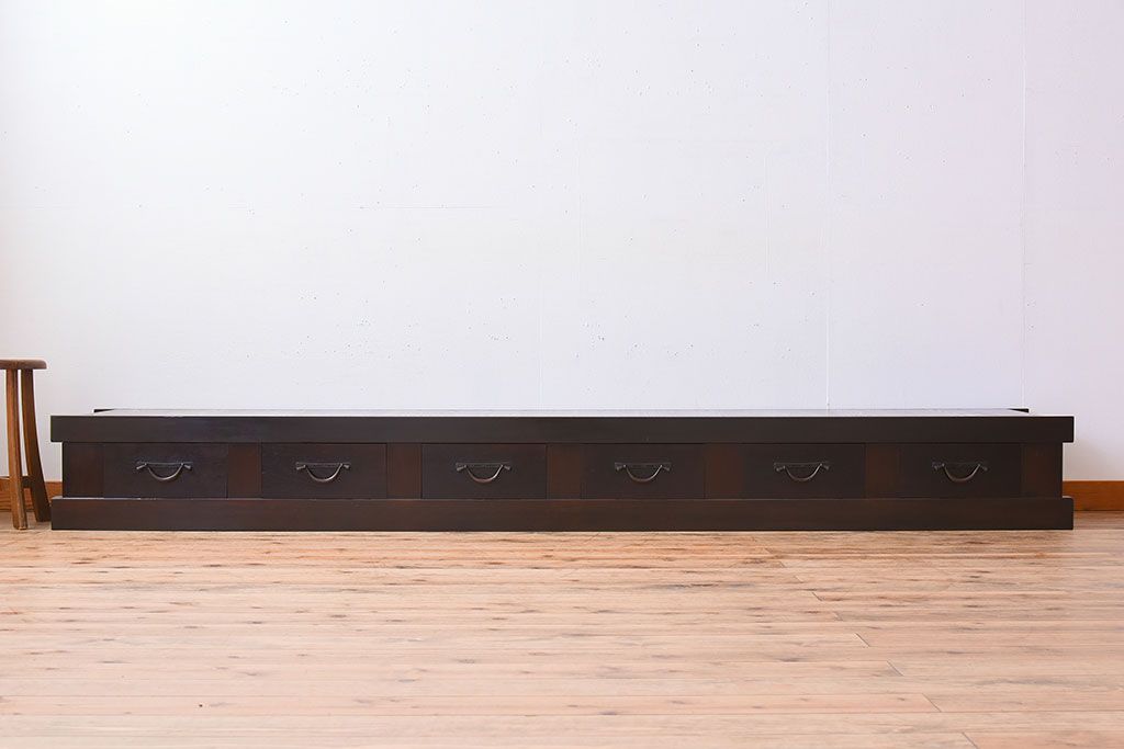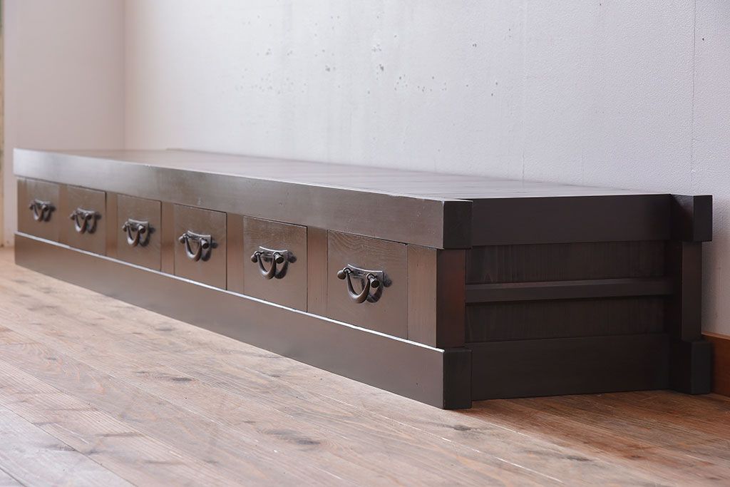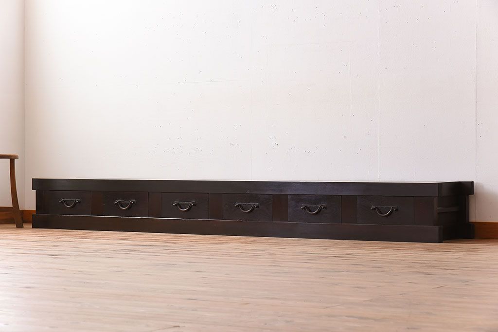 アンティーク家具 明治大正期 和製アンティークの九尺水屋箪笥ローボード(テレビ台、キャビネット、収納棚)