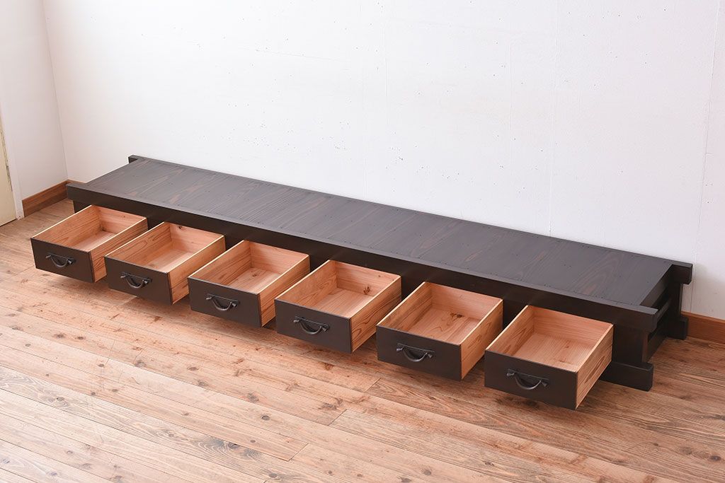 ラフジュ工房> キャビネット・戸棚> テレビ台・ローボード > アンティーク家具 明治大正期 和製アンティークの九尺水屋箪笥ローボード(テレビ台、キャビネット、収納棚)