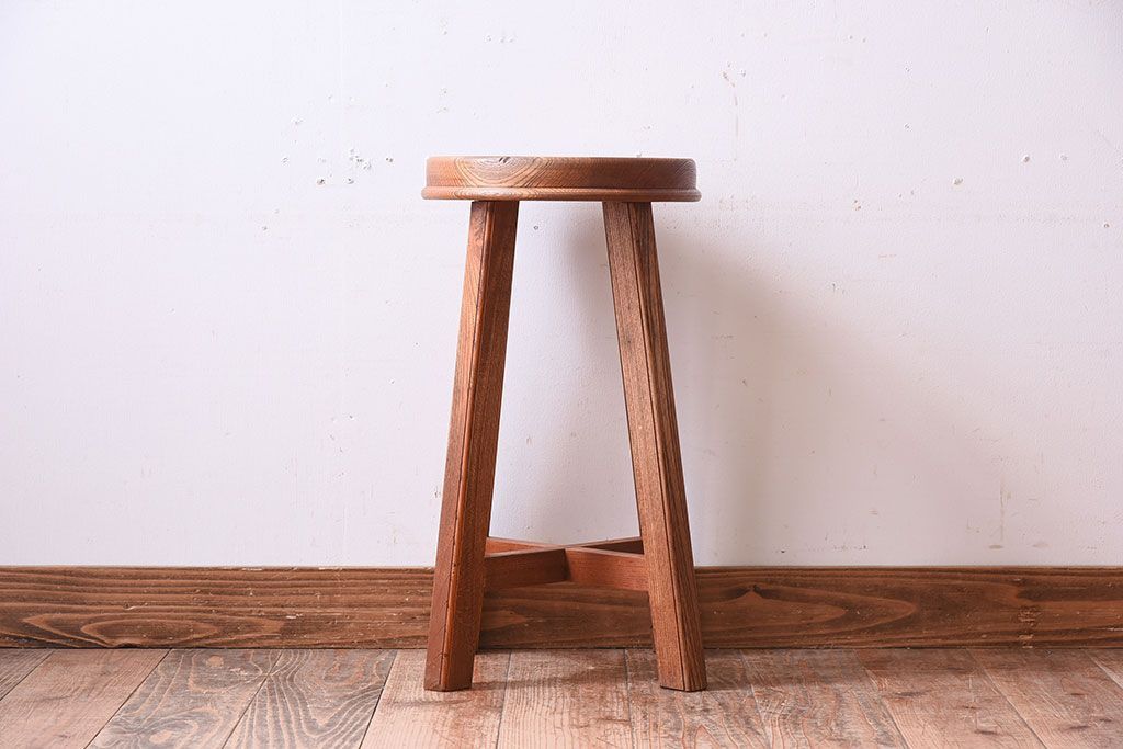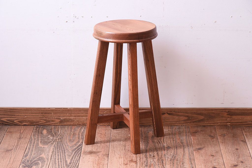 ラフジュ工房オリジナル 欅材古材のシンプルな特製スツールです。