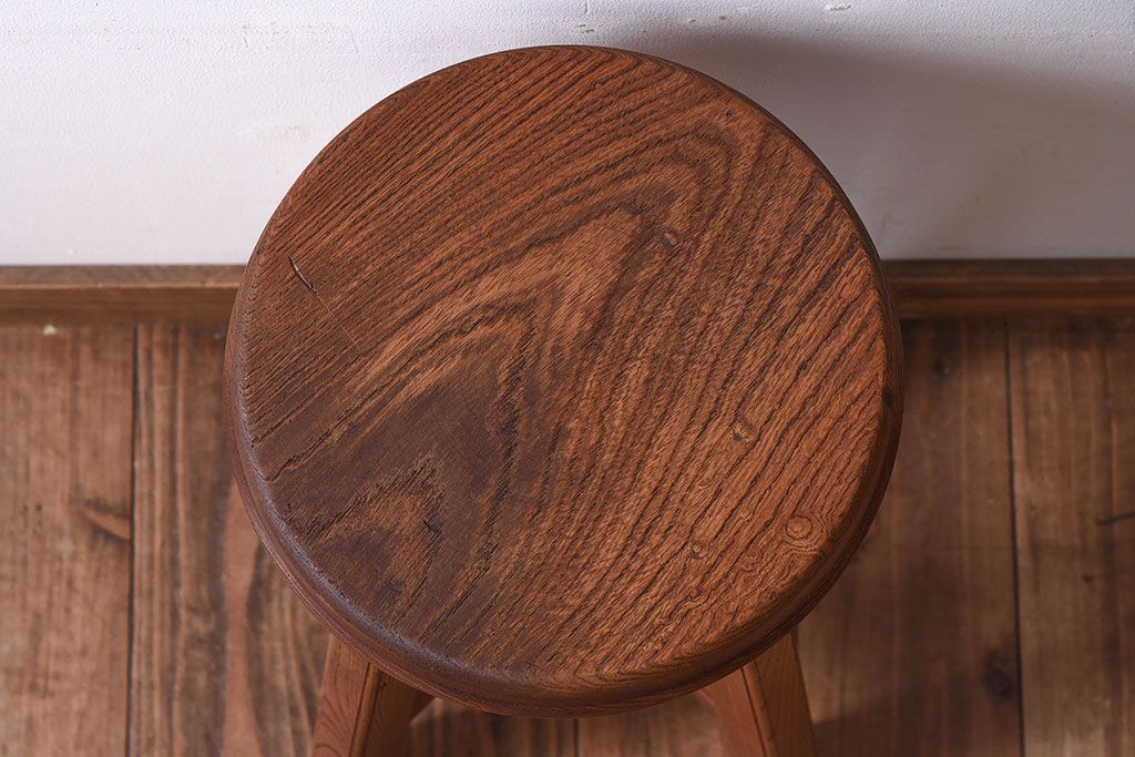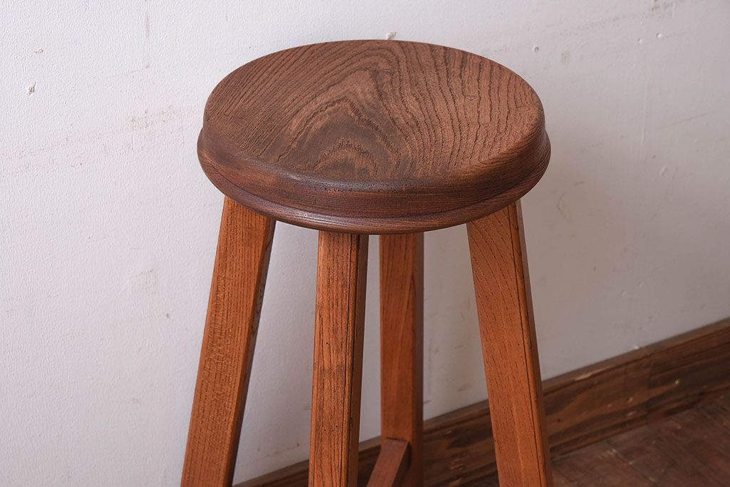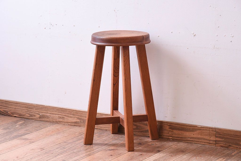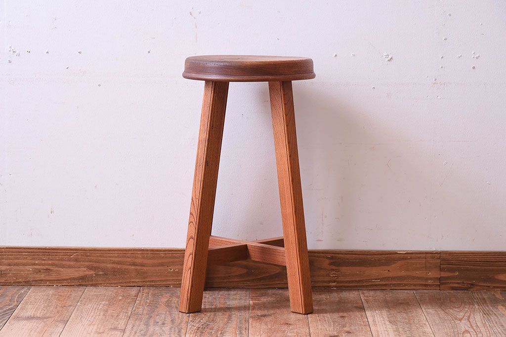 ラフジュ工房オリジナル 欅材古材のシンプルな特製スツール(1)です。