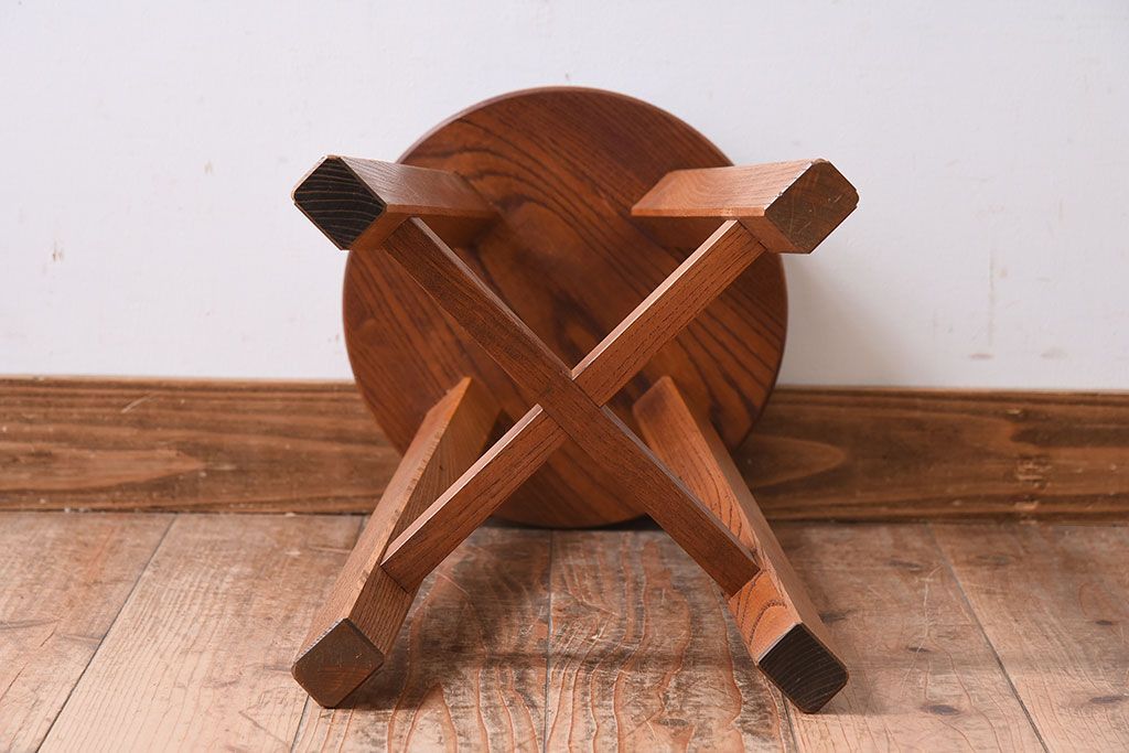 ラフジュ工房オリジナル 欅材古材のシンプルな特製スツール(1)