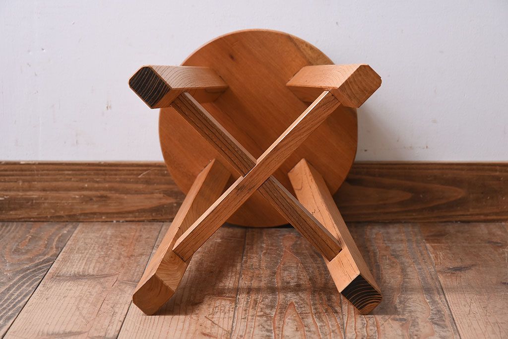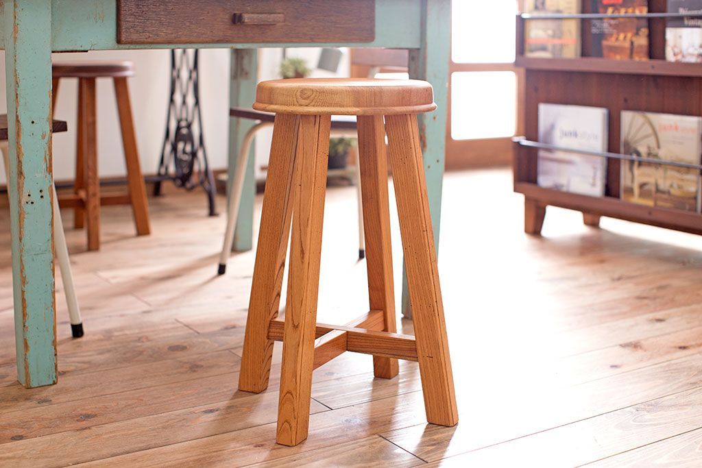 ラフジュ工房オリジナル 欅材古材のシンプルな特製スツール(2)