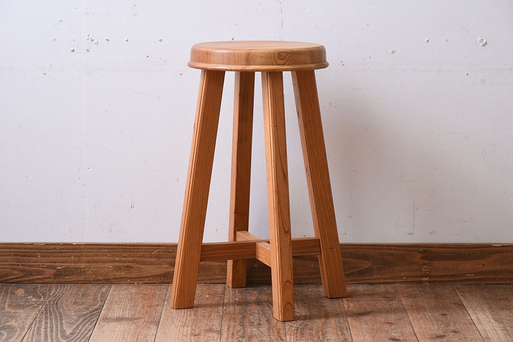 ラフジュ工房オリジナル 欅材古材のシンプルな特製スツール(2)です。