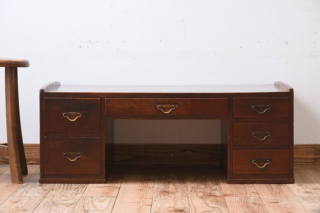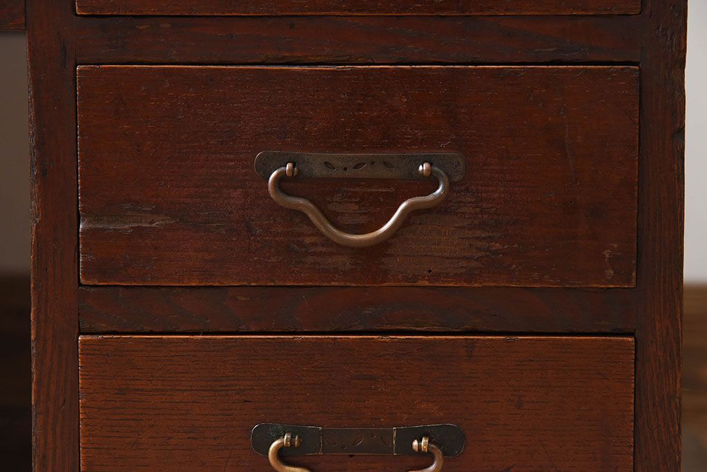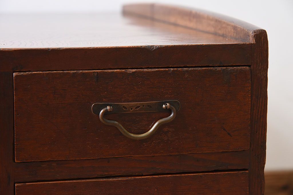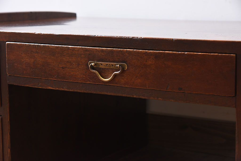 ラフジュ工房> キャビネット・戸棚> テレビ台・ローボード > アンティーク家具 古民具・骨董 明治大正期!三方欅材のアンティーク両袖文机