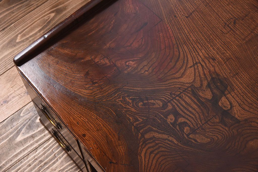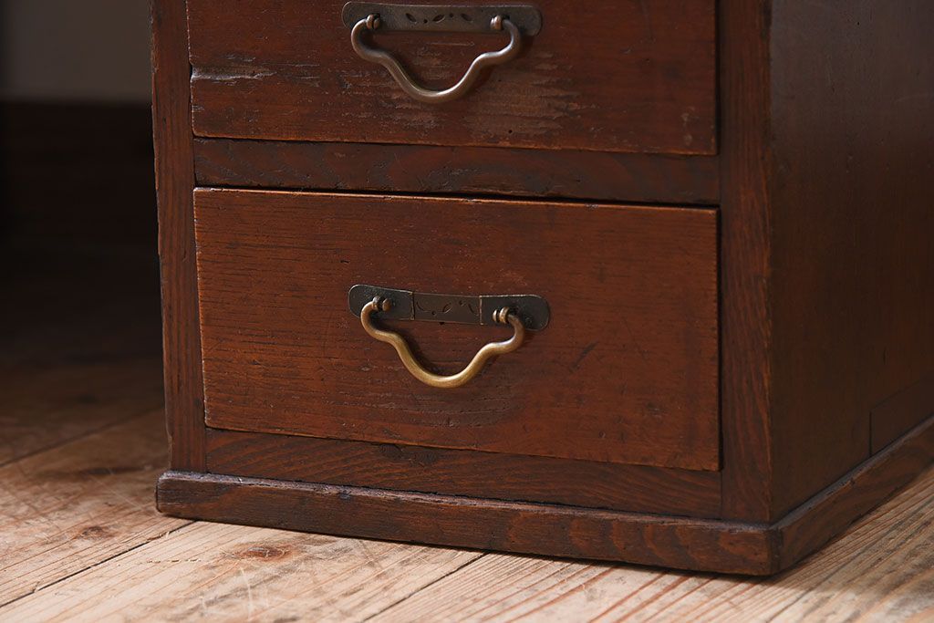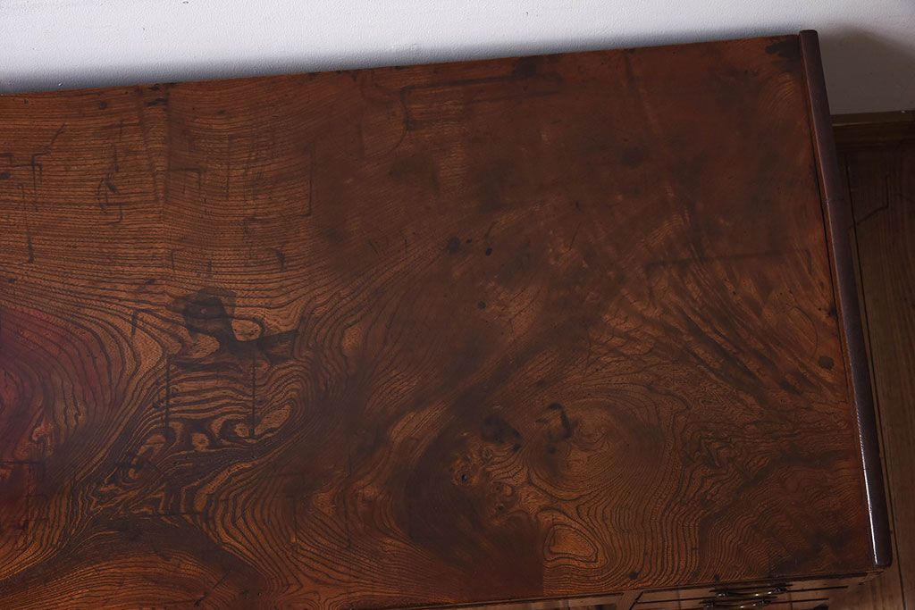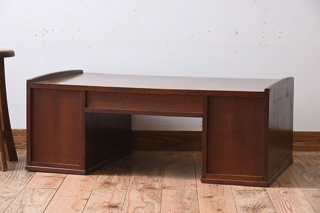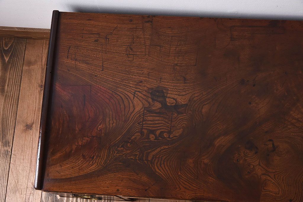 ラフジュ工房> キャビネット・戸棚> テレビ台・ローボード > アンティーク家具 古民具・骨董 明治大正期!三方欅材のアンティーク両袖文机