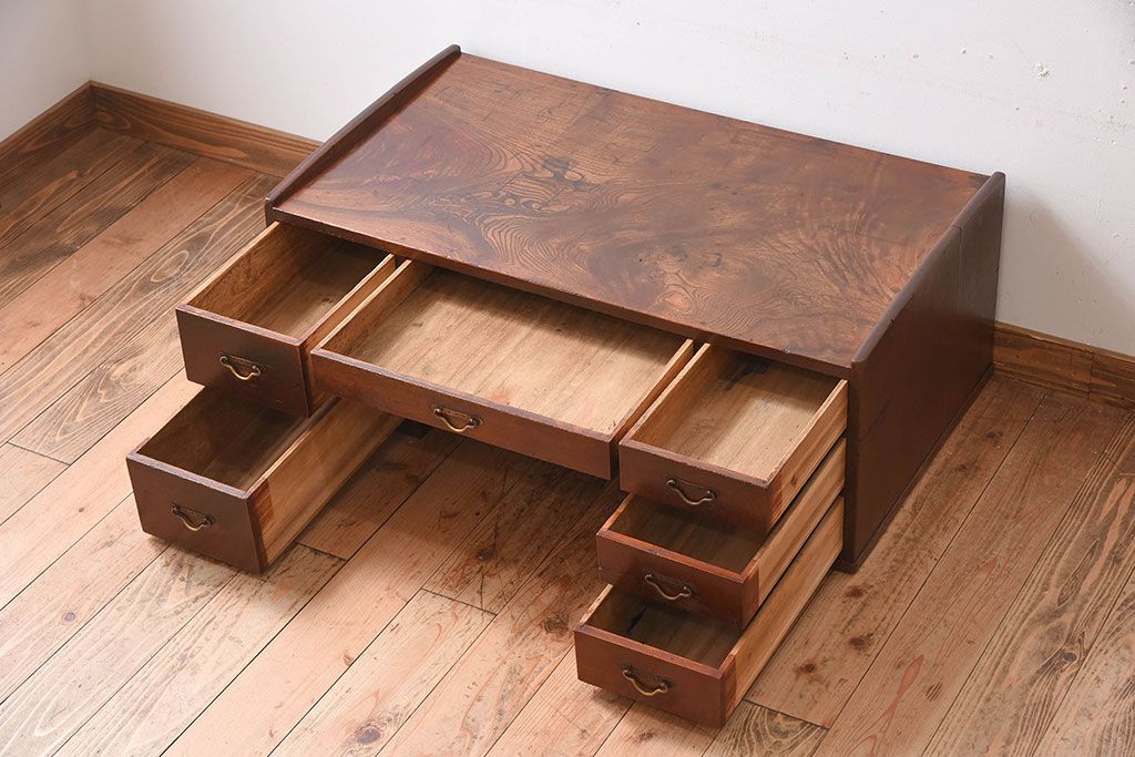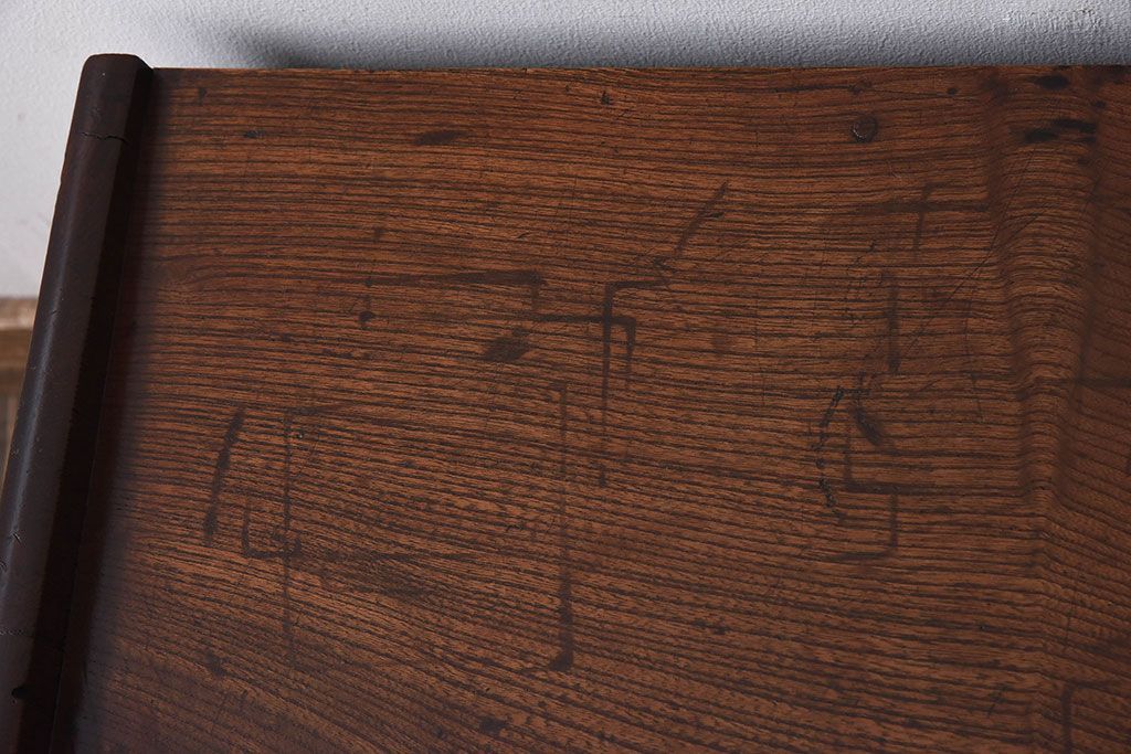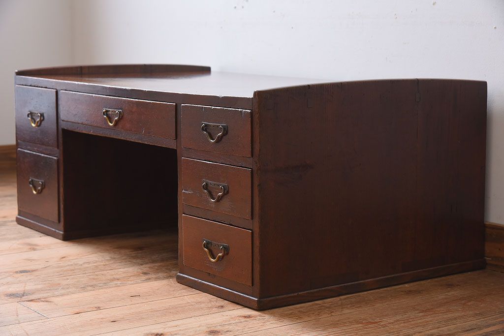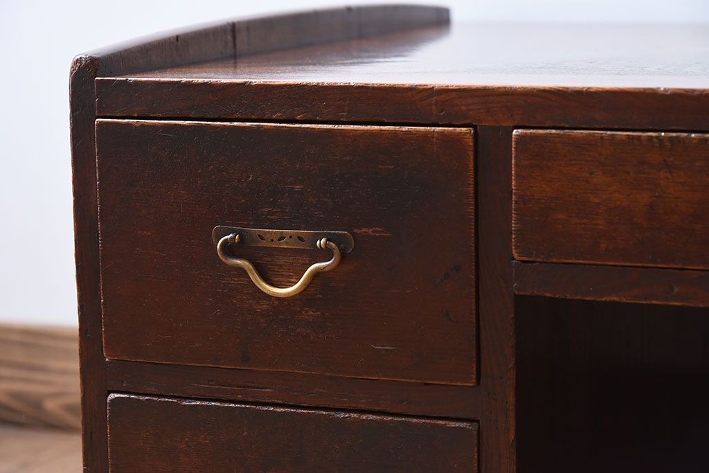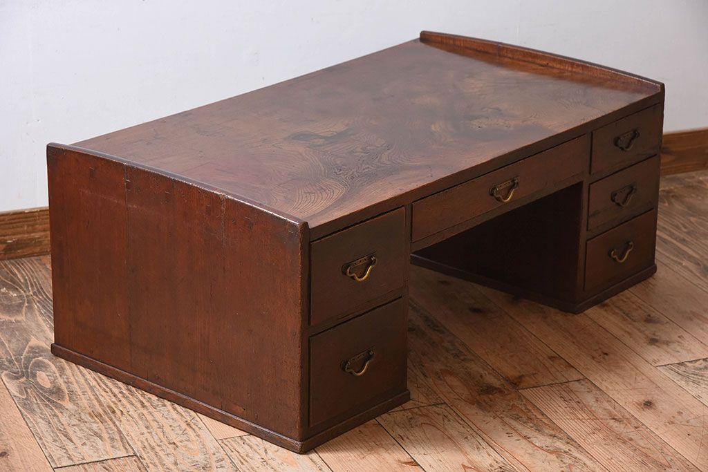 アンティーク家具 古民具・骨董 明治大正期!三方欅材のアンティーク両袖文机