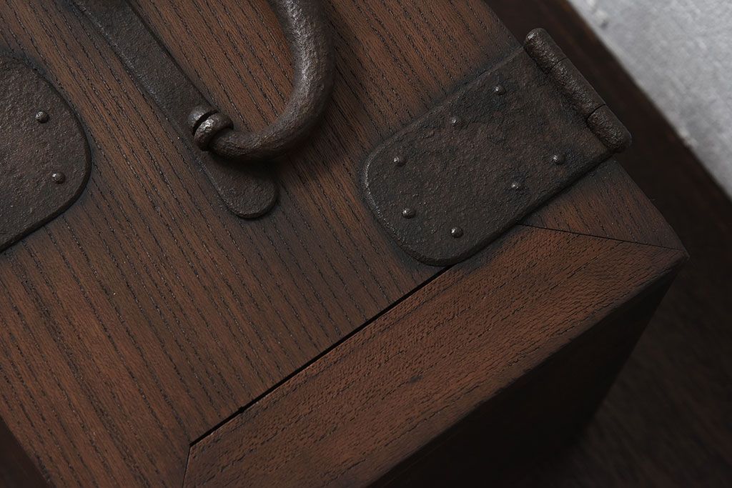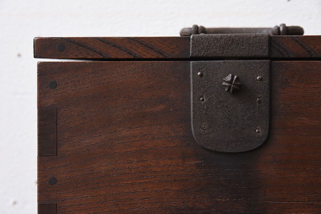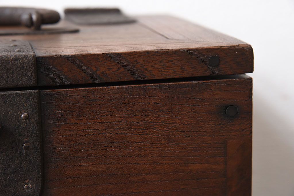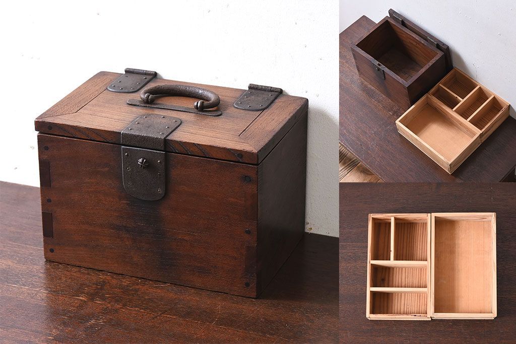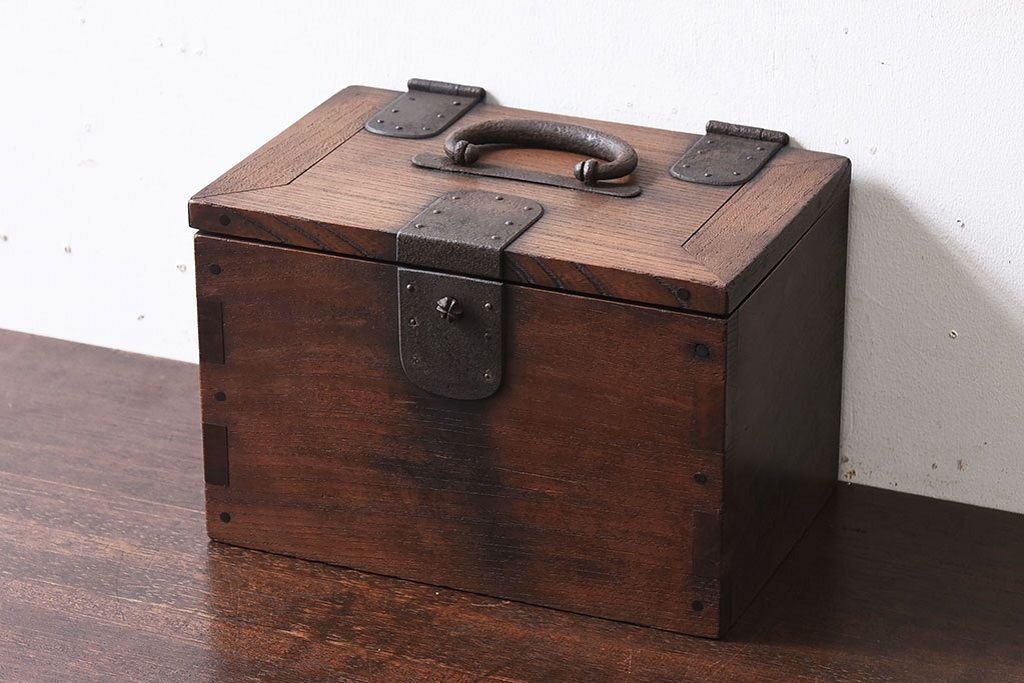 ラフジュ工房> 雑貨 > アンティーク雑貨 総欅材 明治期の古い金具付き!アンティーク硯箱(小箱・木箱)
