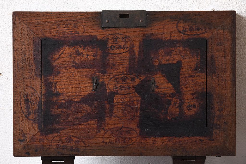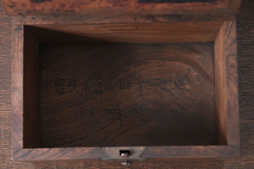 ラフジュ工房> 骨董・美術品> 書道具 > アンティーク雑貨 総欅材 明治期の古い金具付き!アンティーク硯箱(小箱・木箱)