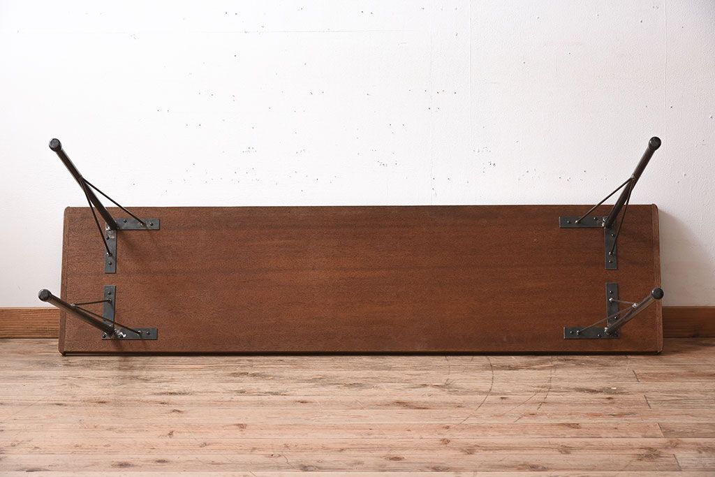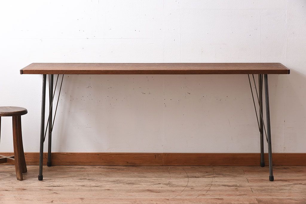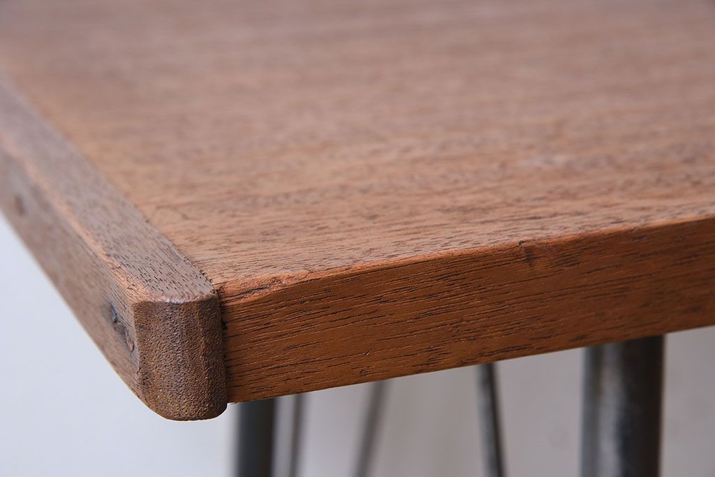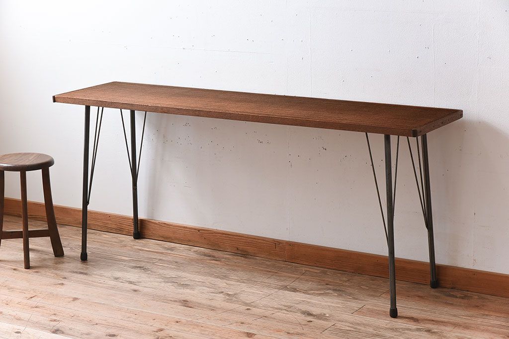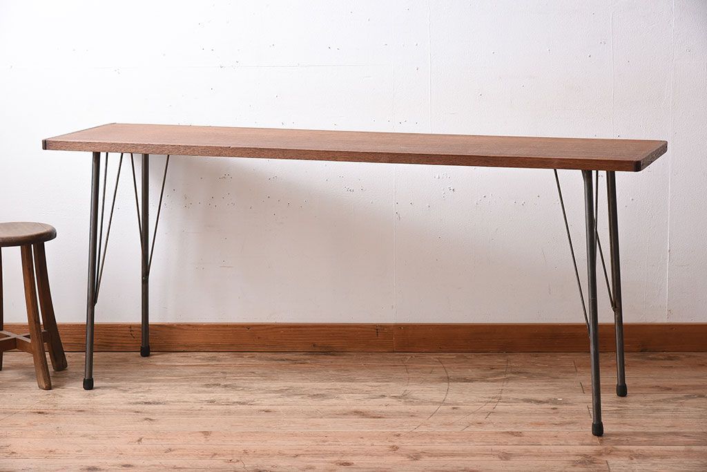 アンティーク家具 天板一枚板 ラワン材 シンプルな鉄脚テーブル