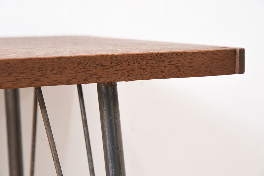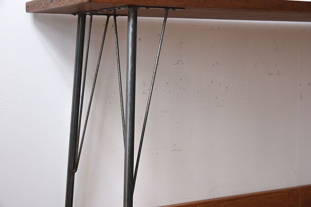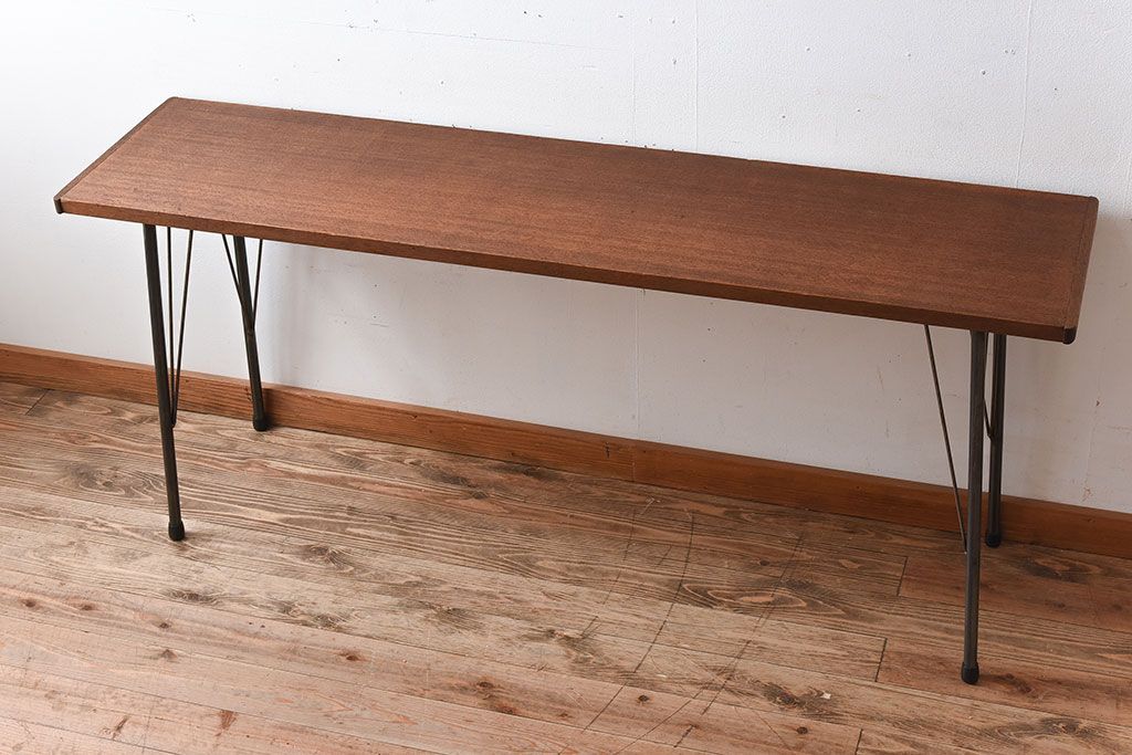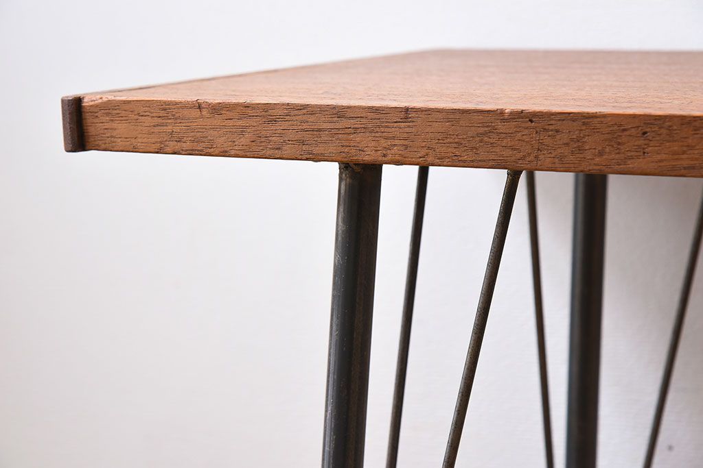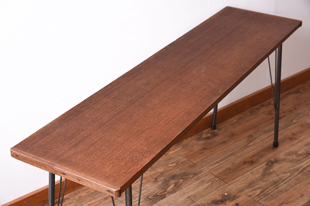 アンティーク家具 天板一枚板 ラワン材 シンプルな鉄脚テーブル