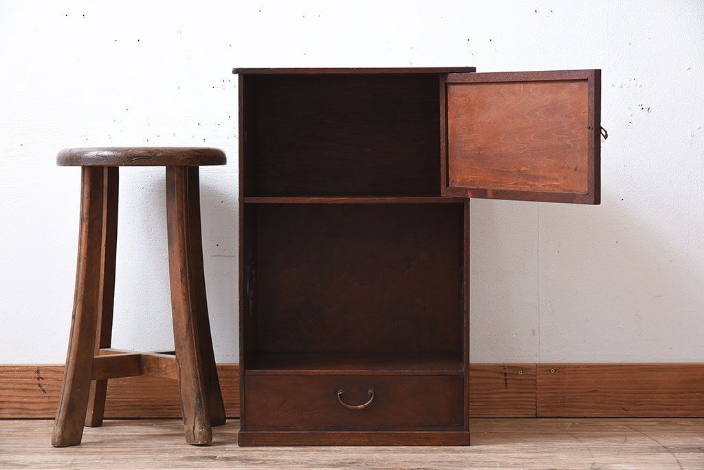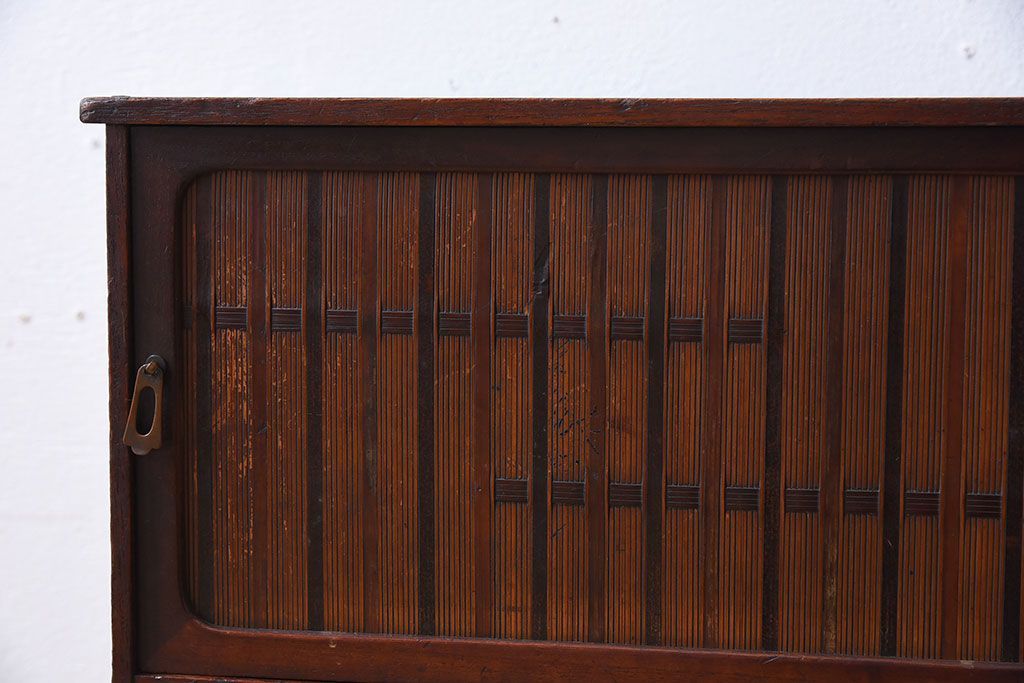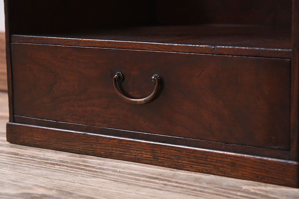 アンティーク家具 桑材製 透かし彫り 上品な意匠の小さなアンティーク収納棚