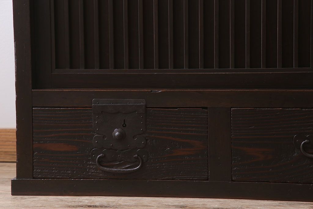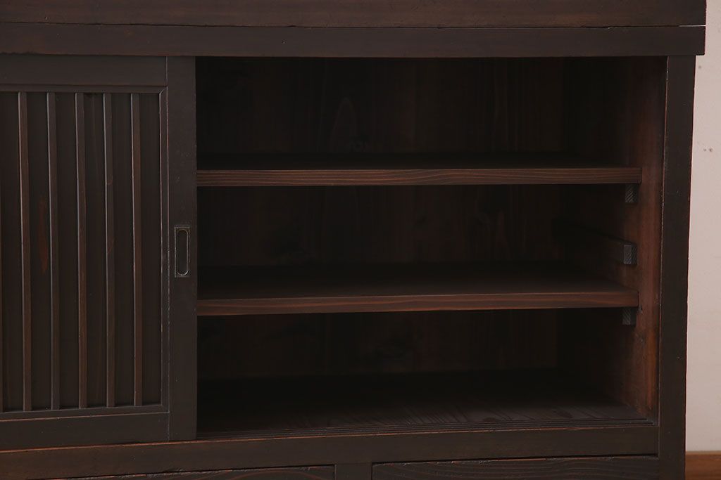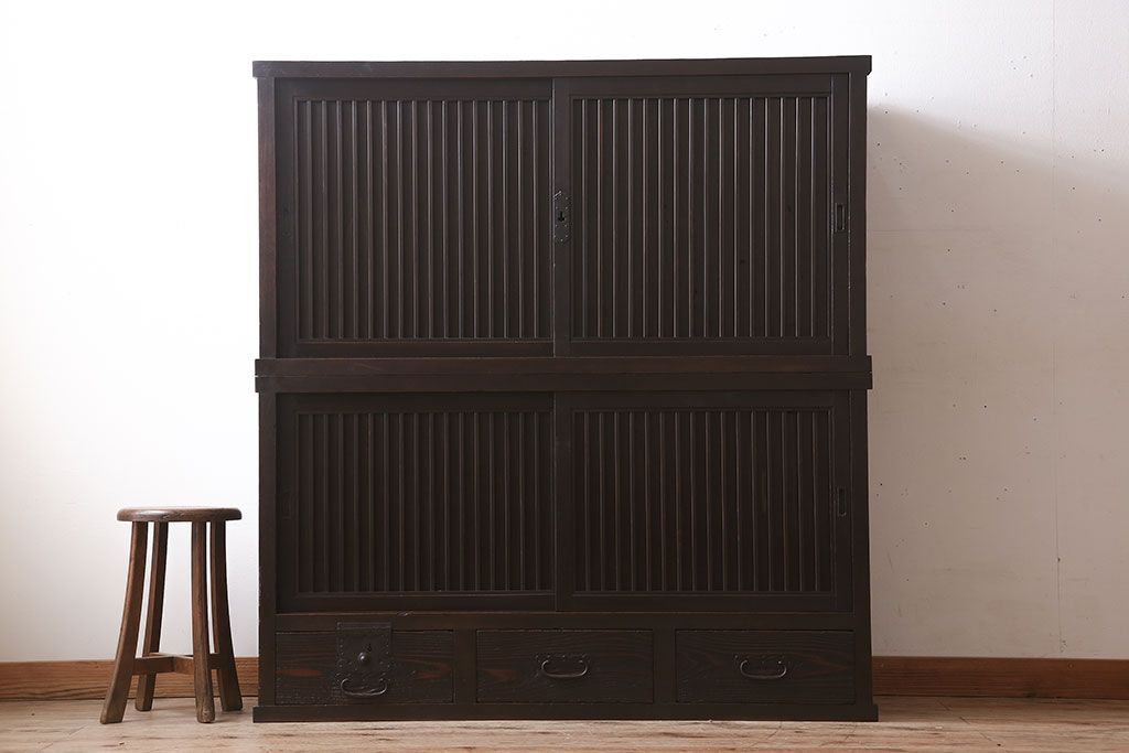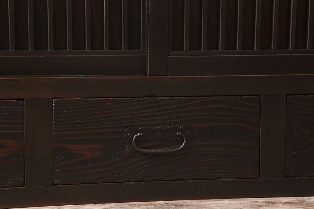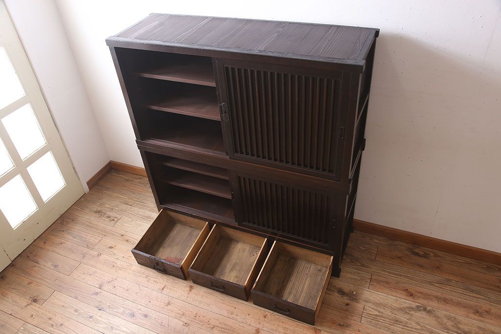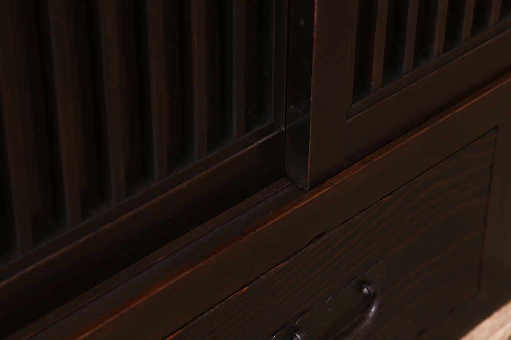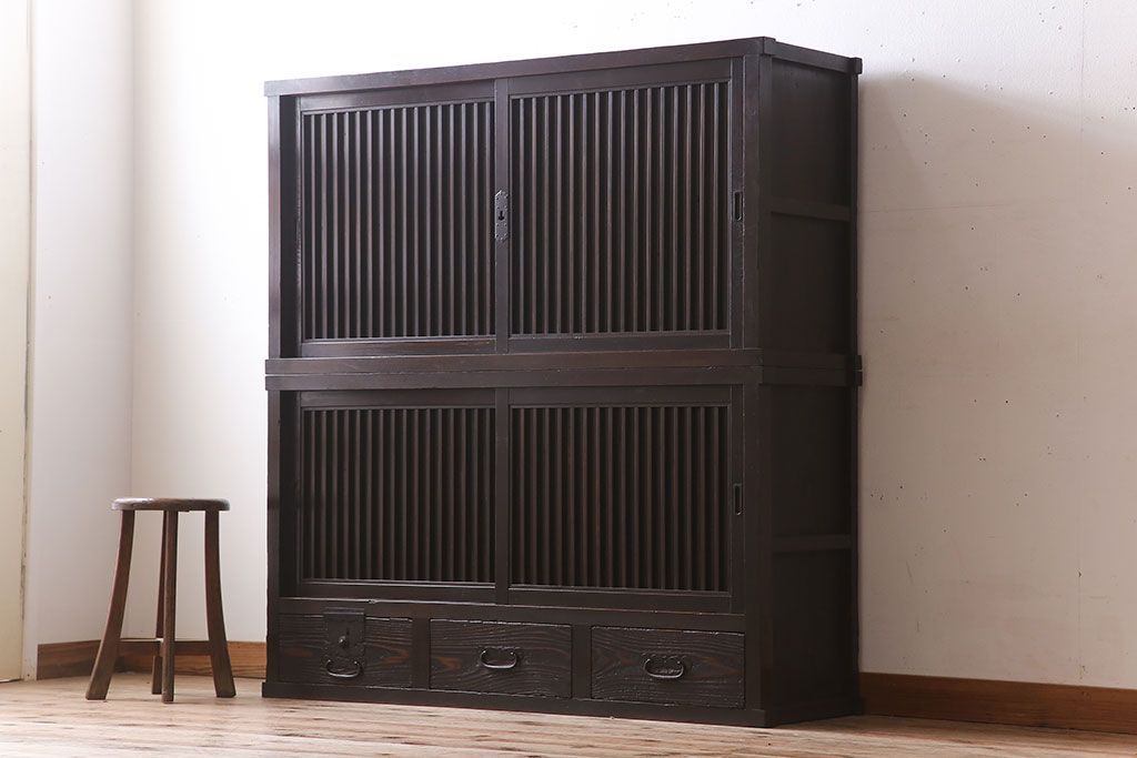 アンティーク家具 アンティーク 和モダンスタイル!四尺 縦桟引き戸の重ね水屋箪笥