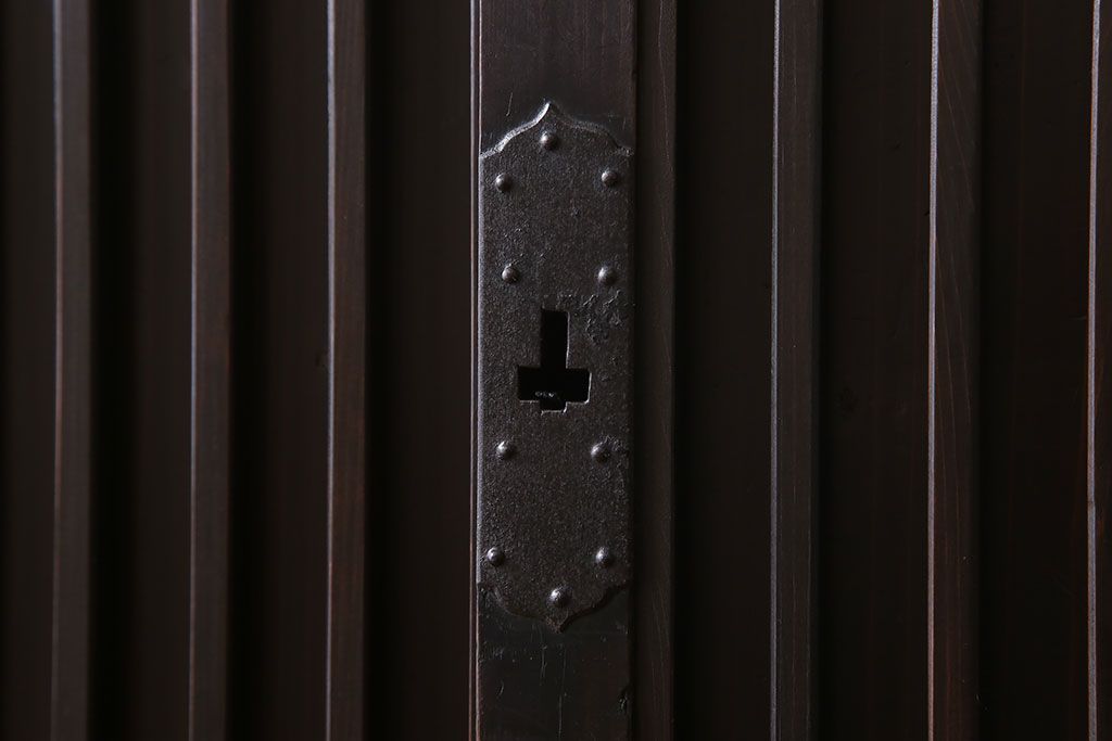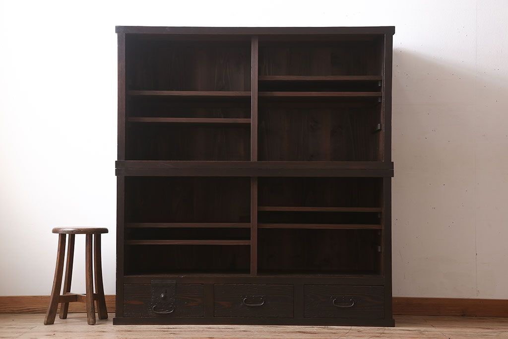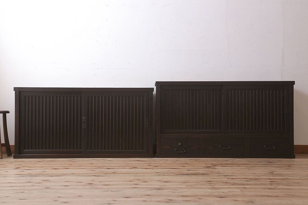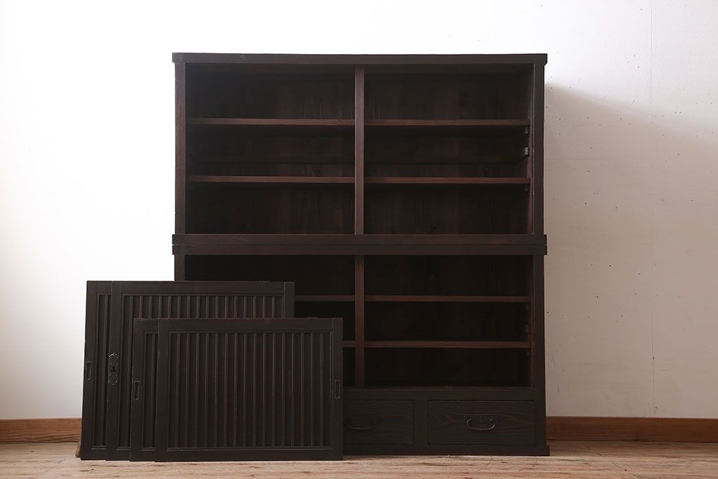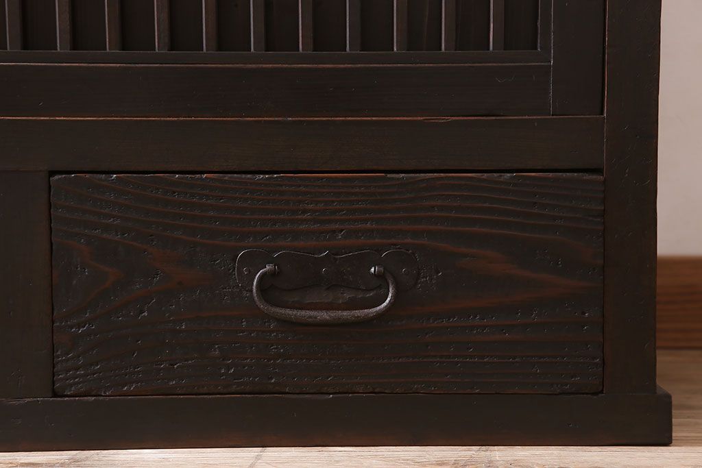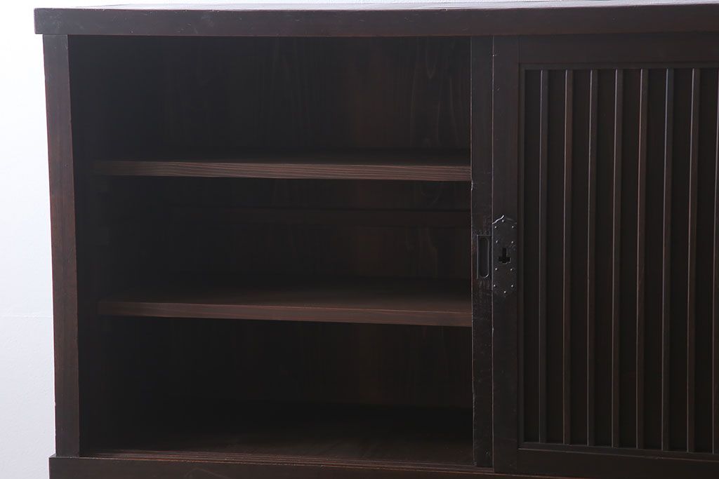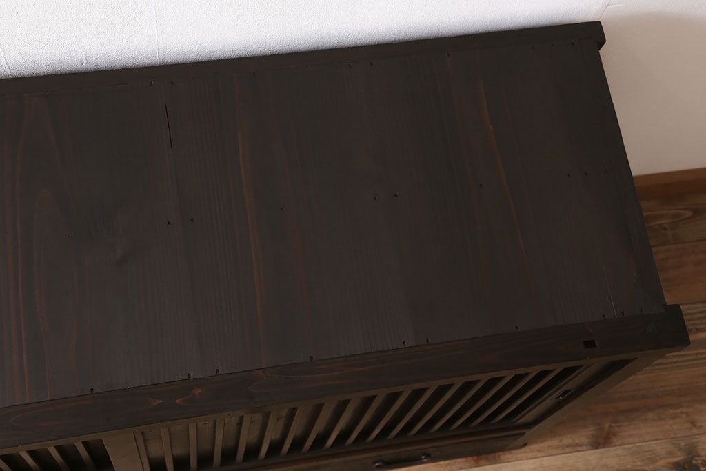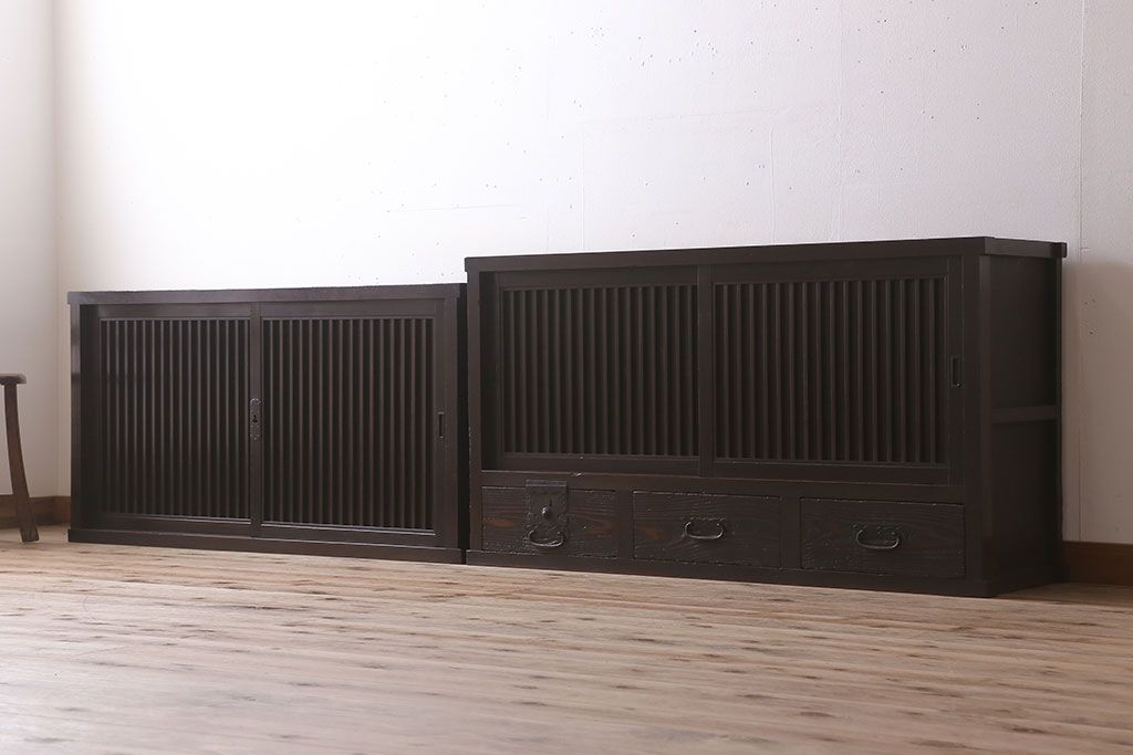 アンティーク家具 アンティーク 和モダンスタイル!四尺 縦桟引き戸の重ね水屋箪笥
