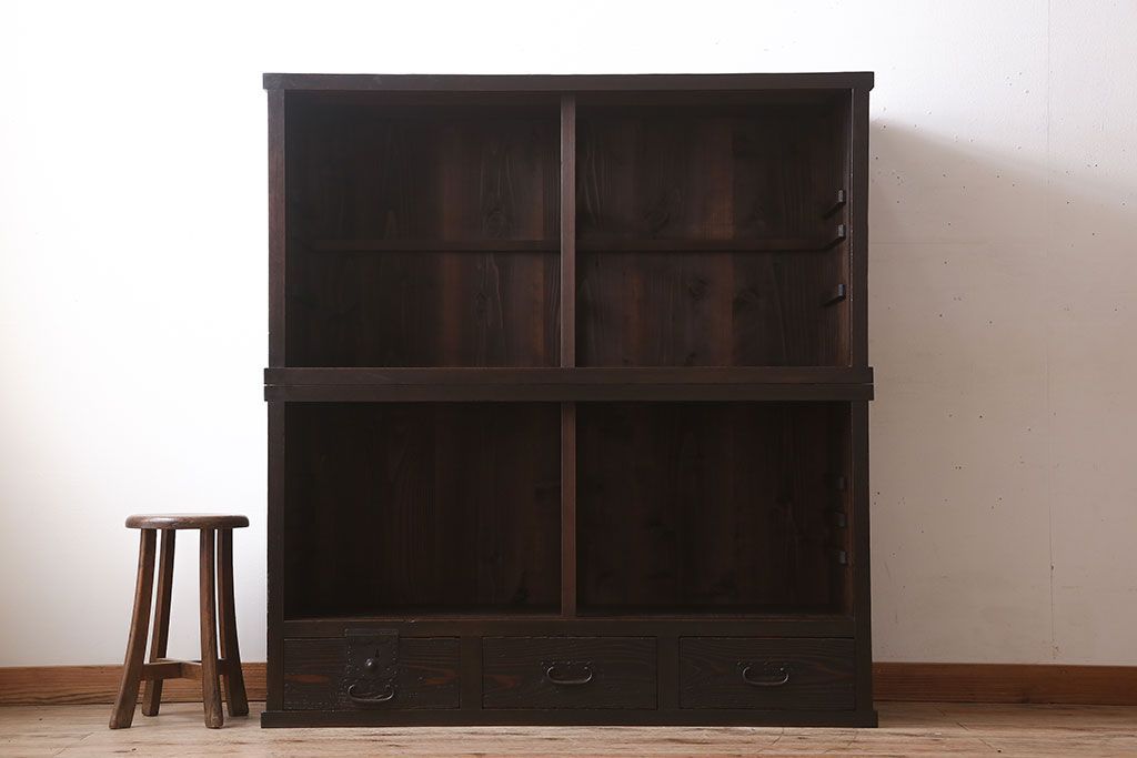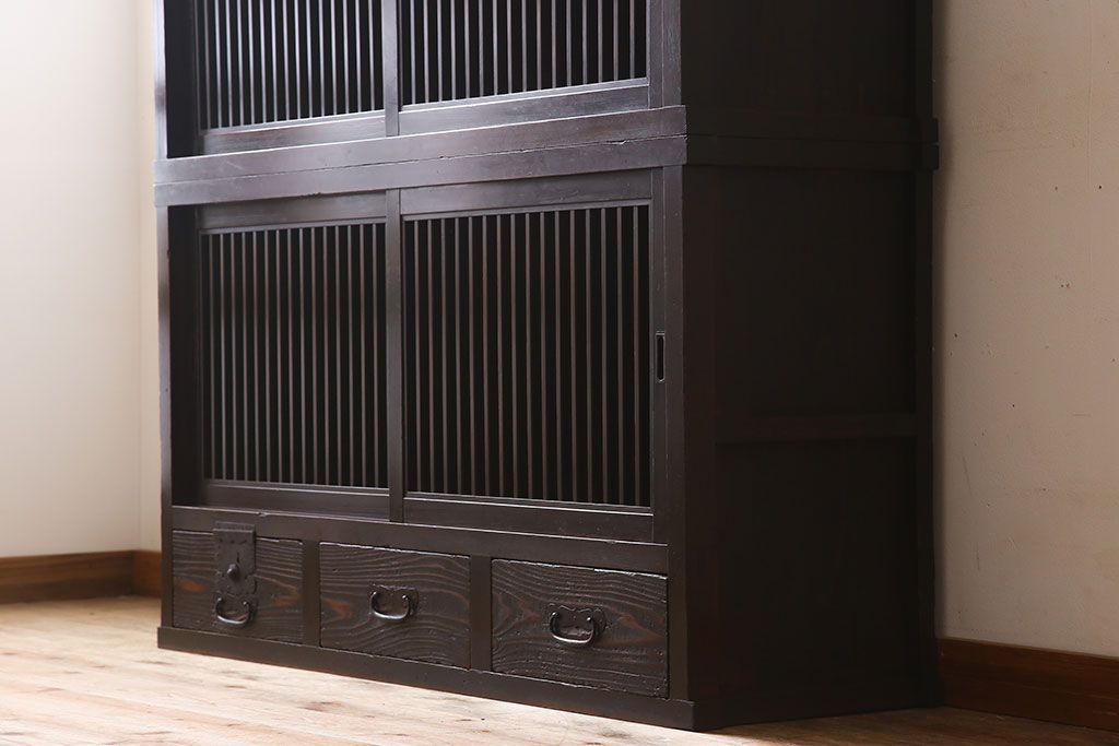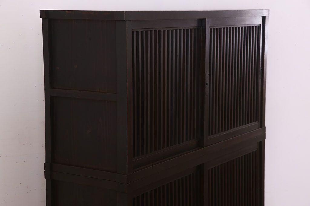 アンティーク 和モダンスタイル!四尺 縦桟引き戸の重ね水屋箪笥です。