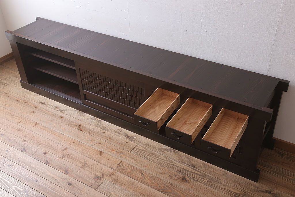 古い水屋箪笥を当店でリメイクしてローボードに仕立てました。