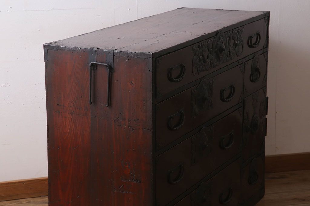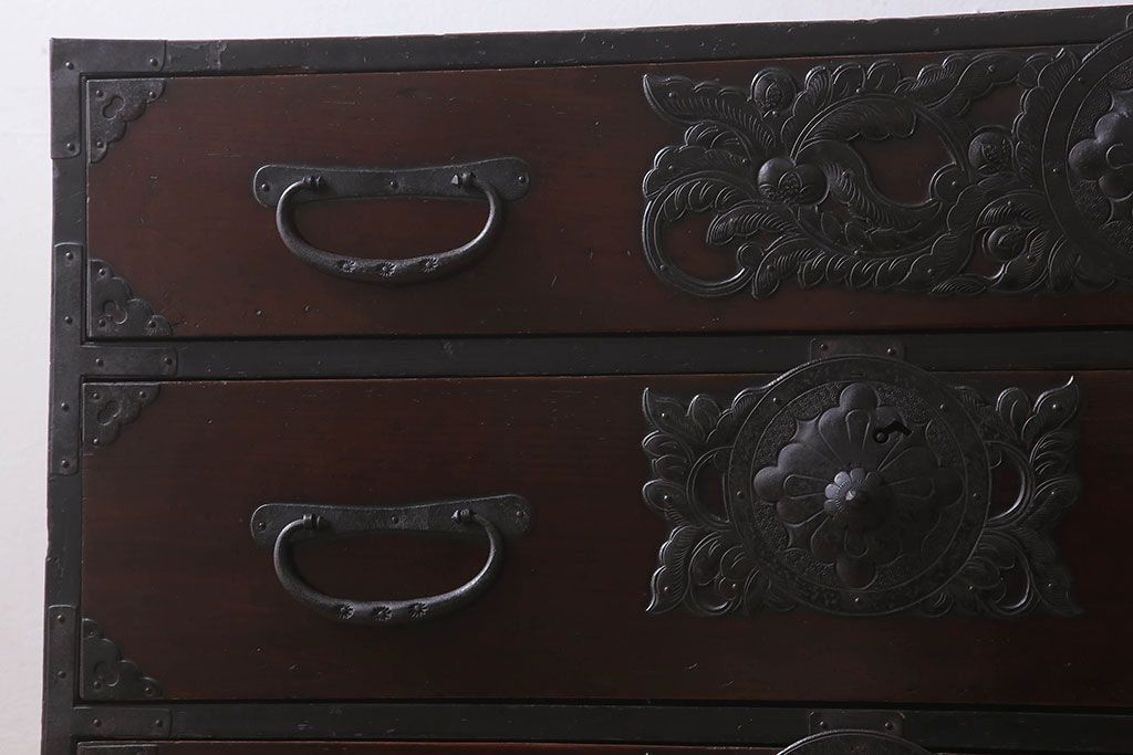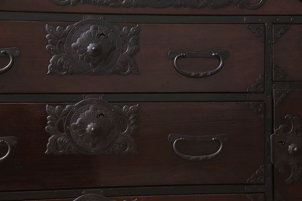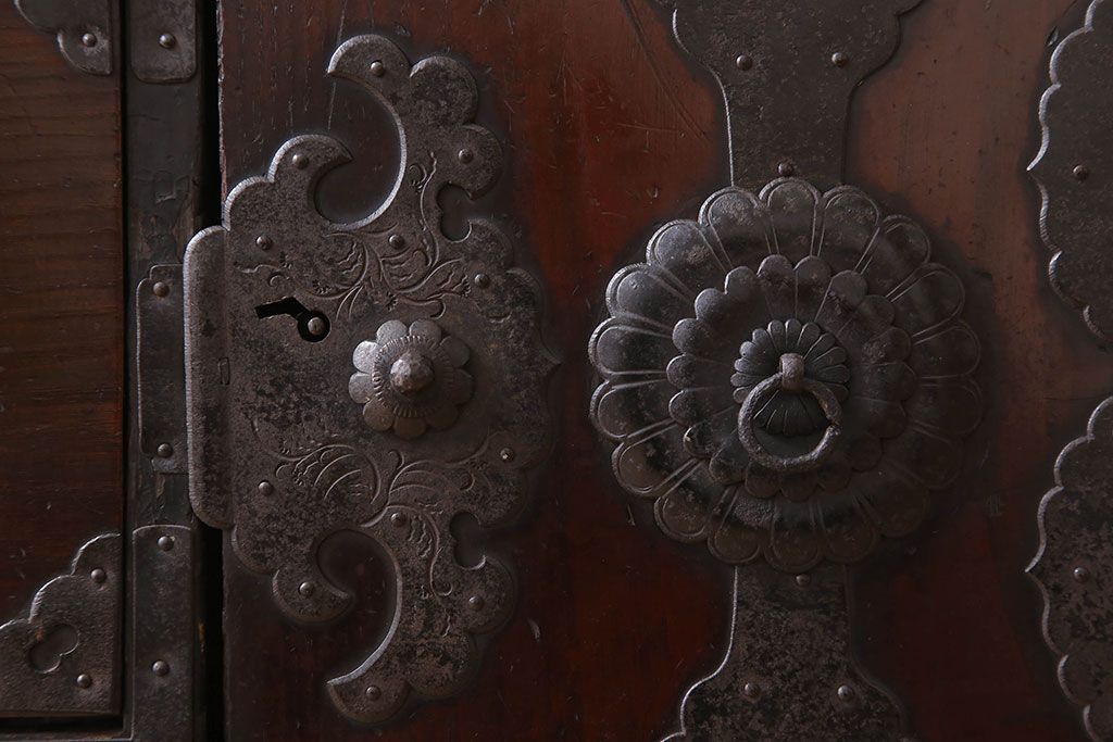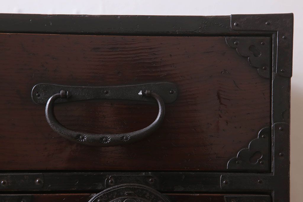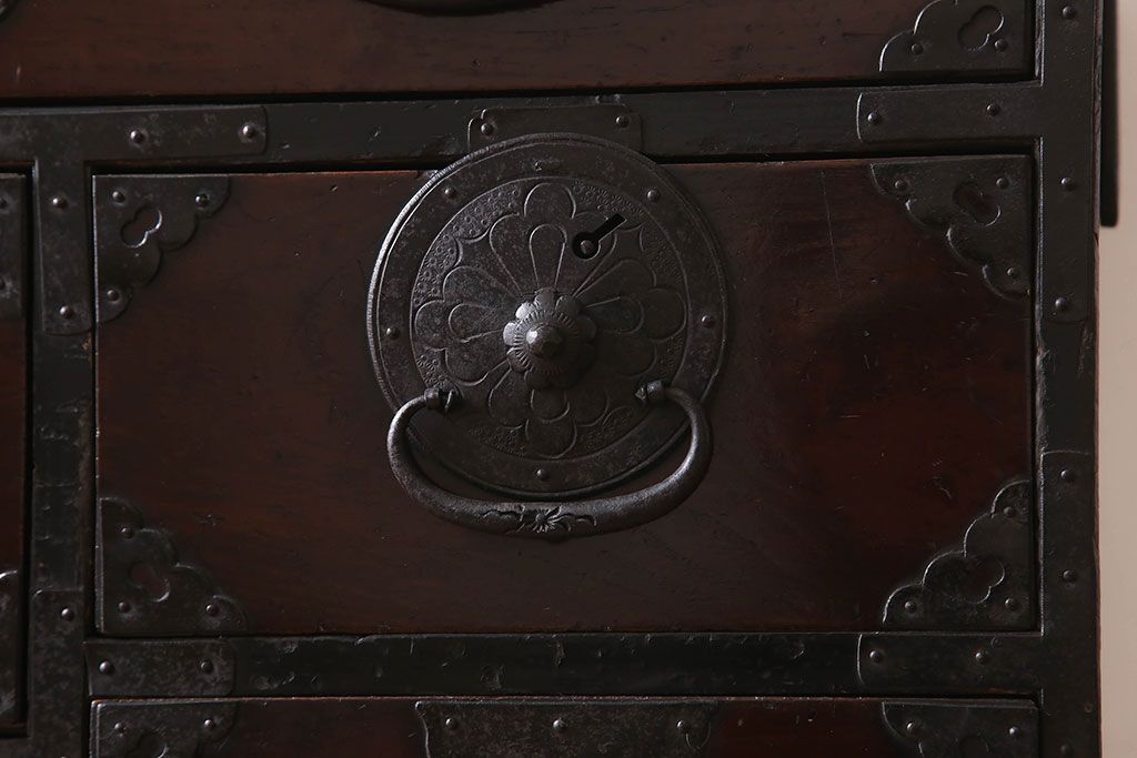 仙台箪笥らしい大きな飾り金具が美しいお品です。