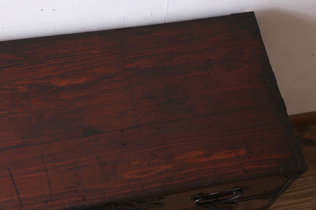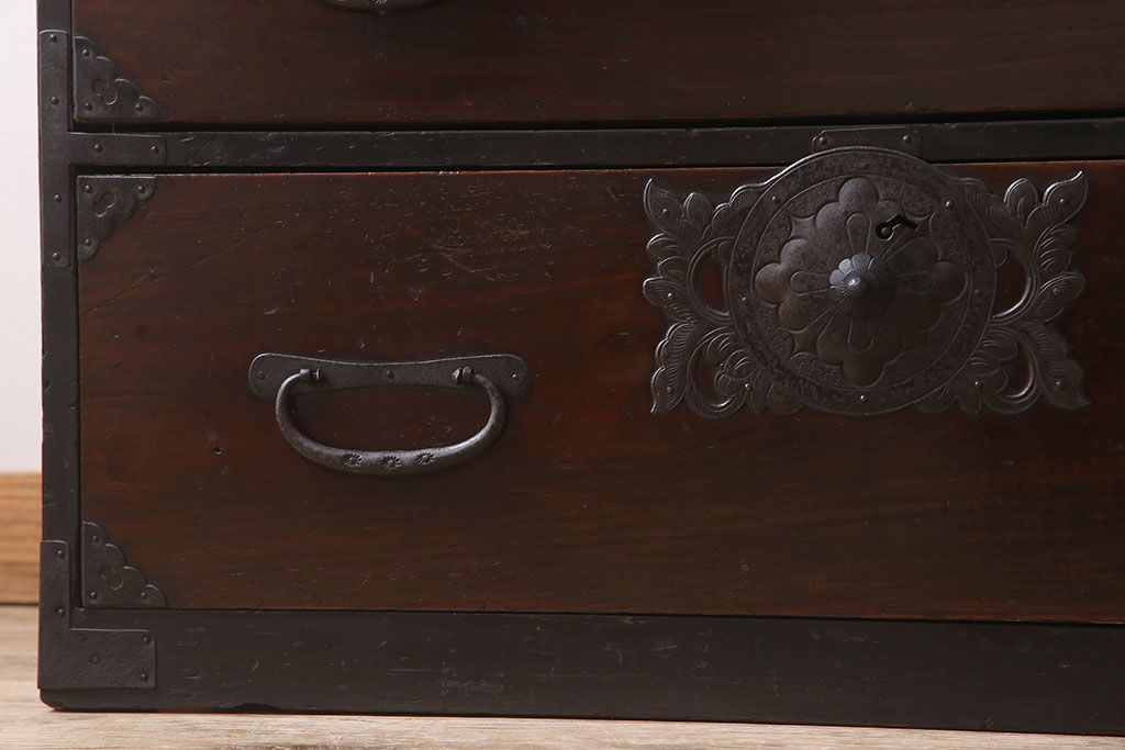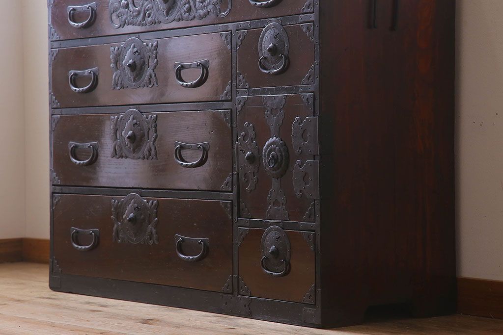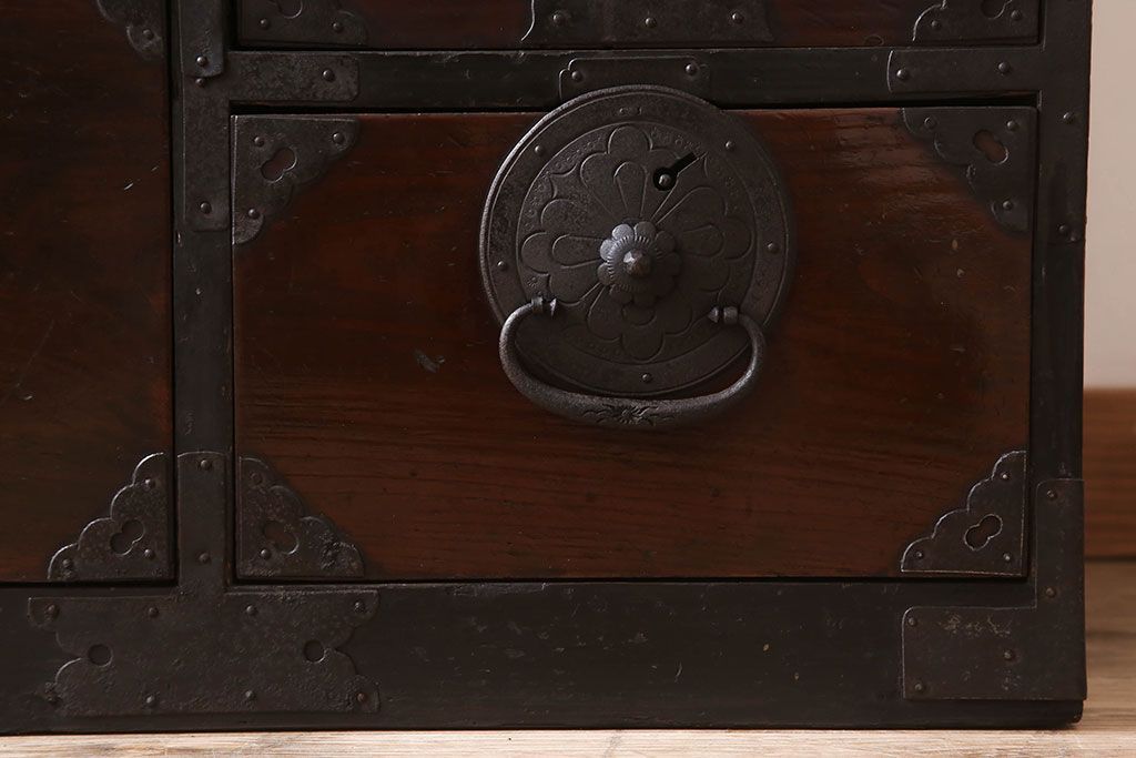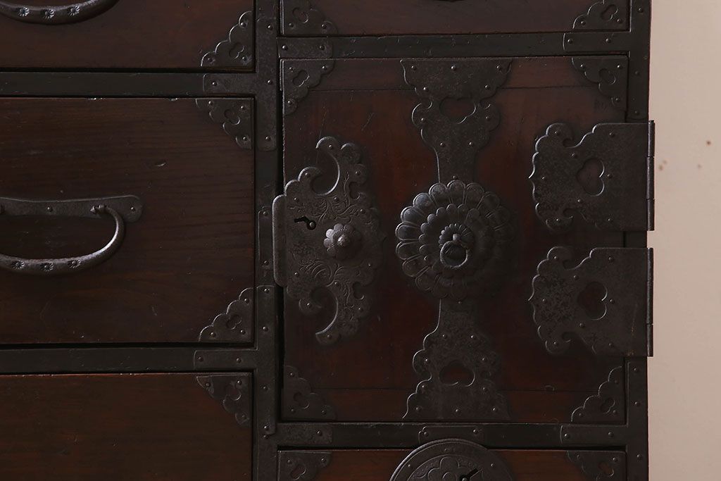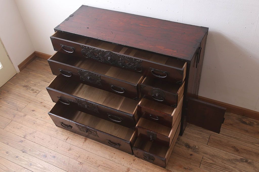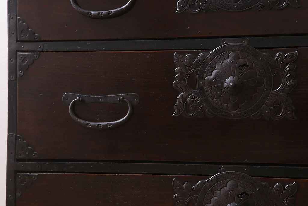 仙台箪笥らしい大きな飾り金具が美しいお品です。