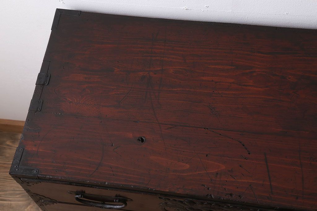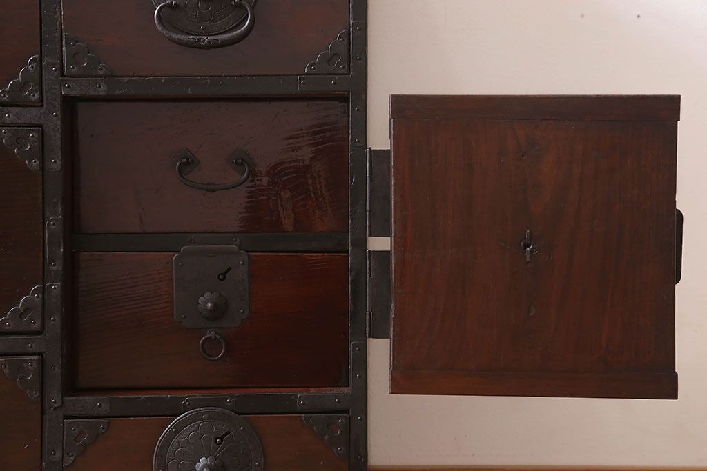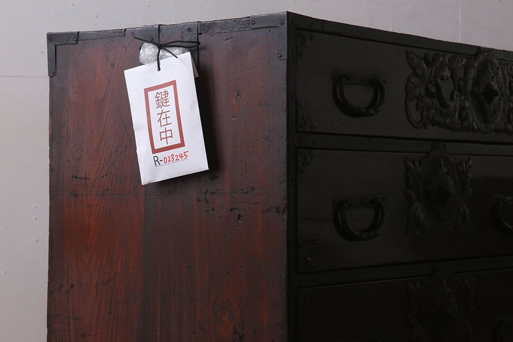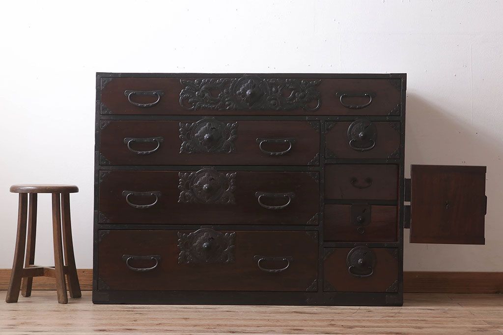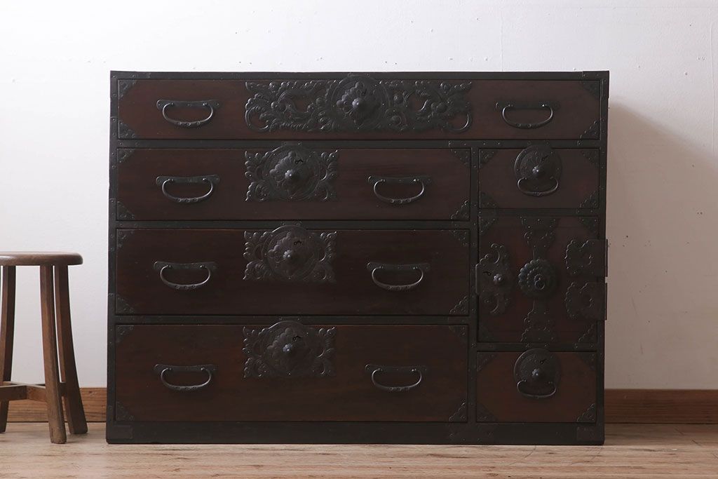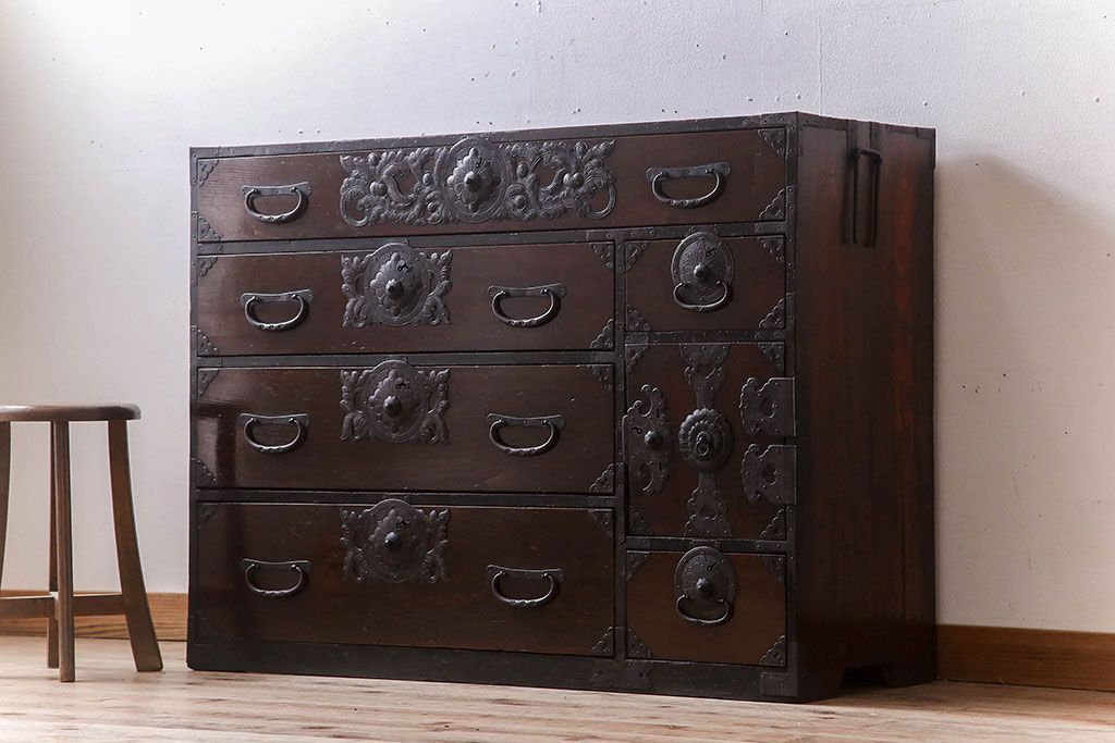 仙台箪笥らしい大きな飾り金具が美しいお品です。