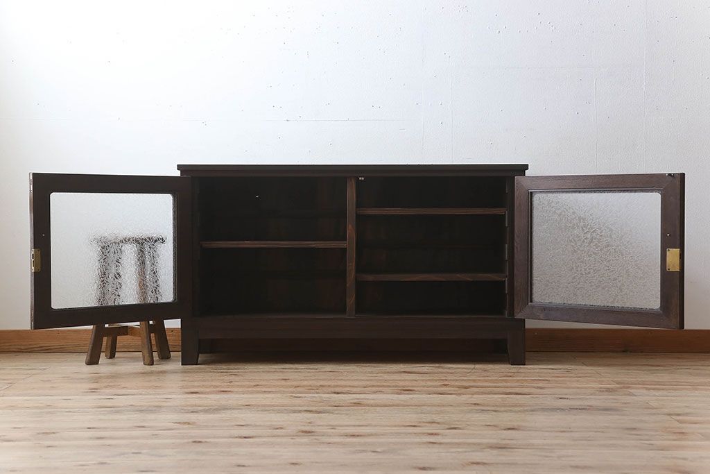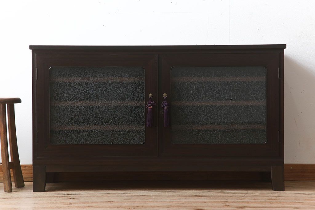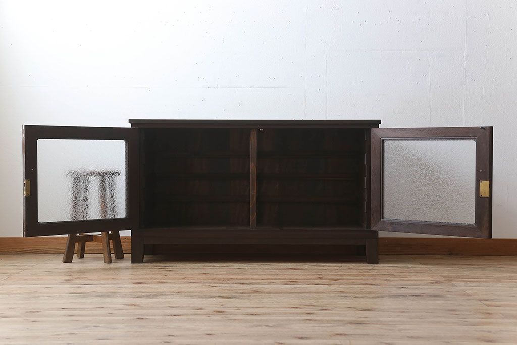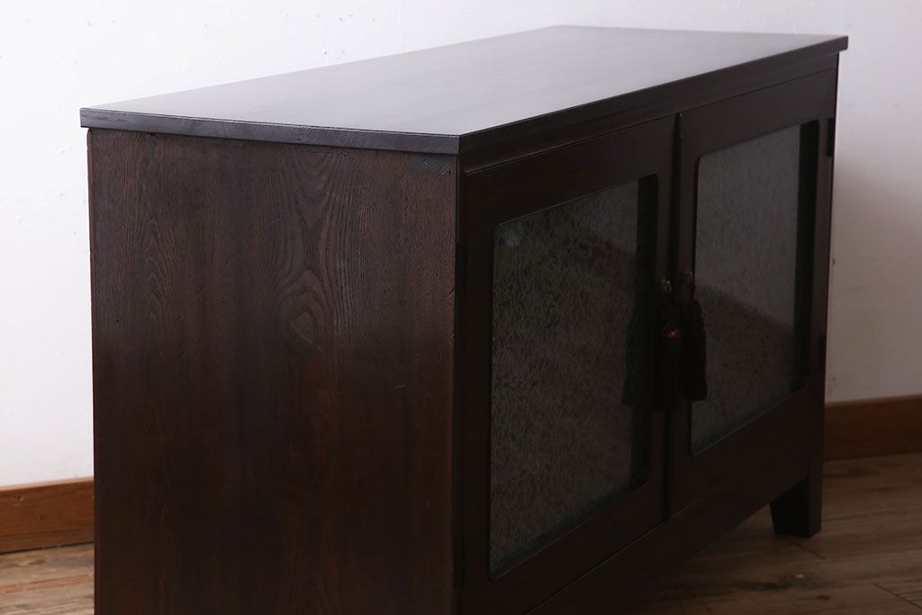 ラフジュ工房> キャビネット・戸棚> テレビ台・ローボード > アンティーク家具 アンティーク モダンな前面黒檀の脚付きローボード(テレビボード)(2)