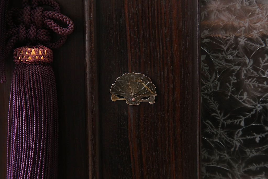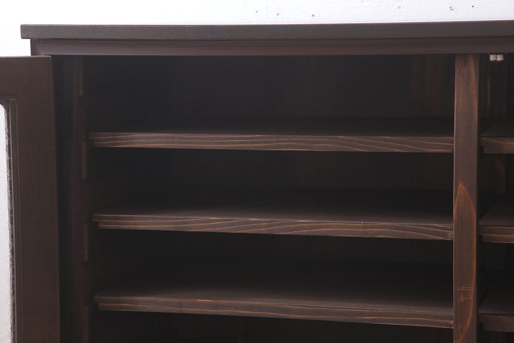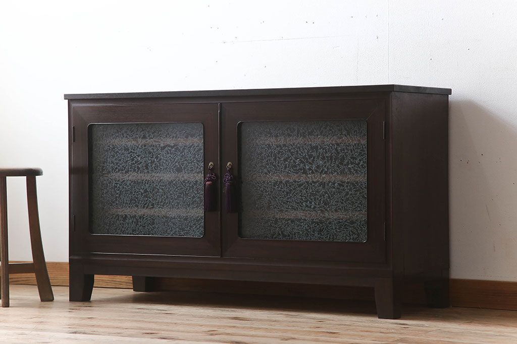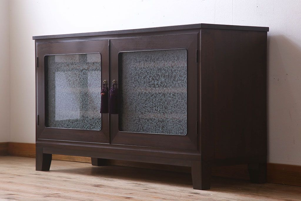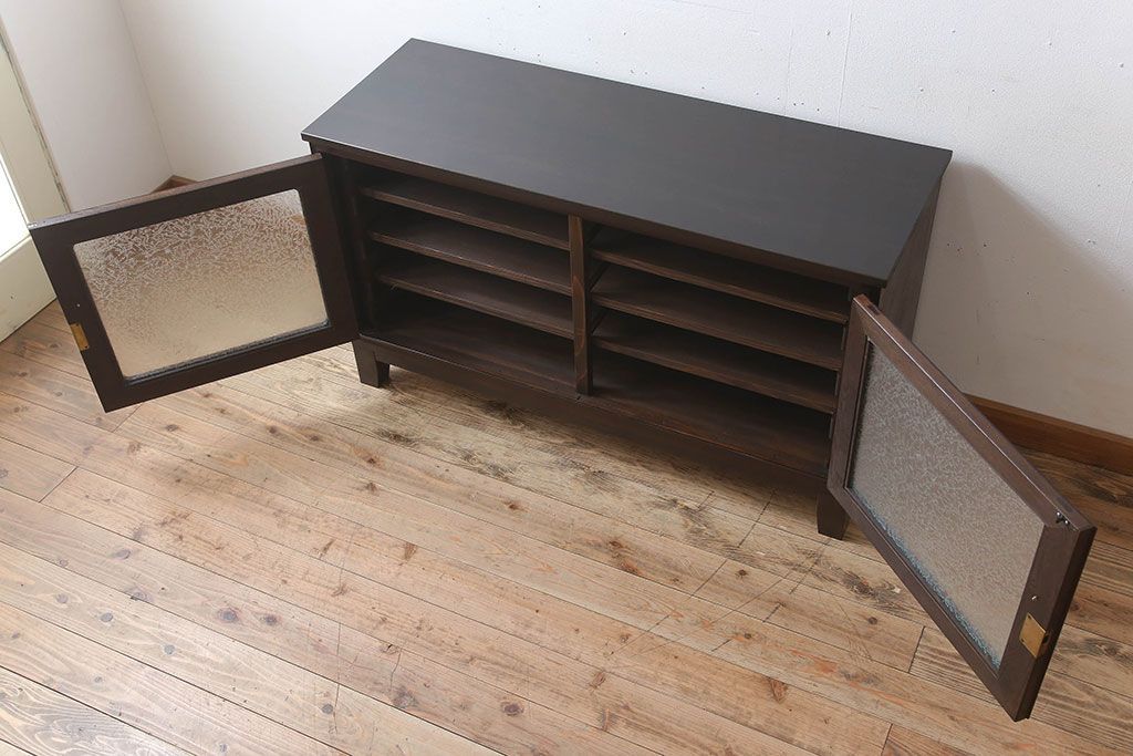 ラフジュ工房> キャビネット・戸棚> テレビ台・ローボード > アンティーク家具 アンティーク モダンな前面黒檀の脚付きローボード(テレビボード)(2)