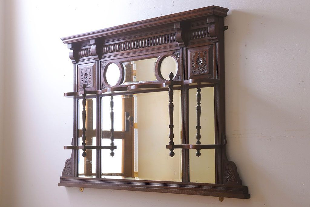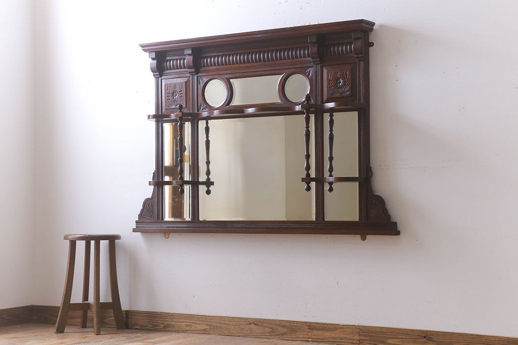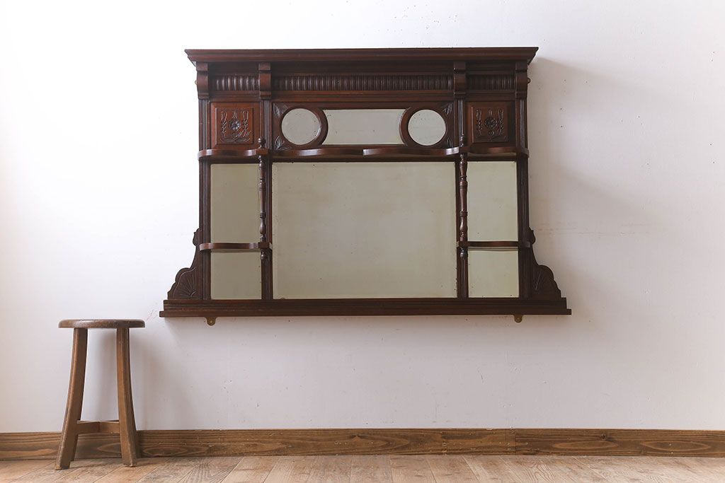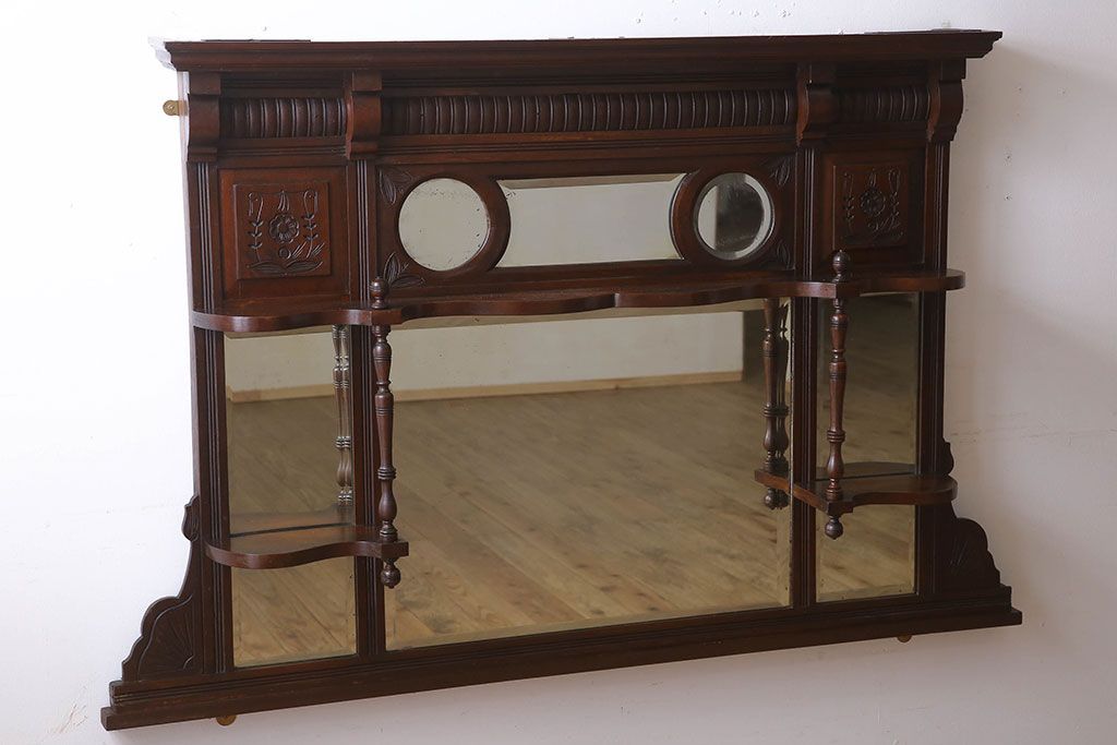 アンティーク雑貨 イギリスアンティーク マホガニー材オーバーマントルミラー