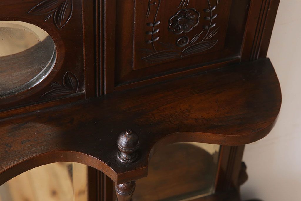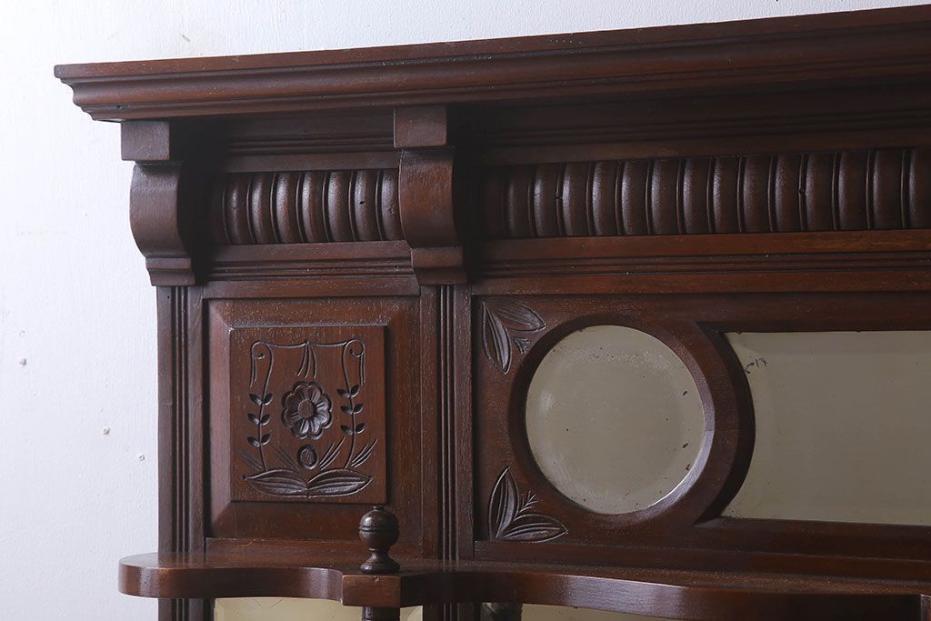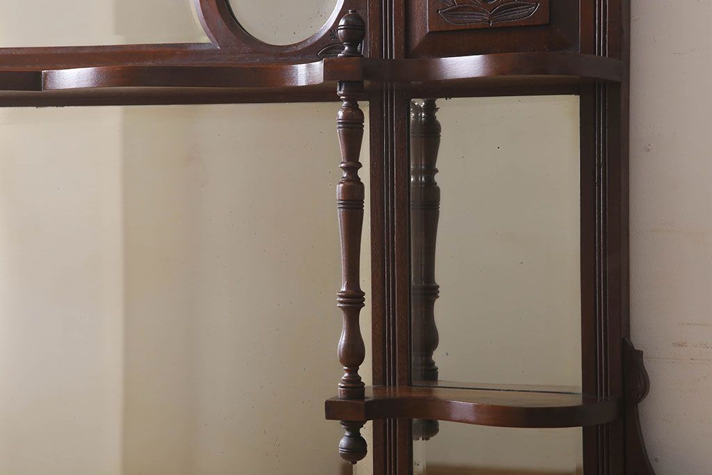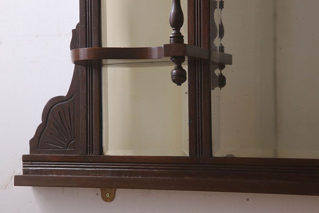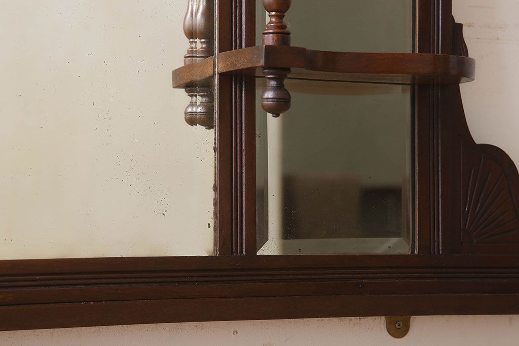 ラフジュ工房> オープンラック・シェルフ> ディスプレイラック > アンティーク雑貨 イギリスアンティーク マホガニー材オーバーマントルミラー