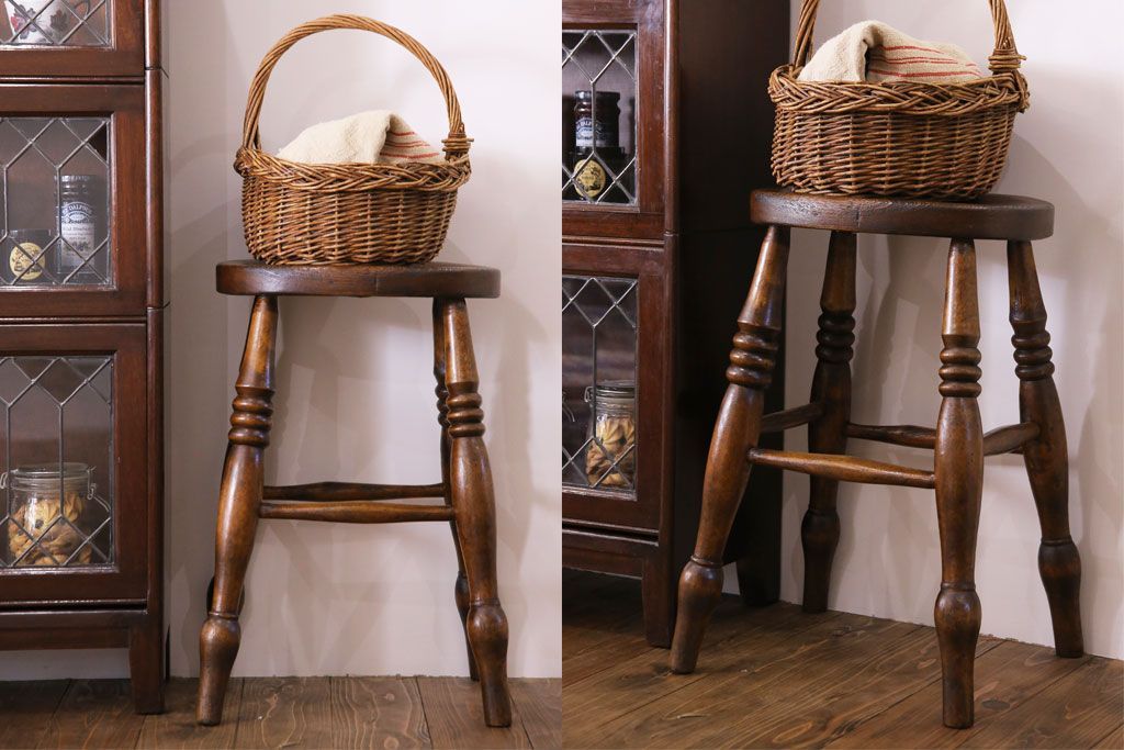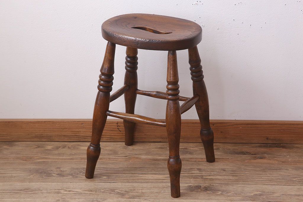 アンティーク雑貨 イギリスアンティークの上品な丸スツール(椅子、チェア)(2)