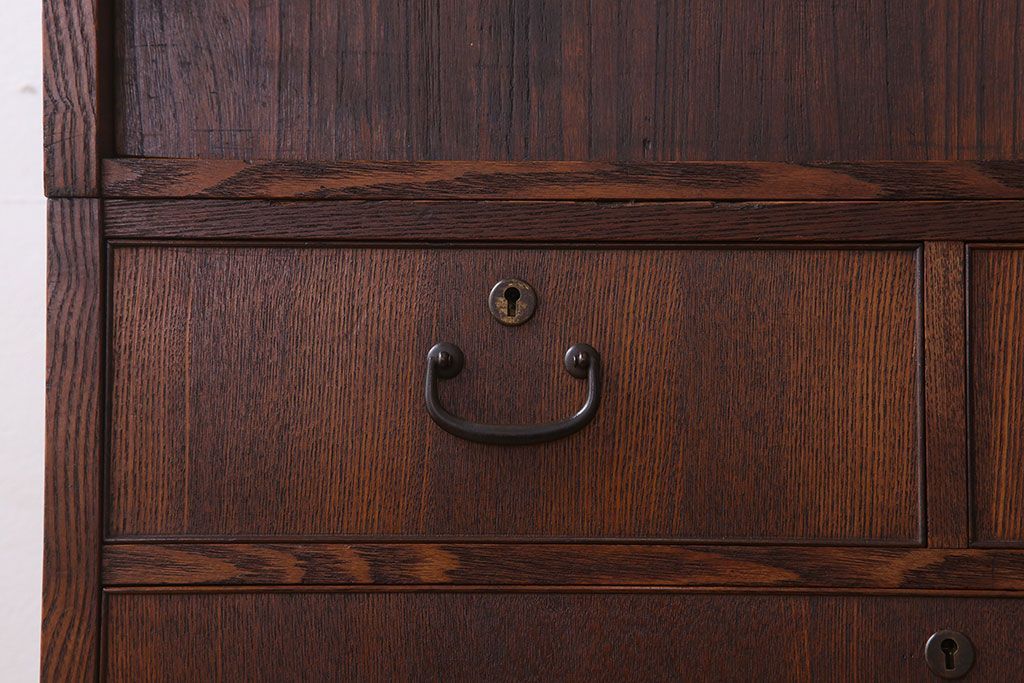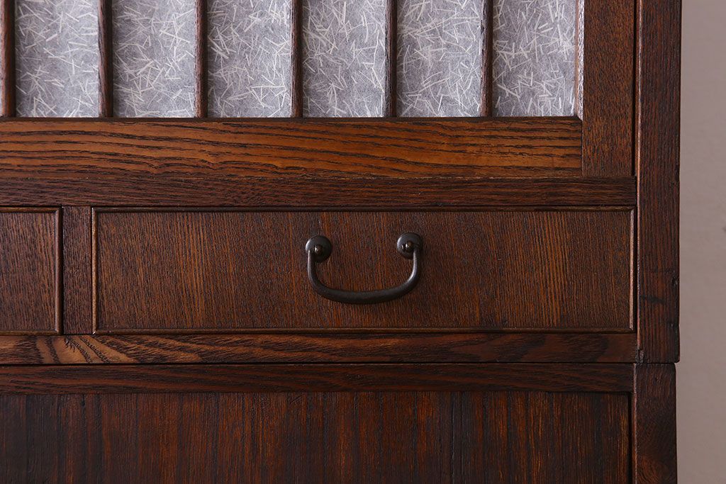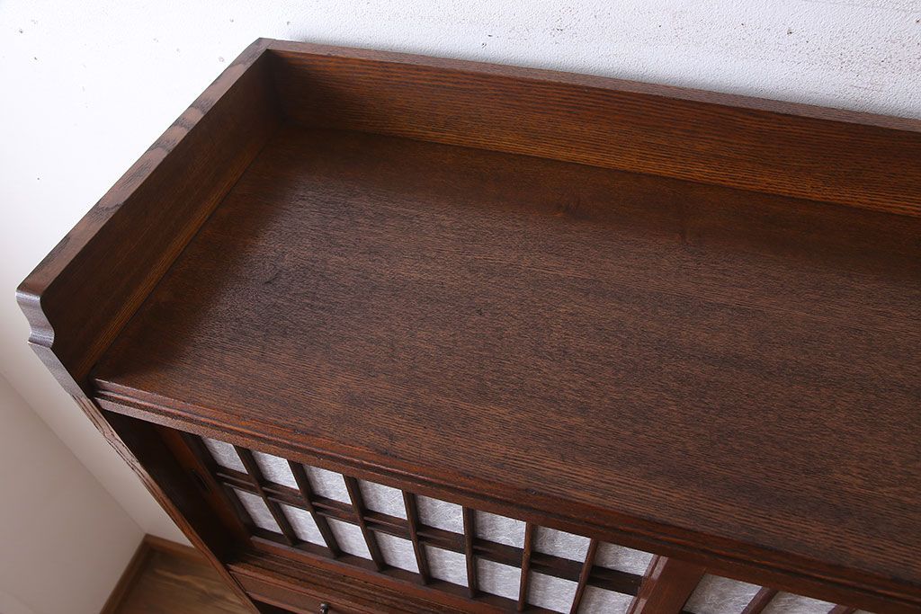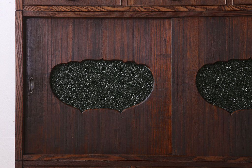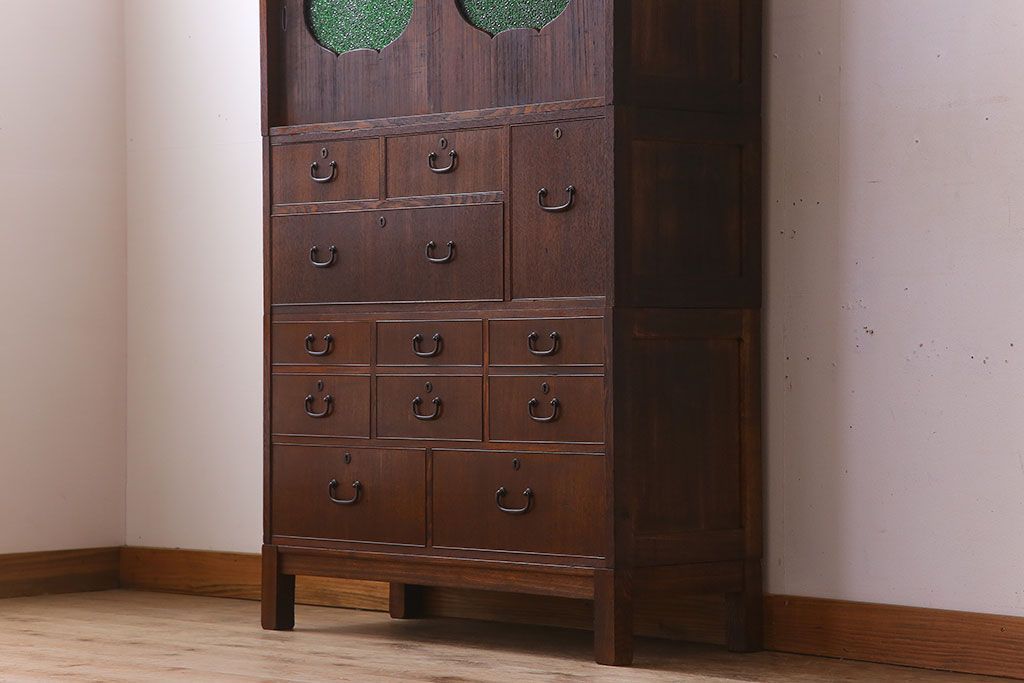 ラフジュ工房> キャビネット・戸棚> 食器棚・カップボード > アンティーク家具 槐(エンジュ)材 和製アンティーク 色ガラス 高級品 脚付き 五段重ね収納棚