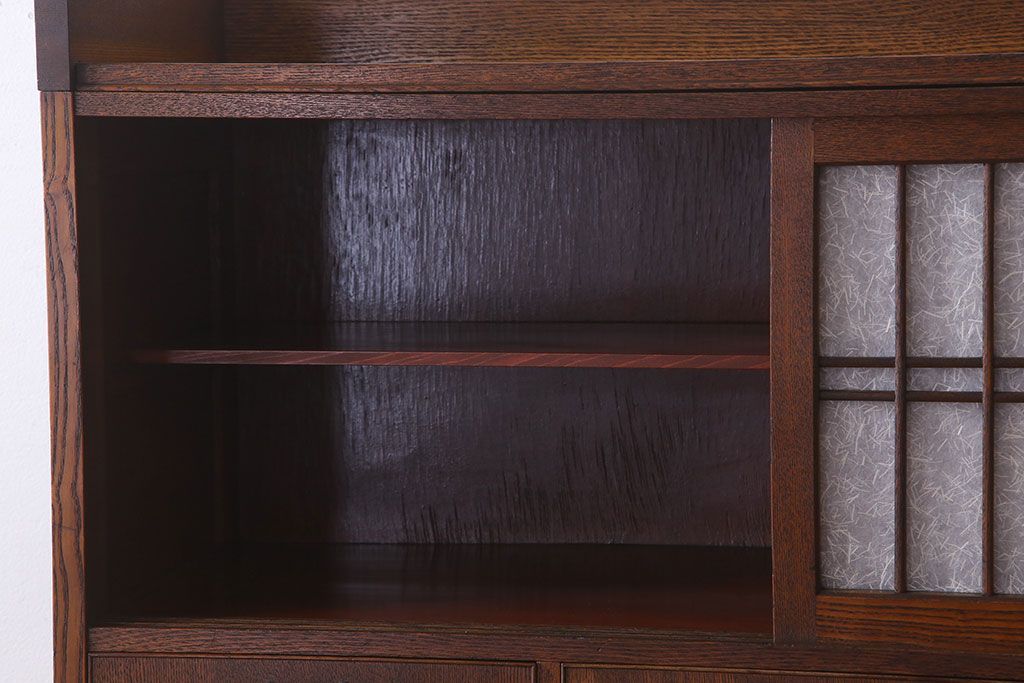 ラフジュ工房> キャビネット・戸棚> 本箱 > アンティーク家具 槐(エンジュ)材 和製アンティーク 色ガラス 高級品 脚付き 五段重ね収納棚