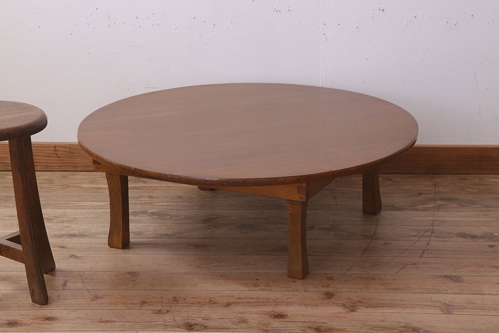 アンティーク家具 古いブナ材製 大ぶりなアンティーク丸ちゃぶ台