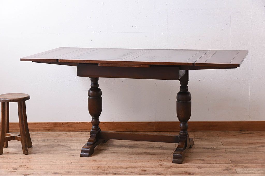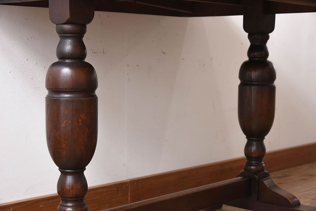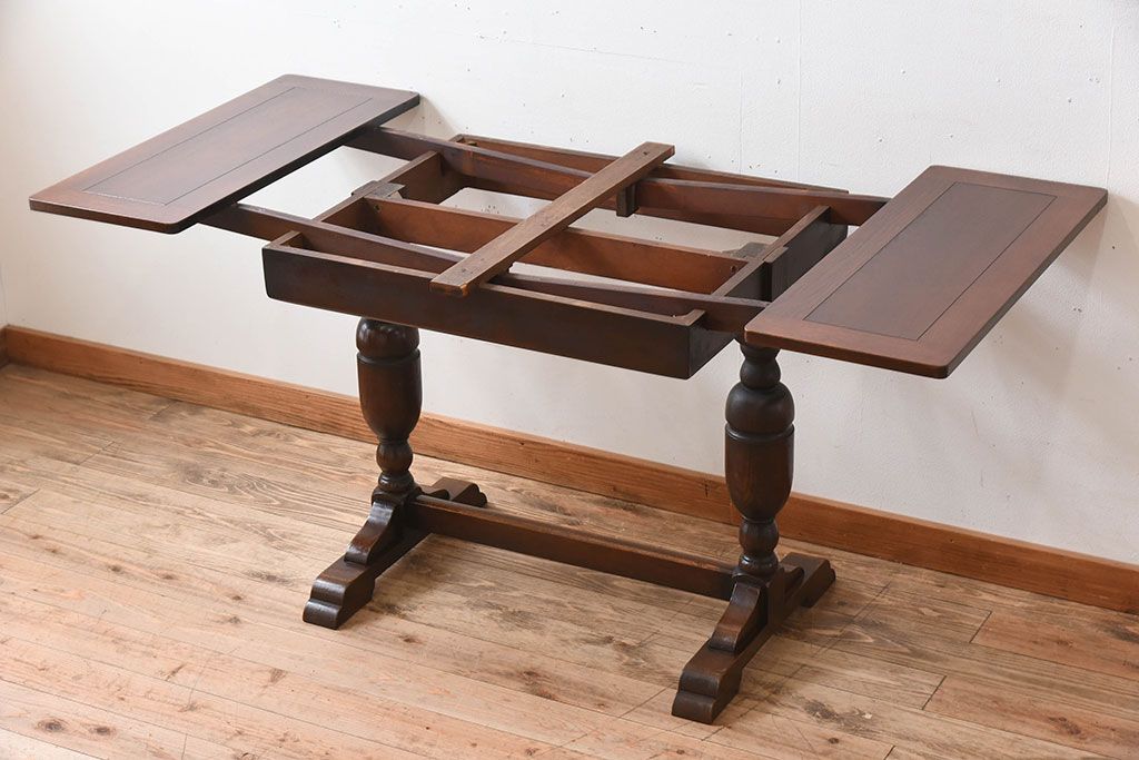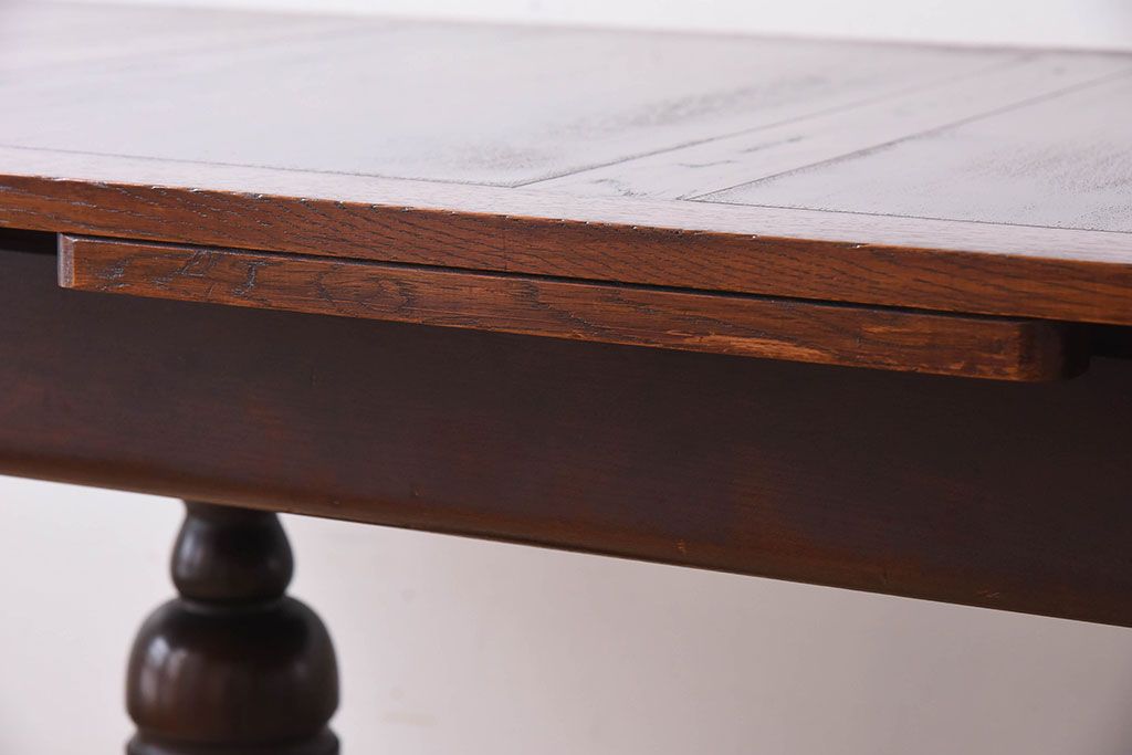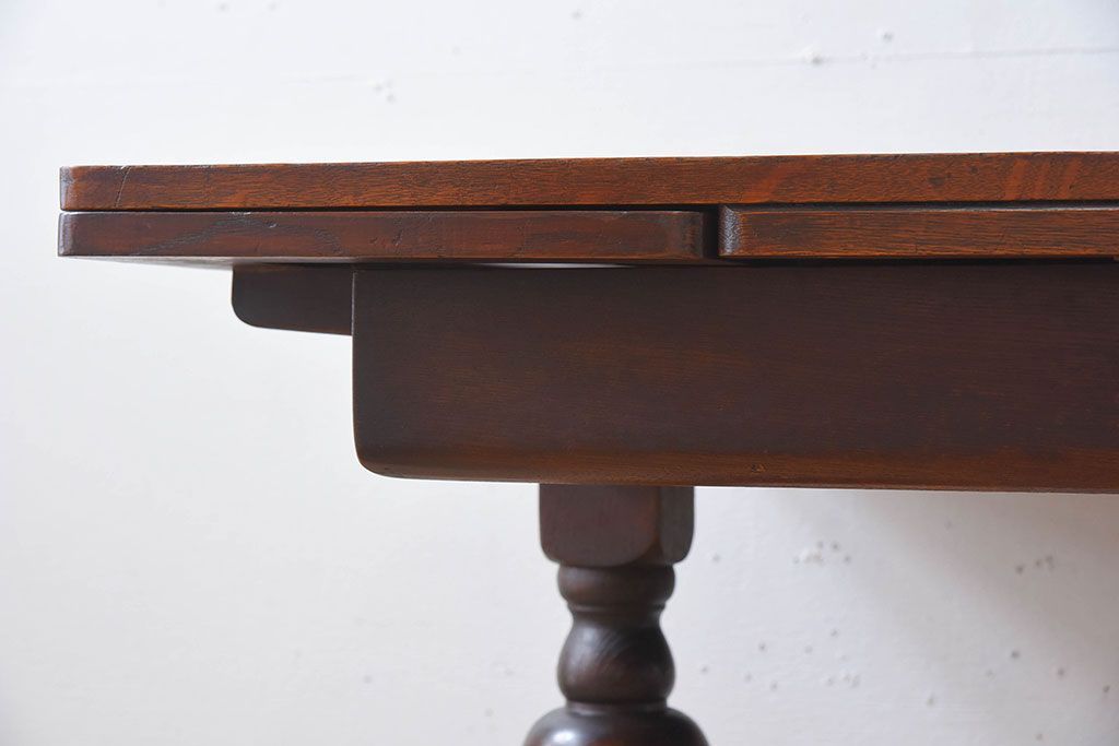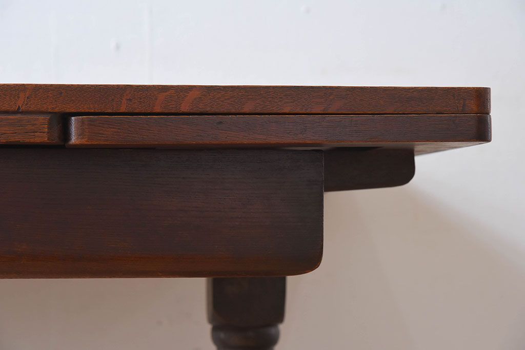 ヴィンテージ家具 イギリスビンテージ オーク材!ブルボーズレッグのエクステンションダイニングテーブル