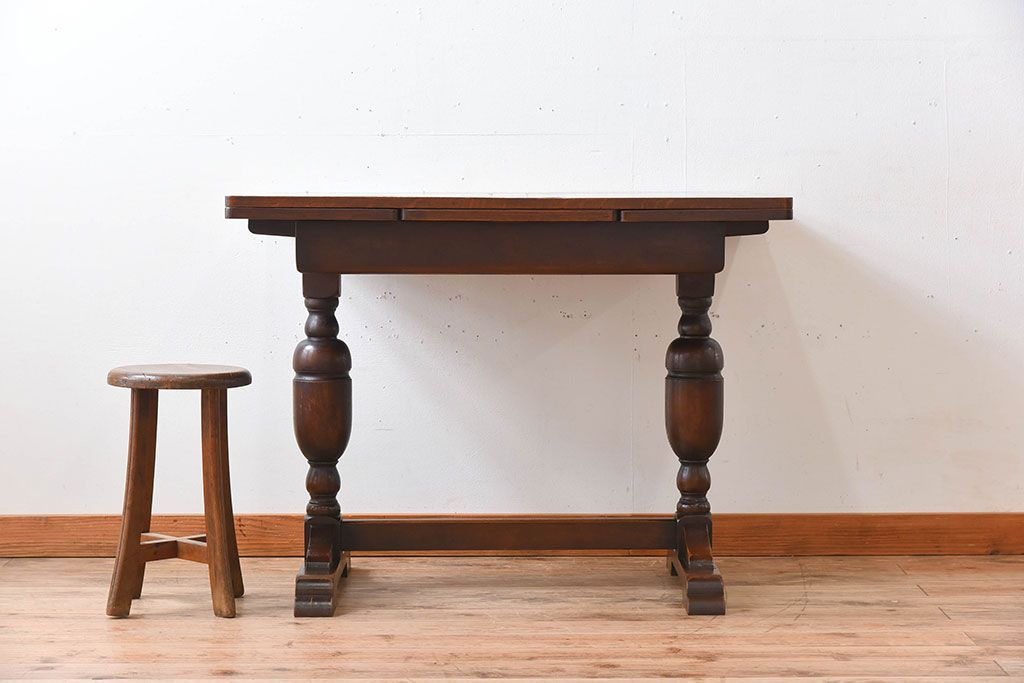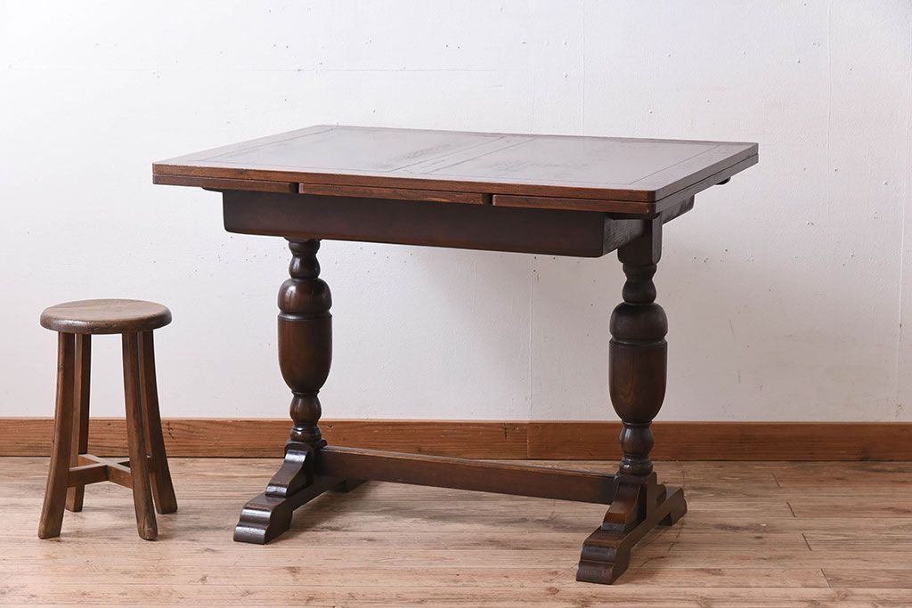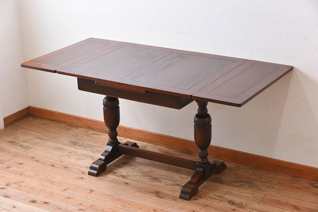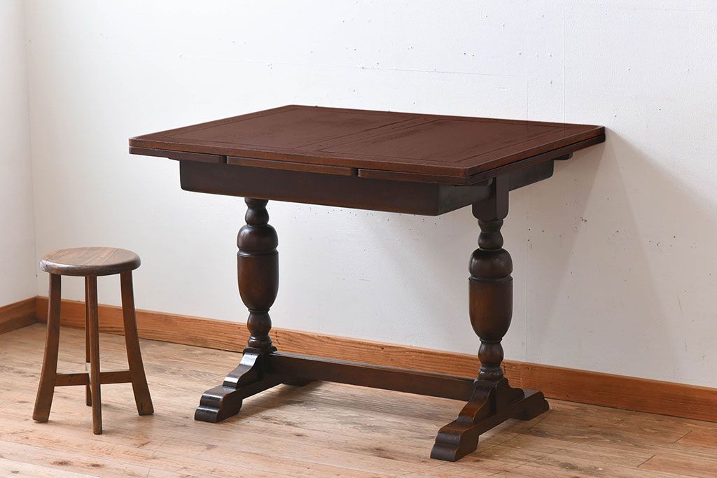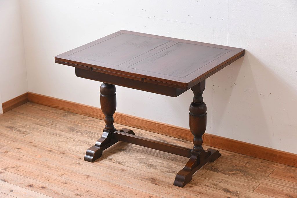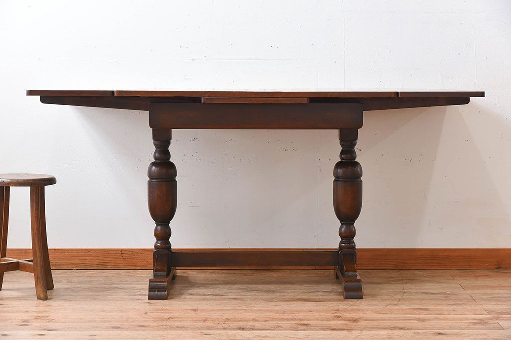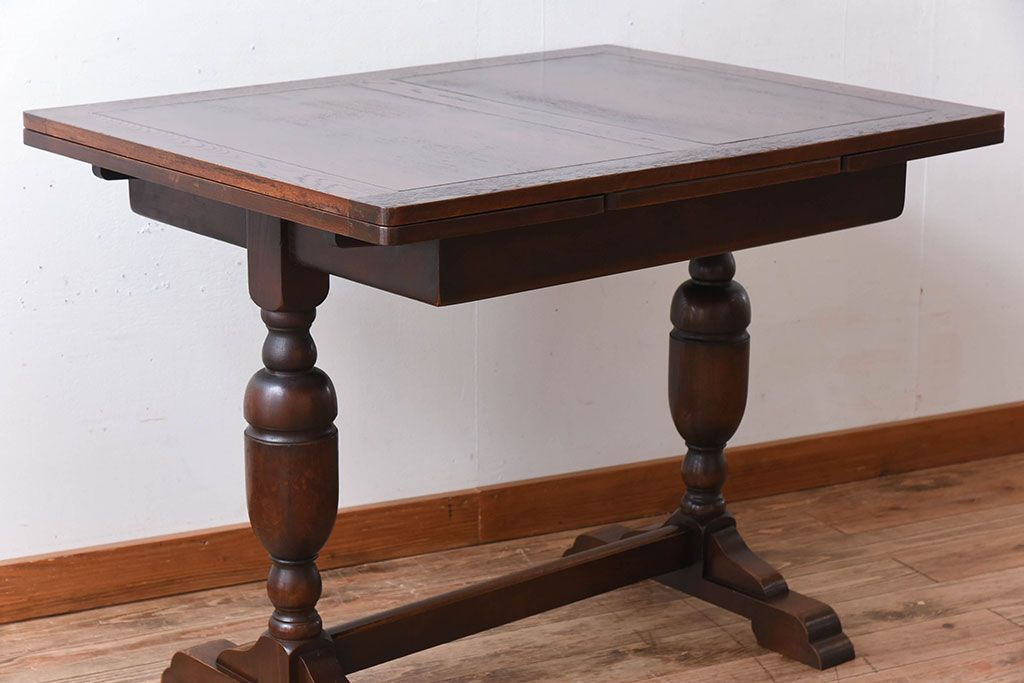 ヴィンテージ家具 イギリスビンテージ オーク材!ブルボーズレッグのエクステンションダイニングテーブル