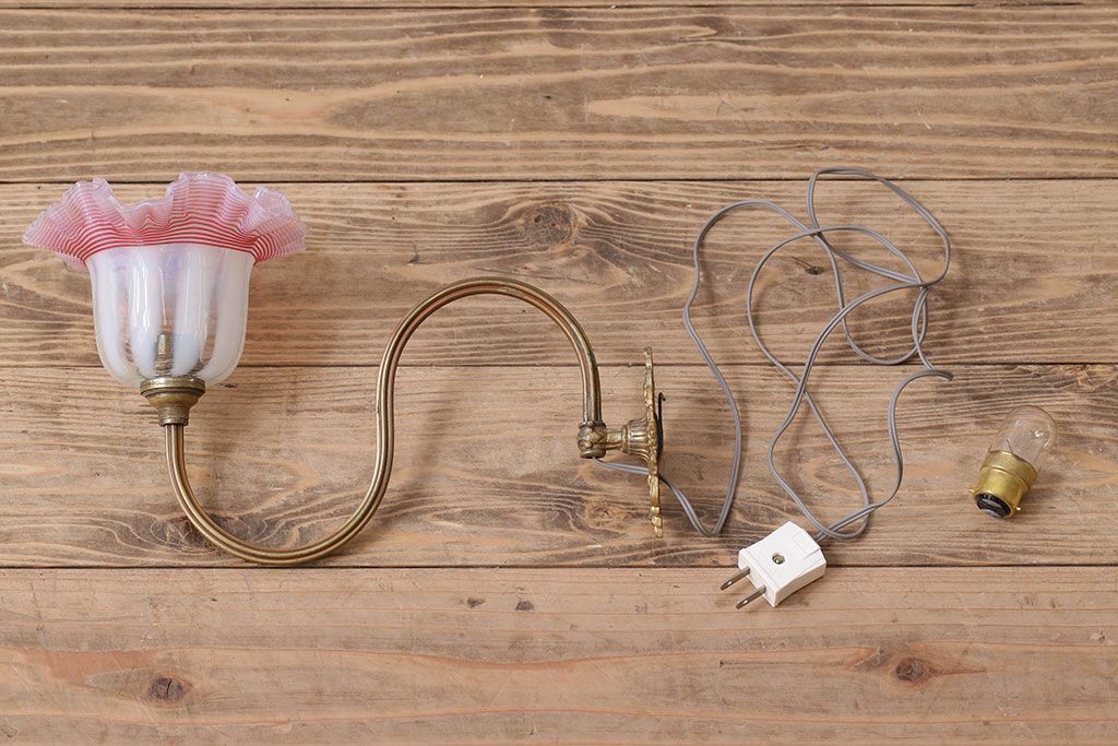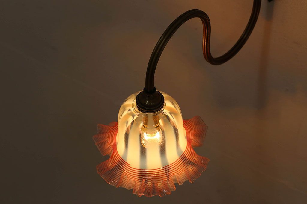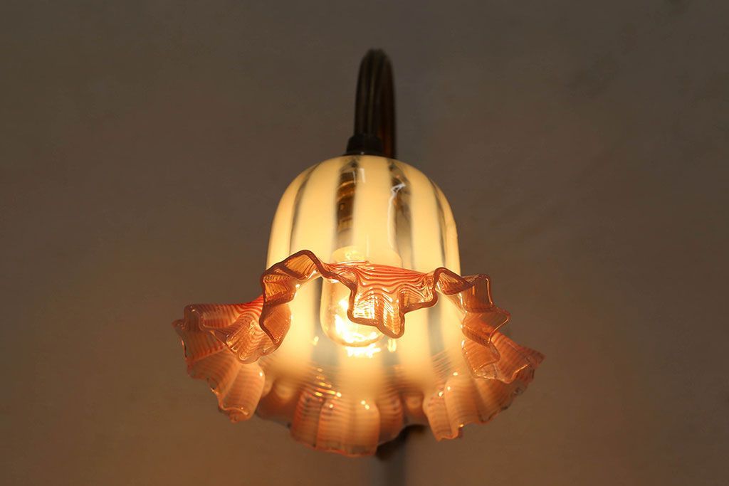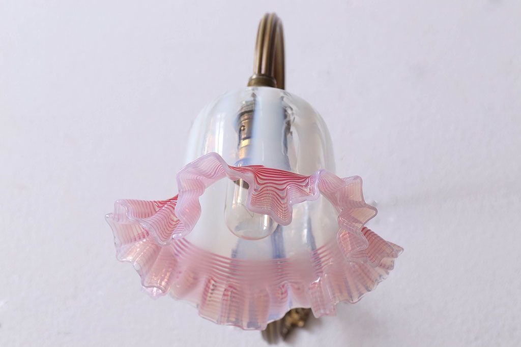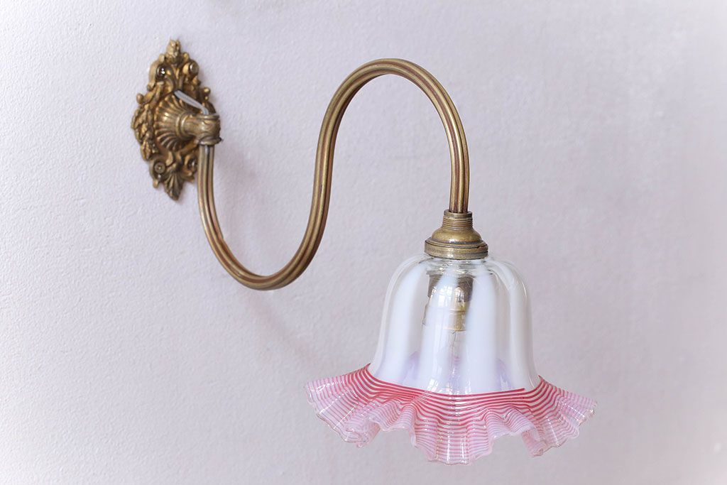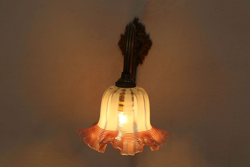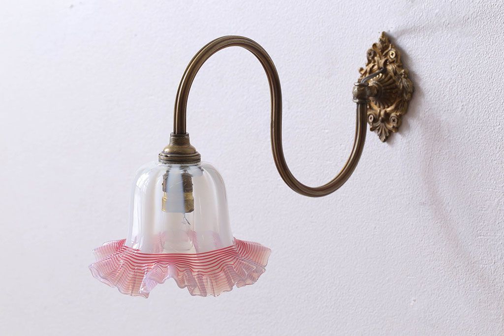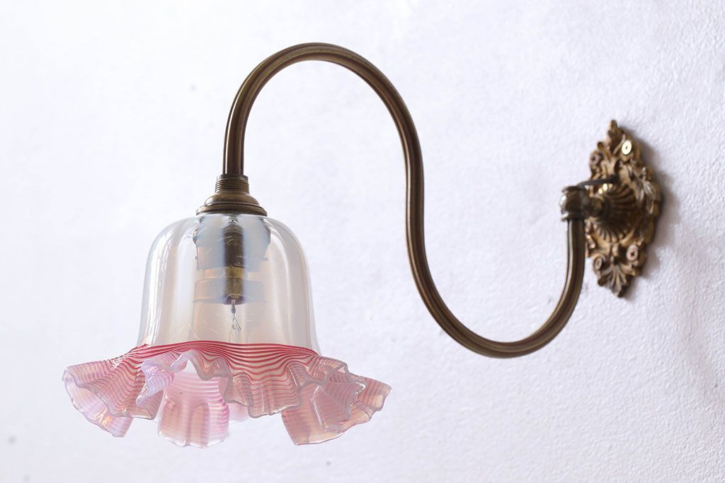 イギリスアンティーク 真鍮製 フリルシェード壁掛け照明