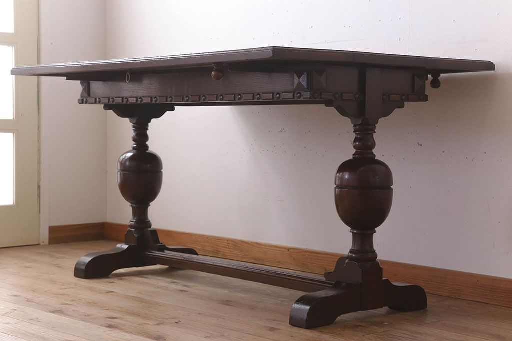 ラフジュ工房> テーブル> 4人用ダイニングテーブル > アンティーク家具 イギリスアンティーク オーク材製ドローリーフテーブル