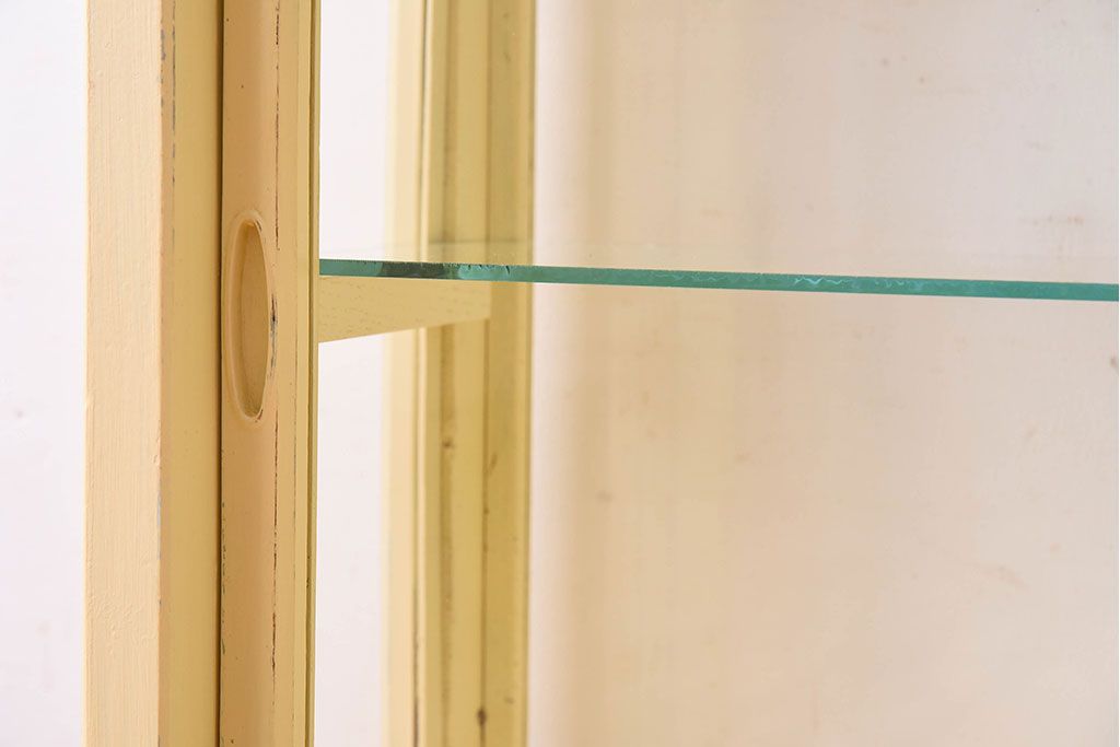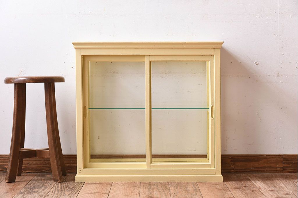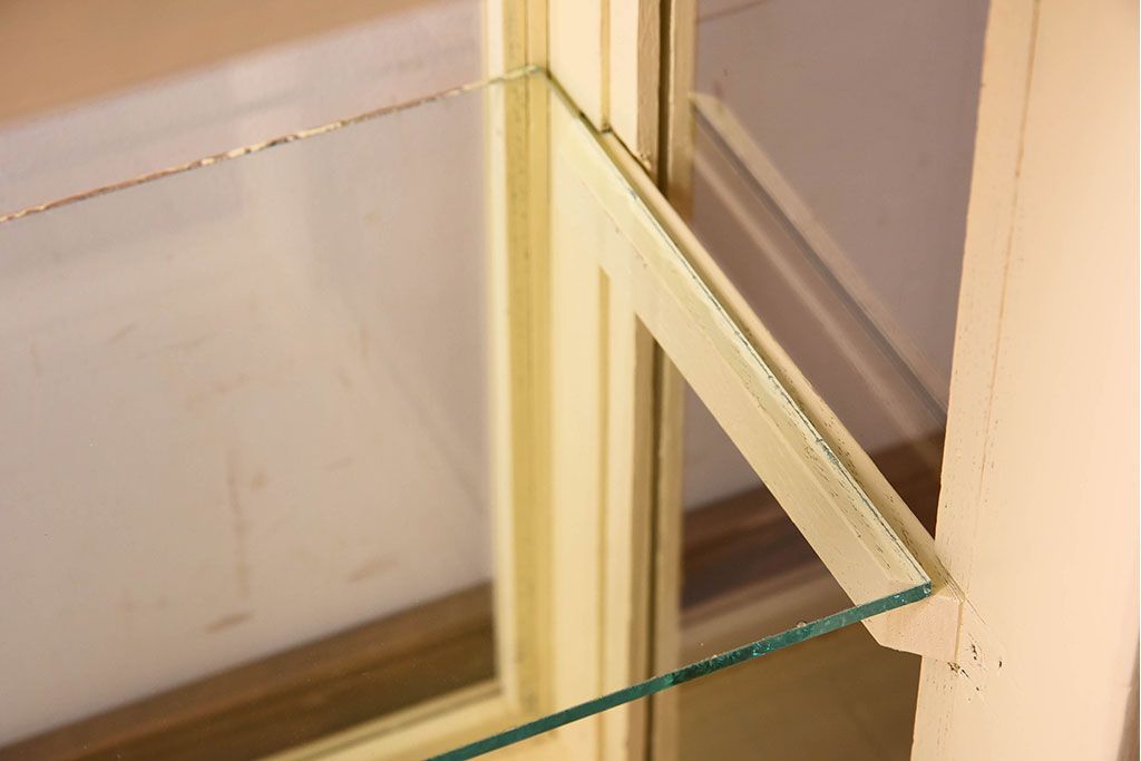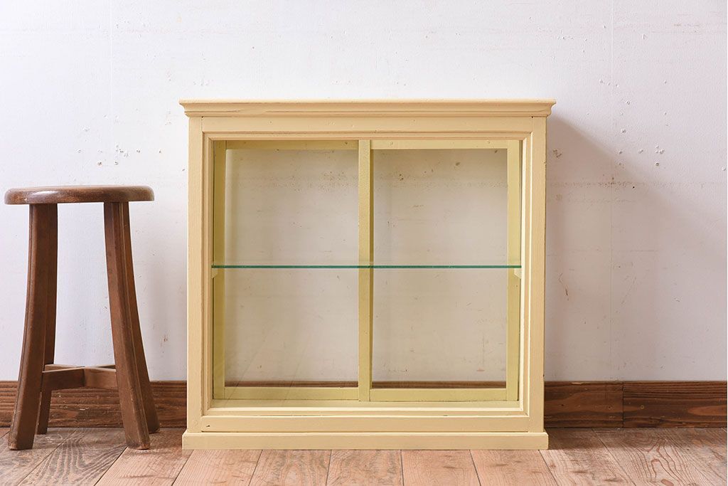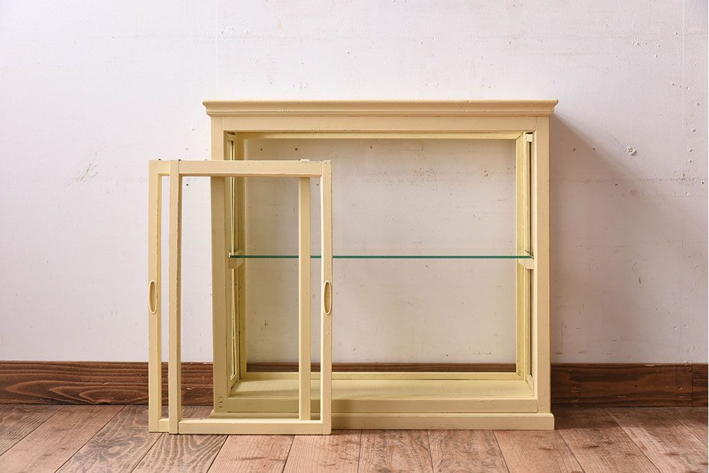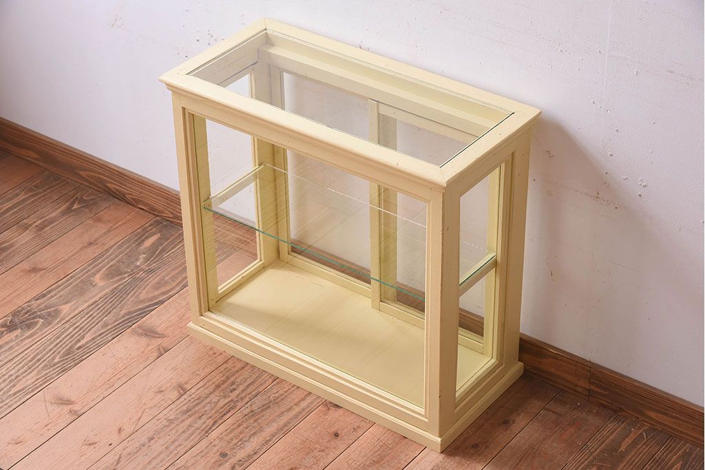 ラフジュ工房> 店舗什器 > アンティーク家具 クリーム色ペイントの小さなガラスケース