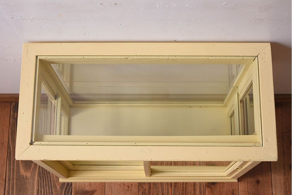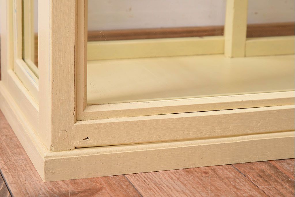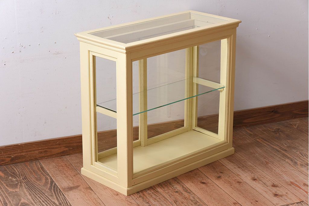 ラフジュ工房> ガラスケース・ショーケース > アンティーク家具 クリーム色ペイントの小さなガラスケース