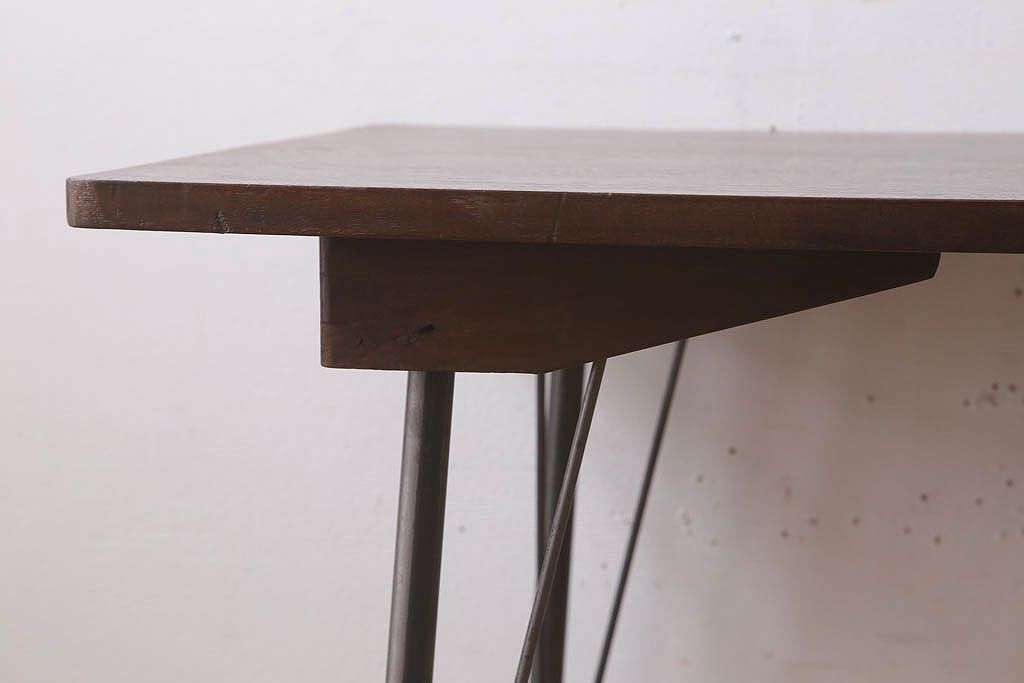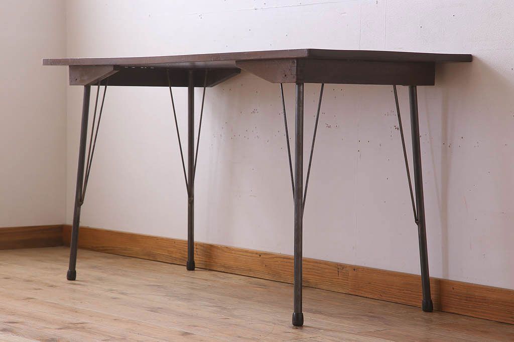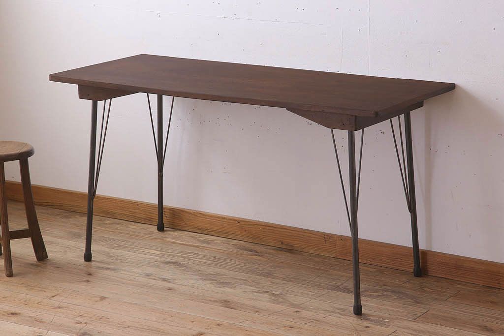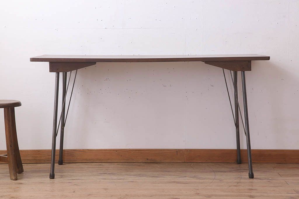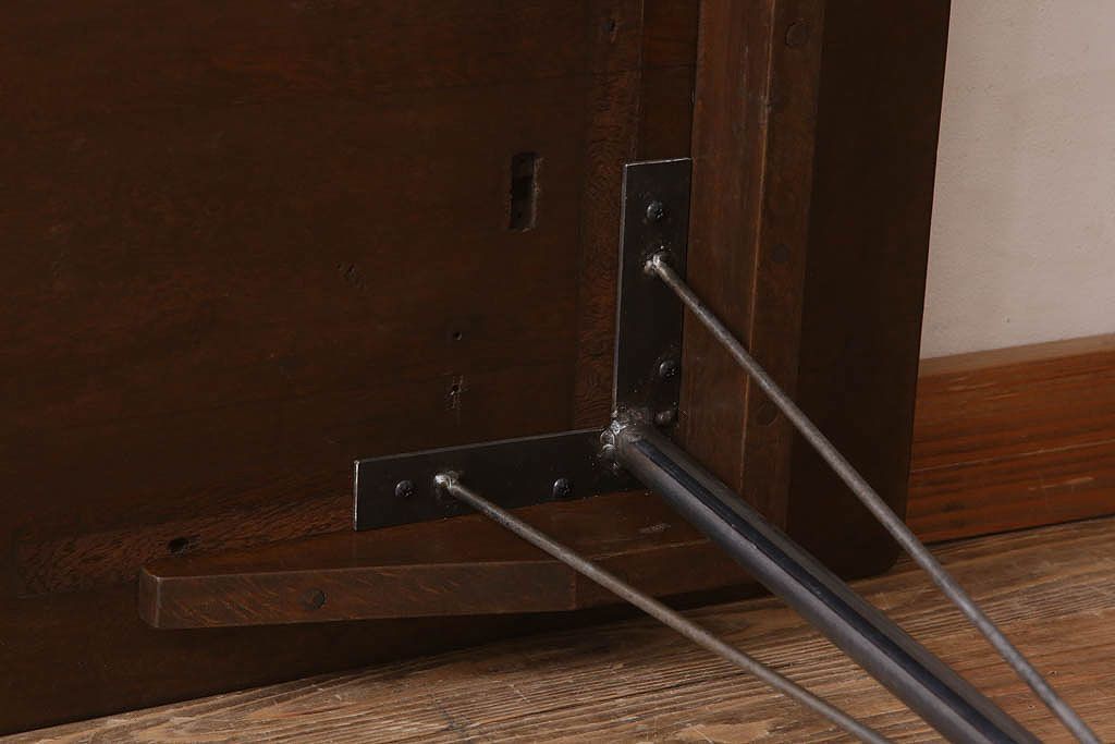 アンティーク家具 天板ナラ古材 アンティーク シンプルな鉄脚テーブル
