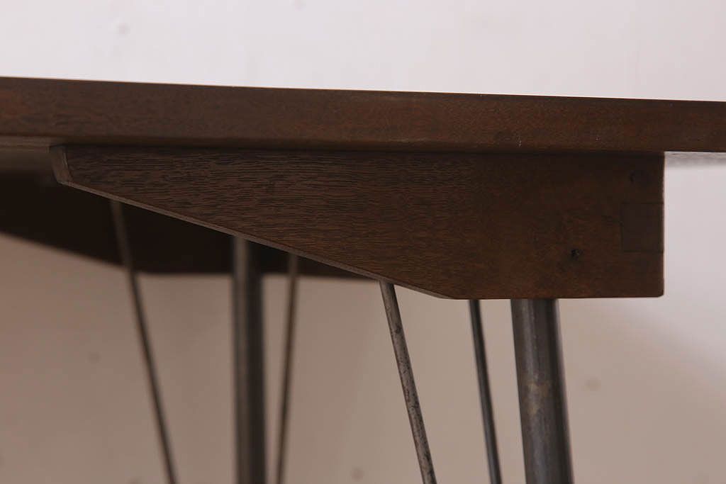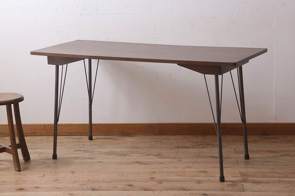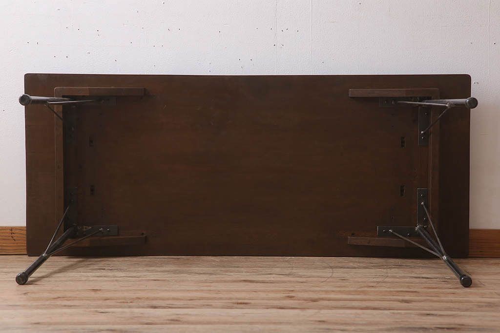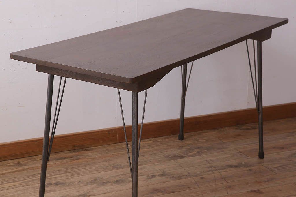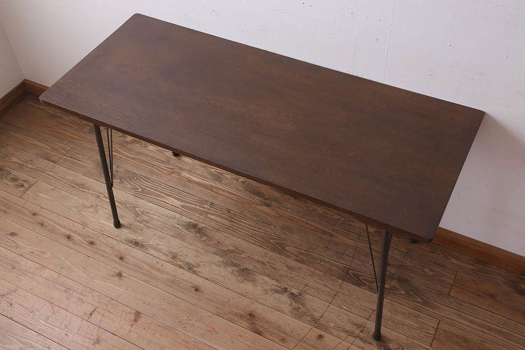 アンティーク家具 天板ナラ古材 アンティーク シンプルな鉄脚テーブル